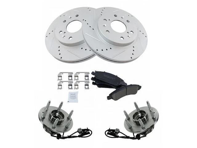 Front Brake Pad and Rotor and Wheel Hub Kit fits Avalanche 2008-2013 4WD 14FGMK Front Brake Pad and Rotor and Wheel Hub Kit fits Avalanche 2008-2013 4WD 14FGMK Position: Front Brand: TRQ Brake Pad and Rotor and Wheel Hub Kit Condition: New Product Description Notes: Ceramic Brake Pad & Rotor Kit with Wheel Bearings Features: Ceramic Positive Molded: Less dust resulting in clean wheels Electrostatic Coated: Long-lasting rust protection G3000 Casting Alloy: Reduced noise and improved wear resistance Application Specific Design: Extended service life, no modifications Product Specifications Coating: Premium G-Coated Grade Type: Performance Type: Performance Surface Type: Slotted X Drilled Package Contents: (2) Front Wheel Bearing & Hub Assemblies; (1) 12 oz DOT 3 & 4 Brake Fluid; (1) 13 oz Non-Chlorinated 50 State Formula Brake Cleaner; (1) Front Ceramic Brake Pad Set with Contact Point Grease & Hardware; (2) Front G-Coated Performance Brake Rotors Detailed Applications Years Vehicle Sub Model 2008-2013 Chevrolet Avalanche 4WD Warranty Coverage Policy 12 Month Warranty 30 Day Return Policy Return shipping paid by: Buyer Item must be returned within: 30 Days Refund will be given as: Money Back DO NOT SEND RETURNS BACK WITHOUT A VALID RMA NUMBER If you have an issue after receiving your part, please email us directly through eBay