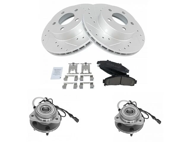 Front Brake Pad and Rotor and Wheel Hub Kit fits Explorer 1995-2001 4WD 53NGQS Front Brake Pad and Rotor and Wheel Hub Kit fits Explorer 1995-2001 4WD 53NGQS Position: Front Brand: TRQ Brake Pad and Rotor and Wheel Hub Kit Condition: New Product Description Notes: Ceramic Performance Brake Pad & Rotor Kit with Wheel Bearings Features: Ceramic Improved Stopping Power: Cross-drilled slotted to reduce brake fade Longer Lasting: True non-interference vane design for optimized cooling Positive Molded: Less dust resulting in cleaner wheels Multi-Layer Shim: Reduced noise and vibration Direct Replacement: No modifications necessary Product Specifications Coating: Premium G-Coated Grade Type: Performance Type: Performance Surface Type: Slotted X Drilled Package Contents: (2) Front Wheel Bearing & Hub Assemblies; (1) 12 oz DOT 3 & 4 Brake Fluid; (1) 13 oz Non-Chlorinated 50 State Formula Brake Cleaner; (1) Front Ceramic Brake Pad Set with Contact Point Grease & Hardware; (2) Front G-Coated Performance Brake Rotors Detailed Applications Years Vehicle Sub Model Body 2001 Ford Explorer 4WD 4dr 1995-2000 Ford Explorer 4WD Warranty Coverage Policy 12 Month Warranty 30 Day Return Policy Return shipping paid by: Buyer Item must be returned within: 30 Days Refund will be given as: Money Back DO NOT SEND RETURNS BACK WITHOUT A VALID RMA NUMBER If you have an issue after receiving your part, please email us directly through eBay