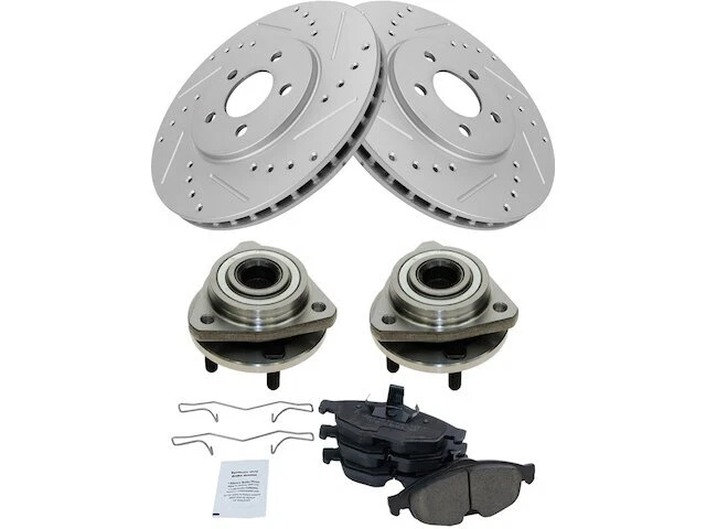 Front Brake Pad and Rotor and Wheel Hub Kit fits Stratus 2001-2005 93WMJZ Front Brake Pad and Rotor and Wheel Hub Kit fits Stratus 2001-2005 93WMJZ Position: Front Brand: TRQ Brake Pad and Rotor and Wheel Hub Kit Condition: New Product Description Notes: Ceramic Performance Brake Pad & Rotor Kit Features: Ceramic Improved Stopping Power: Cross-drilled slotted to reduce brake fade Longer Lasting: True non-interference vane design for optimized cooling Positive Molded: Less dust resulting in cleaner wheels Multi-Layer Shim: Reduced noise and vibration Direct Replacement: No modifications necessary Product Specifications Coating: Premium G-Coated Grade Type: Performance Type: Performance Surface Type: Slotted X Drilled Package Contents: (2) Front Wheel Bearing & Hub Assemblies; (1) Front Ceramic Brake Pad Set with Contact Point Grease & Hardware; (2) Front G-Coated Performance Brake Rotors Detailed Applications Years Vehicle Body 2001-2005 Dodge Stratus Sedan 4dr Warranty Coverage Policy 12 Month Warranty 30 Day Return Policy Return shipping paid by: Buyer Item must be returned within: 30 Days Refund will be given as: Money Back DO NOT SEND RETURNS BACK WITHOUT A VALID RMA NUMBER If you have an issue after receiving your part, please email us directly through eBay