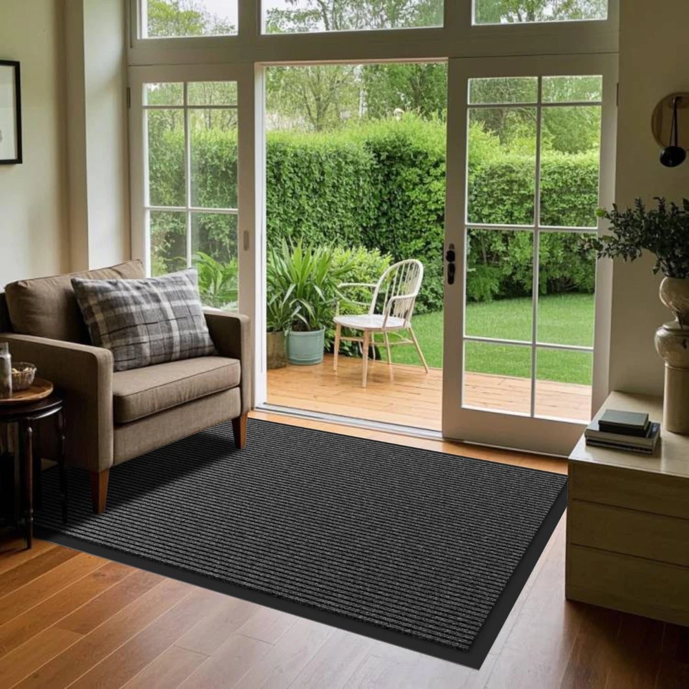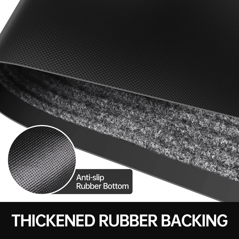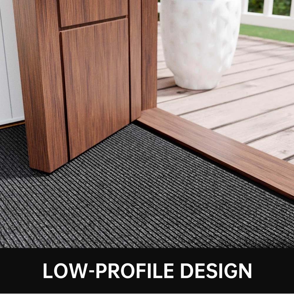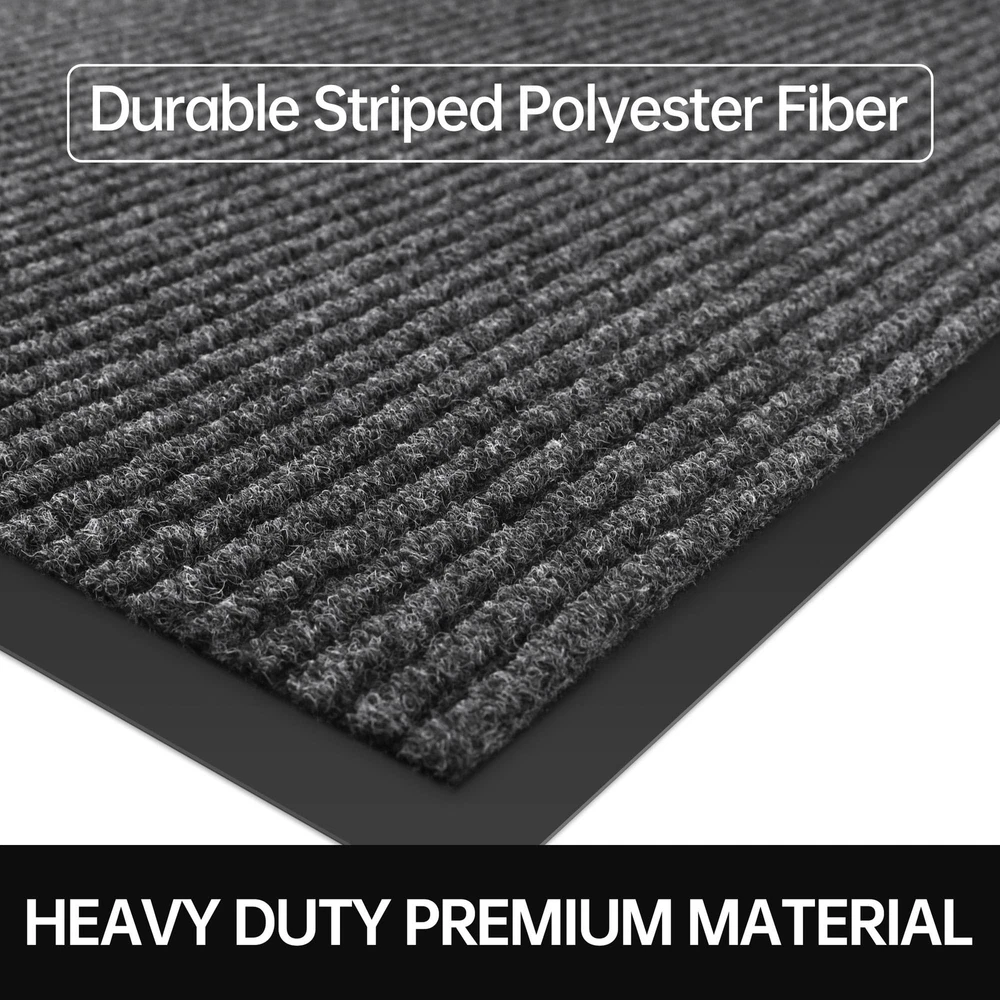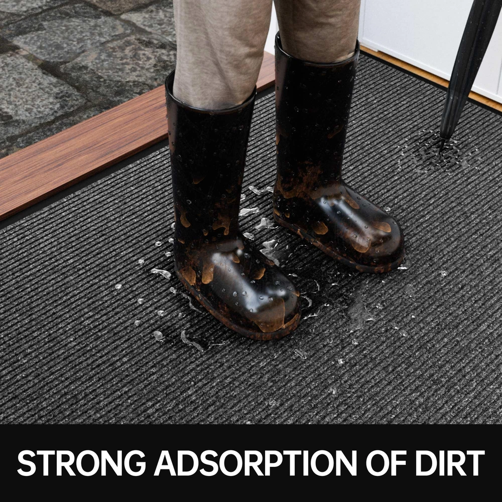 Deeply Absorbs and Captures Dirt: Our outdoor doormats can effectively trap and scrape away dirt and debris from the bottom of dirty shoes, outside door mat keeps your floors clean and tidy. Durable Material: The heavy duty door mat surface is made of premium polyester fibre material, tear, stain and fade resistant. With stripe design that picks up dirt faster, our high traffic welcome mats are designed to withstand heavy foot traffic. Non-Slip Rubber Backing: Our door mats are made with a thickened rubber back, it can be firmly fixed to the floor to prevent slipping. The low profile design makes it easy to open and close the door. Easy to Clean: Large door mat are ultra-absorbent and won't leach stains onto the floor. cleaning the outdoor floor mat, just shake off the dust and debris, you can vacuum the deep dirt when necessary, easy to keep your doorway clean. Multi-Purpose to Use: Our commercial door mat is widely used in outdoor, indoor, and other places with a lot of traffic. Multiple sizes are available to ensure you choose a waterproof door mat that suits you. size including 24" x 48", 24" x 72", 36" x 48", 36" x 60", 36" x 72", 48" x 72", 48" x 96",and 36" x 120".