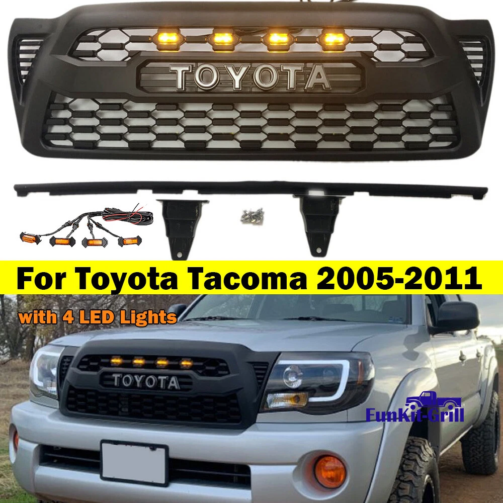 Product Description Front Grille For Toyota Tacoma 2005-2011 Bumper Mesh Grill Matte Black W/4 LEDs 💥Package Includes: 1x Grille with letters 4x LED lights 1x Wire harness 💥 Fitment: For TACOMA 2005 2006 2007 2008 2009 2010 2011 💥Specification: Material: ABS Plastic Color: Refer to Photo Fitment Type: Replacement Directly 💥Feature: *Made of Durable and Premium ABS mterial. Not easy to corrode and rust, and has a long service life. *With three LED amber lights add halo mystery to the car body. *Easy to install : Direct Replacement of your Original Mesh Grill. No Drilling Required. About Us Payment Shipping Returns Contact Us Welcome to FunKit ,this is a professional shop selling Auto parts, with high-quality and affordable products.You can choose the products suitable for your car, we provide you with the best price and high quality products. Thank you for your business.If you have any questions, please contact us. Please leave us with positive feedback if you are satisfied with our products and services,if not, please contact us before leave any neutral or negative feedback,we'll try our best to satisfy with you. Thank you! We only accept PayPal payment. IMPORTANT NOTICE: We ship our products via FedEX or USPS. In some cases,your purchase will be shipped in two packages(e.g. Grille is in a package,letters,LED lights are in another packge),so please be patience if you recieve one of them first. -We do not offer expedited shipping. -We only ship to the Lower 48 states, and we do not ship to FPO, APO or PO Box addresses. And we are not responsible for wrong or undeliverable address. Please provide us your full address with Telephone number and make sure your shipping address is correct and deliverable. If you need to change your address,please change it in PayPal first before you pay. -Package handling only takes 1 business day at our warehouse, so please make sure entering correct payment and shipping information before checking out. -We are not responsible for any changed of address after item has been shipped. Return: We offer a 30-Day Limited Warranty. If you are not satisfied with your purchase, we are more than happy to offer an exchange or refund within 30 days. !!! No returns are accepted after installation/used. ***Received Incorrect / Damaged / Missing Item: Please take some photos of everything you have received in the package, along with a picture of the invoice and shipping label and send it to our email. We will take care of everything. Please inspect the items upon receiving any damages or missing contents. Please contact us within 7 days of delivery via email. If you change your mind / don't like it / buy it by mistake. Please repack the items carefully. Items to be returned must be in resalable condition. Returned items will be tested and if found defective / incorrect / damaged / missing parts,we will deduct the refund based on the condition of the item. The product must in brand NEW conditions and in original packaging. Installations: It is imperative that buyers understand the items are vehicle-related and require installation and vehicle knowledge. Some of our parts are direct from EUROPE or ASIA which may require modification to complete the installation. Most of the items do not have installation instructions. We highly recommend professional installation if you are not familiar with the installation. If you have any question regarding this listing, Please send us a message. Before leaving us neutral or negative feedback, please contact us first. We will do everything we can to give you a satisfying solution. We do our best to resolve any issue. Leaving negative feedbacks and low ratings doesn't get things solved. So please talk with us and we will not let you down. Business hours: Monday to Friday (exclude Holidays) 9:00 A.M. – 6:00 P.M. Pacific Standard Time ***We do not answer any emails over the weekends and holidays. All emails will be replied in the order it was received on the following business day. About Us Welcome to FunKit ,this is a professional shop selling Auto parts, with high-quality and affordable products.You can choose the products suitable for your car, we provide you with the best price and high quality products. Thank you for your business.If you have any questions, please contact us. Please leave us with positive feedback if you are satisfied with our products and services,if not, please contact us before leave any neutral or negative feedback,we'll try our best to satisfy with you. Thank you! Payment We only accept PayPal payment. Shipping IMPORTANT NOTICE: We ship our products via FedEX or USPS. In some cases,your purchase will be shipped in two packages(e.g. Grille is in a package,letters,LED lights are in another packge),so please be patience if you recieve one of them first. -We do not offer expedited shipping. -We only ship to the Lower 48 states, and we do not ship to FPO, APO or PO Box addresses. And we are not responsible for wrong or undeliverable address. Please provide us your full address with Telephone number and make sure your shipping address is correct and deliverable. If you need to change your address,please change it in PayPal first before you pay. -Package handling only takes 1 business day at our warehouse, so please make sure entering correct payment and shipping information before checking out. -We are not responsible for any changed of address after item has been shipped. Returns Return: We offer a 30-Day Limited Warranty. If you are not satisfied with your purchase, we are more than happy to offer an exchange or refund within 30 days. !!! No returns are accepted after installation/used. ***Received Incorrect / Damaged / Missing Item: Please take some photos of everything you have received in the package, along with a picture of the invoice and shipping label and send it to our email. We will take care of everything. Please inspect the items upon receiving any damages or missing contents. Please contact us 