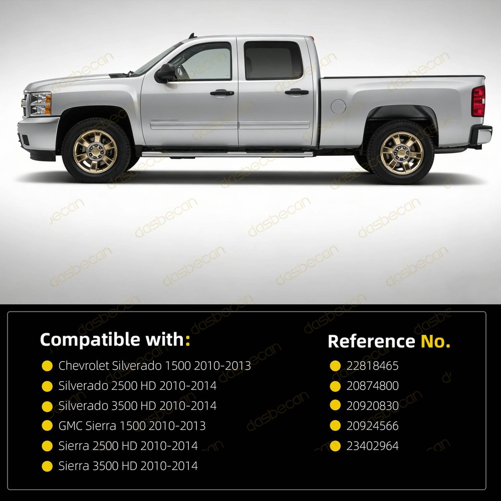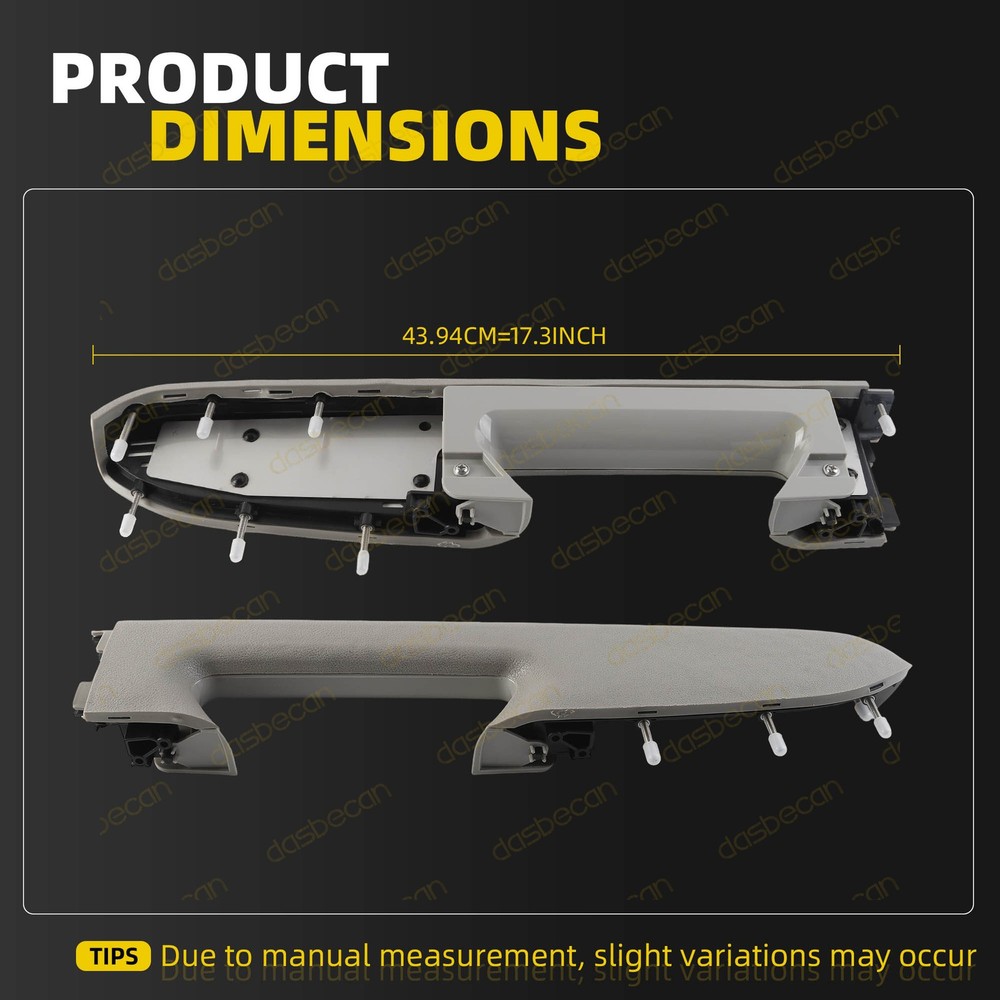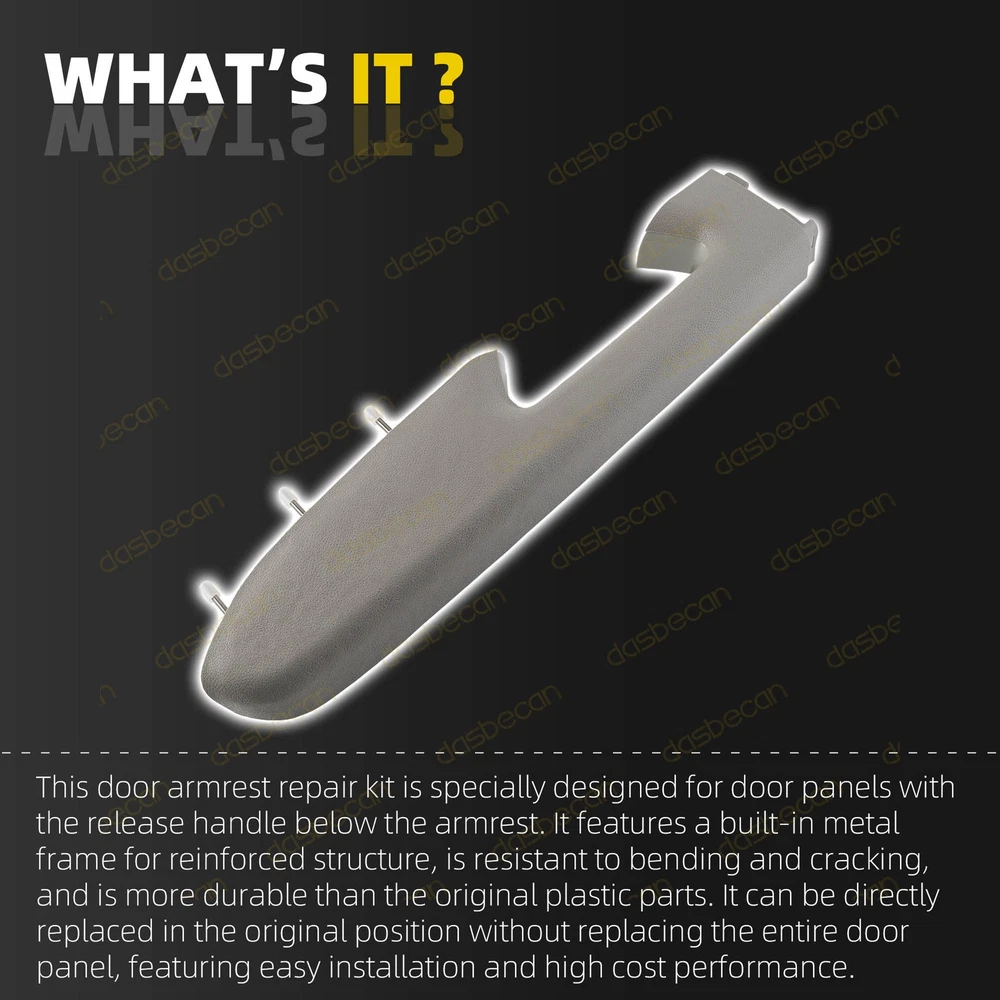 Features & details 【 Compatible With 】 2010-2013 Chevrolet Silverado 1500 2010-2014 Chevrolet Silverado 2500 HD 2010-2014 Chevrolet Silverado 3500 HD 2010-2013 GMC Sierra 1500 2010-2014 GMC Sierra 2500 HD 2010-2014 GMC Sierra 3500 HD 【Replace OE Number】 22818466, 20874801, 20920831, 20924567, 23402965, 22818468, 20874803, 20920833, 20924569 Please check if the picture and part number in the link are the same as your original part. 【 Description 】 Condition: 100% Brand New Type: Armrest Color: Gray Fitment Type: Direct Replacement Placement on Vehicle: Front, Left Driver Side 【 Features 】 Adding Metal Brackets. Since the OEM inner door panel armrests are prone to breaking in the middle, we use an upgraded ABS plastic skeleton and add a metal bracket in the middle of the armrest. This ensures a longer lasting repair compared to the original plastic design. Enhanced Comfort and Aesthetics. The front driver-side inside door panel pull handles is specifically designed for vehicles door panels with a door release handle below the armrest, enhancing driver comfort while improving the overall aesthetics of the interior. You can choose accessories that match the color of your door or experiment with a unique mix-and-match look, different from the original setup. Ease of Maintenance. You can replace just the door armrest instead of the entire door panel. Note: ONLY fit for door panels with a door release handle below the armrest. 【 Package Included 】 1x Left Gray Armrest Repair Kit ( as picture show ) This item doesn't come with manual installation. 【 Note 】 Please allow the slight color difference caused by the shooting light and 1-3cm error due to manual measurement, and make sure you do not mind before you place the order. No installation instruction included, professional installation is highly recommended. 【Service & Warranty】 Purchase from DASBECAN, enjoy 1 year no worries-warranty, whenever you met issue when installing or using, please contact us via eBay Message, and we will reply within 24 hours and help solve the problem. Customer Question & Answers Q1: Will This Part Fit My Vehicle? We list all the compatiblity, if your vehicle does not show up on the compatibility table at the top of our listings, welcome you to contact us for free consulation before purchasing a product. Q2: Does they come with warranty? All of our product comes with 1-year warranty, but some times you need to pay the shipping fee. Q3: How to use it? If you don't know how to install this accessory, welcome to contact us, we will provide you with a video guide. Payment Shipping Warranty & Service Returns/Exchanges Contact us Payment Most of the payment methods are available, such as Paypal, Payoneer, Credit Card. Within 1 day of receiving your payment, we will start processing your order. Shipping All Items Will Be Ship Within 1working Days, and We Will Ship out All Orders As Soon As Possible After Payment Verified, Please Allow up to 1-6 Business Days for Delivery. Why Choose the Us Stock? 1. Us Local Shipping, No Extra Customs Cost. 2. Fast Delivery: 1-6 Working Days Delivery. Warranty & Service If the item is installed or defective after 30 days , please check our warranty page. We offers an one-year warranty on all parts sold unless otherwise noted. We aim to provide the high quality auto parts and accessories, but some rare cases happened. We offer following options for warranty service: If the item fails after installation : You must provide your valid purchase record , with photos or videos proving the product's own fault via eBay messages, after which we will provide you with a replacement warranty service. Please note that this warranty only applies to automotive parts installed in full compliance with the installation instructions, as well as return requests for which photos and videos proving the product's own fault are provided to us. If we send you the wrong parts: You can promptly send us a message to inform us, and we will prioritize arranging a replacement. Meanwhile, we will provide a return label for you to send back the incorrectly shipped items. Shipping Damage. We use UPS Ground, Fedex and USPS First class to ship all items . Buyer should check the parcel condition before sign the signature . Please refuse to sign the parcel if you noticed something wrong , and get a shipping damaged report from carrier. We will send you a replacement at the same day once you provide the shipping damage report . We won’t cover any lost if buyer don’t check the parcel condition before the signature. This warranty does not cover any expenses incurred in the removal and / or re-installation of the item. Specifically, this warranty does not cover any expenses for time, rental, or other parts not purchased from us, or any labor. This warranty does not apply, and will be voided, if the item sold has been damaged by abuse, misuse, accident, neglect, or alteration, or if it has been repaired by anyone . Your warranty will be null and void if the item fails due to improper installation or use. If the item sold should prove defective in material or workmanship within the warranty period, please contact us immediately. Returns/Exchanges Please contact us via eBay messages between 9:30 a.m. and 6:00 p.m. PDT, (Monday to Friday) to obtain a return label with a return number. Without a Return Authorization Number, we will not be able to identify your return request. All returns must be done within 30 days after receiving the package. Parts must be new and unused in the original condition : including box, packaging and all other accessories,or we will charge you a partial costs. Return requests initiated directly on the eBay platform may not be processed promptly due to delays in eBay's procedural timeline. We highly recommend that you contact us first to receive priority processing. If you receive an item that is incorrect, damaged, defective, or not as described, please contact us and provide re