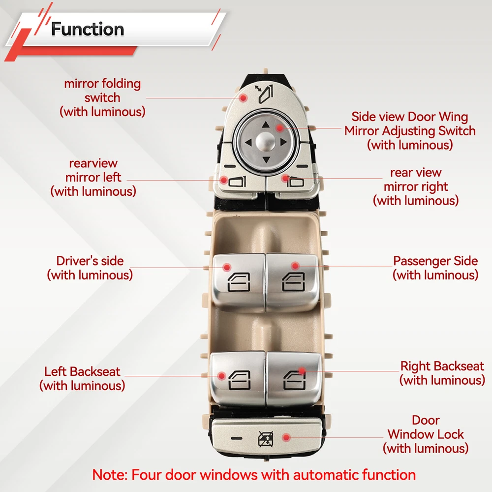 Front Left Master Power Window Switch 2229056800 For Mercedes Benz C300 GLC300 & Description: 100% Brand new and high quality Easy installation and durable A Perfect aftermarket replacement OE:2059056811, A2059056811, 2229056800, A2229056800, A20590568119051 Color :Silver & Beige Fitment: for Mercedes-Benz C-Class Saloon (W205)05.2014-05.2018 for Mercedes-Benz GLC300 2016-2018 for Mercedes-Benz C350e 2016-2018 for Mercedes-Benz C63 AMG 2016-2018 for Mercedes-Benz C300 2015-2018 for Mercedes-Benz C43 AMG 2017-2018 for Mercedes-Benz C63 AMG S 2015-2018 for Mercedes-Benz GLC43 AMG 2017-2018 Package Includes: 1x With frame glass lifter switch Note: 1. Please Check The Size Detail Carefully Before You Purchase 2. Due to computers display colors differently,the color may vary slightly from the above images,Thanks for your understanding! 3. Manual measured, please allow 2-4mm error 4. You have any questions, please feel free to contact us, we will reply as soon as possible and help you solve! We accept Paypal and majoy credit cards payment When you place an order, please choose a shipping method and pay for the order including the shipping fee within 48 hours. And please make sure your current address correct after your payment within 1-2 days! About Shipping 1. Receiving time = Processing time + Shipping time 2. Processing Time: Around 1-3 Days 3. Shipping Time: 15-26 Days By Air Mail 3-10 Working Days By Express We do not guarantee delivery time on all international shipments due to differences in customs clearing times in individual countries, which may affect how quickly your product is inspected! Important Notice >Transit Time Is Best Estimated But NOT Guaranteed As Transit Time Varies >Orders may be subject to import taxes, customs duties and fees levied by the destination country.Additional charges for customs clearance must be fulfilled by the recipient; We no control over these charges, nor can we predict what they may be. 100% Customer Satisfaction Is Our Top Priority For Any Reasons You Are Not Satisfied With The Products Within 30 Days Of Purchase, Return Or Exchange Can Be Issued, Customers Are Responsible For The Return Shipping Cost And Subsequent Replacement Shipping Cost For An Exchange Item. Replacement Item Will Be Processed And Shipped Upon Return And Inspection Of The Original Item. Return Items Must Be In Their Original Packaging And Unused Condition, Or They Will Be Rejected And Sent Back To You. Due To The Nature Of The Products We Sell, We Carefully Inspect All Packages Prior To Shipping. All Of Our Products Are Sold As Brand New, All Damaged Products Are Considered Damaged During Transit. If You Received A Damaged Or Broken Item, Please Save All Packaging Material And Paperwork And Contact Us Immediately So We Can Help You With The Damage Claim With The Shipping Carrier. No Claims Will Be Honored After 14 Days Upon Item Receive. Digital Photos Will Be Required For All Cases. All Products Come With A 60 Days Limited Warranty Against Manufacturer’s Defects. No Exchange Will Be Issued On Products That Have Been Damaged In Any Way. Warranty Does Not Applied To Improper Installation, Water / Fire Damage, Modification, Or Any Acts Of Nature . If you have any question or concern, please feel free to contact us via eBay massage directly, we will get back to you as soon as we are available ATTENTION : We do not answer any emails over the weekend Please send message to us.We will reply your message in 24 hours, Our working time: 9:00 AM-22:30 PM (GMT+ 08:00 Beijing) 1:00 AM -14:30 PM (GMT+ 00:00 London) 19:00 PM-08:30 AM (GMT- 06:00 USA/Canada) Why Choose us? 1. A tremendous variety of products-- With over 200,000 items in stock, we are one of the world's largest online stores in automotive aftermarket product sector. You'll have more choices than what you can ever imagine. What's more, we're updating with over 100 new arrivals per month! 2. Affordable prices -- we are offering the latest car parts and accessories for almost 20 years, we're always keeping up with the newest trends, while most importantly, making the prices as low as we can. 3. Free worldwide shipping -- Yep, you won't believe that you'll enjoy free worldwide shipping with us (unless stated otherwise),it's not a joke,but an absolute truth. 4. No-question refund and return-- Anything wrong issuing quality and breakage can be returned or refundable. Description: 100% Brand new and high quality Easy installation and durable A Perfect aftermarket replacement OE:2059056811, A2059056811, 2229056800, A2229056800, A20590568119051 Color :Silver & Beige Fitment: for Mercedes-Benz C-Class Saloon (W205)05.2014-05.2018 for Mercedes-Benz GLC300 2016-2018 for Mercedes-Benz C350e 2016-2018 for Mercedes-Benz C63 AMG 2016-2018 for Mercedes-Benz C300 2015-2018 for Mercedes-Benz C43 AMG 2017-2018 for Mercedes-Benz C63 AMG S 2015-2018 for Mercedes-Benz GLC43 AMG 2017-2018 Package Includes: 1x With frame glass lifter switch Note: 1. Please Check The Size Detail Carefully Before You Purchase 2. Due to computers display colors differently,the color may vary slightly from the above images,Thanks for your understanding! 3. Manual measured, please allow 2-4mm error 4. You have any questions, please feel free to contact us, we will reply as soon as possible and help you solve! PAYMENT We accept Paypal and majoy credit cards payment When you place an order, please choose a shipping method and pay for the order including the shipping fee within 48 hours. And please make sure your current address correct after your payment within 1-2 days! SHIPPING About Shipping 1. Receiving time = Processing time + Shipping time 2. Processing Time: Around 1-3 Days 3. Shipping Time: 15-26 Days By Air Mail 3-10 Working Days By Express We do not guarantee delivery time on all international shipments due to differences in customs clearing times in individual countries, which may affect how quickly your product is inspected! Important Notice >Transit Time Is Be
