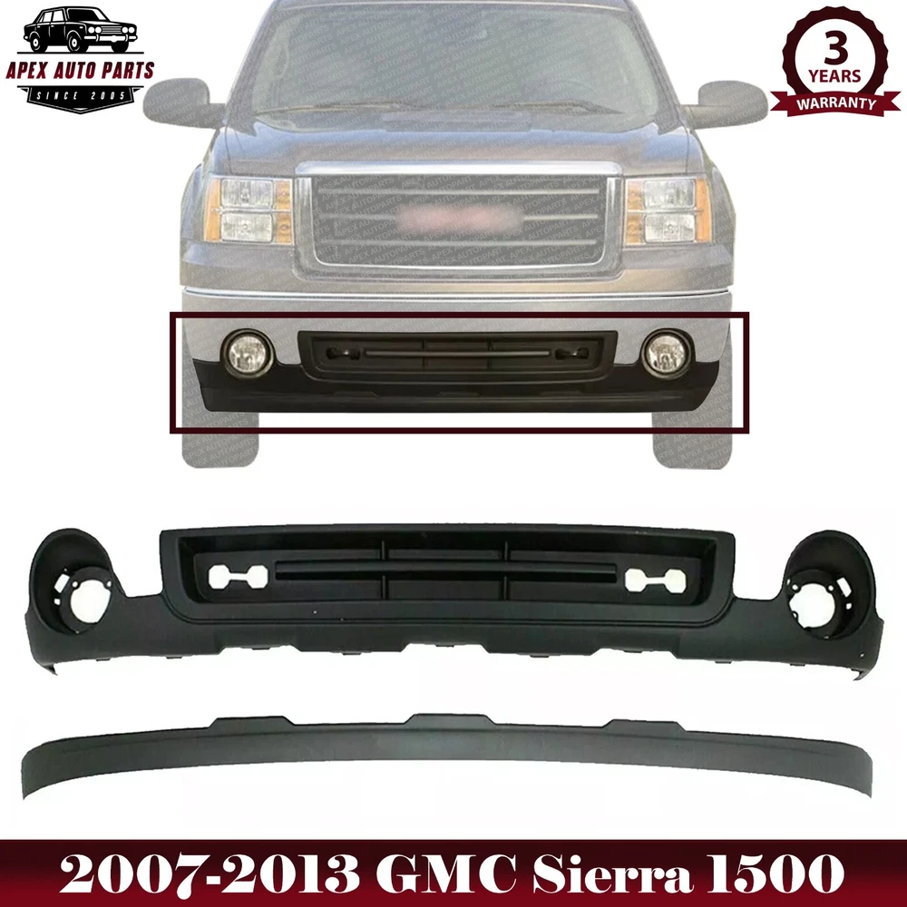 eBay Welcome to APEX AUTO PARTS Store Home About Us Feedback Add To Favorites New Arrivals Ending Soon Contact Us Front Bumper Lower Valance Textured and Deflector Extension For 2007-2013 GMC Sierra 1500 Product Description WARNING : This product can expose you to chemical which is known to the State of California to cause cancer and birth defects or other reproductive harm. For more information go to www.P65Warnings.ca.gov. Specifics and Features : Quantity Sold : Set of 2 Product Fit : Direct Fit Recommended Use : OE Replacement Replaces OE Number : 15917769 15131299 Replaces Parts link Number : GM1015100 GM1092211 Includes : 1 x Front Bumper Cover 1 x Front Bumper Grille 1 x Front Grille Notes : Compatible with : 2007 GMC Sierra 1500 SLE 8 Cyl 5.3L 2007 GMC Sierra 1500 SLE 8 Cyl 6.0L 2007 GMC Sierra 1500 SLE 8 Cyl 4.8L 2007 GMC Sierra 1500 SLT 8 Cyl 6.0L 2007 GMC Sierra 1500 SLT 8 Cyl 5.3L 2007 GMC Sierra 1500 WT 8 Cyl 4.8L 2007 GMC Sierra 1500 WT 8 Cyl 5.3L 2007 GMC Sierra 1500 WT 6 Cyl 4.3L 2008-2009 GMC Sierra 1500 SLE 8 Cyl 6.0L 2008-2009 GMC Sierra 1500 SLT 8 Cyl 6.0L 2008-2013 GMC Sierra 1500 SL 8 Cyl 4.8L 2008-2013 GMC Sierra 1500 SLE 8 Cyl 5.3L 2008-2013 GMC Sierra 1500 SLE 8 Cyl 4.8L 2008-2013 GMC Sierra 1500 SLT 8 Cyl 5.3L 2008-2013 GMC Sierra 1500 WT 8 Cyl 4.8L 2008-2013 GMC Sierra 1500 WT 8 Cyl 5.3L 2008-2013 GMC Sierra 1500 WT 6 Cyl 4.3L 2009-2013 GMC Sierra 1500 Hybrid 8 Cyl 6.0L 2009-2013 GMC Sierra 1500 SLT 8 Cyl 6.2L 2010-2013 GMC Sierra 1500 SL 8 Cyl 5.3L 2010-2013 GMC Sierra 1500 SLE 8 Cyl 6.2L Shipping Payment Returns Terms & Conditions Feedback Contact Us DOMESTIC LOWER 48 US STATES: FREE SALES TAX: CA ONLY VERY IMPORTANT: Double check shipping address. We are not responsible for incorrect or undeliverable addresses. Please use Shipping & Payments tab on top of page for shipping details for your location. Shipping to PR, HI, AK and PO Box addresses will be charged the same as shipping to Canada. GU, VI, SAIPAN will be charged the same as international shipping rate. For Canada shipping please select the lowest price. We do not offer expedited shipping. US Territories such as GU, VI, SAIPAN will be charged the same as CANADA shipping rate. Transaction will be held until a full shipping amount received. Some of the packages cannot be delivered to a PO Box. Customer is responsible to ensure PO Box address given is deliverable by the shipping company. Package will be held until a valid physical address is provided. Customer assumes shipping charges incurred in shipping to undeliverable address. International buyers are responsible for all customs duties, taxes, and other applicable fees incurred by the country's customs/border regulations. Please contact customs for more information. We ship 98% of all orders the same or next business day after payment received/cleared. Please understand that once orders are shipped, we cannot control the transit times thereafter. Most orders will ship via USPS First Class/Priority Mail or FedEx/UPS or the best suitable carrier for the specific size of the product. We are not responsible for any changes to address after item has been shipped. Item will be shipped out within 24-48 hours after payment cleared, except for weekends and holidays. PayPal e-check takes 3-7 business days to be processed. We will not ship until an e-check has been cleared. We do not accept returns. However, if there is an issue with your package, please contact us within 5 days of delivery. If we are not contacted within this period, we will be unable to process any claims. For emissions related items, please check with your local jurisdiction for emission specific requirements before purchasing. All items do not come with installation instruction unless otherwise specified. If item is questionable, please consult your local professional/mechanic before making purchase. Shipping DOMESTIC LOWER 48 US STATES: FREE SALES TAX: CA ONLY VERY IMPORTANT: Double check shipping address. We are not responsible for incorrect or undeliverable addresses. Please use Shipping & Payments tab on top of page for shipping details for your location. Shipping to PR, HI, AK and PO Box addresses will be charged the same as shipping to Canada. GU, VI, SAIPAN will be charged the same as international shipping rate. For Canada shipping please select the lowest price. We do not offer expedited shipping. US Territories such as GU, VI, SAIPAN will be charged the same as CANADA shipping rate. Transaction will be held until a full shipping amount received. Some of the packages cannot be delivered to a PO Box. Customer is responsible to ensure PO Box address given is deliverable by the shipping company. Package will be held until a valid physical address is provided. Customer assumes shipping charges incurred in shipping to undeliverable address. International buyers are responsible for all customs duties, taxes, and other applicable fees incurred by the country's customs/border regulations. Please contact customs for more information. We ship 98% of all orders the same or next business day after payment received/cleared. Please understand that once orders are shipped, we cannot control the transit times thereafter. Most orders will ship via USPS First Class/Priority Mail or FedEx/UPS or the best suitable carrier for the specific size of the product. We are not responsible for any changes to address after item has been shipped. Payment Item will be shipped out within 24 hours after payment cleared, except for weekends and holidays. PayPal e-check takes 3-7 business days to be processed. We will not ship until an e-check has been cleared. Returns 30 Days money back, please notify us within 30 days after you've received your purchased item. All return requests must be submitted through your eBay account. You have to obtain a RMA (Return Merchandise Authorization) number from us, and have the RMA number written on the return package. Buyers pay for return shipping fee. Items to be returned must 