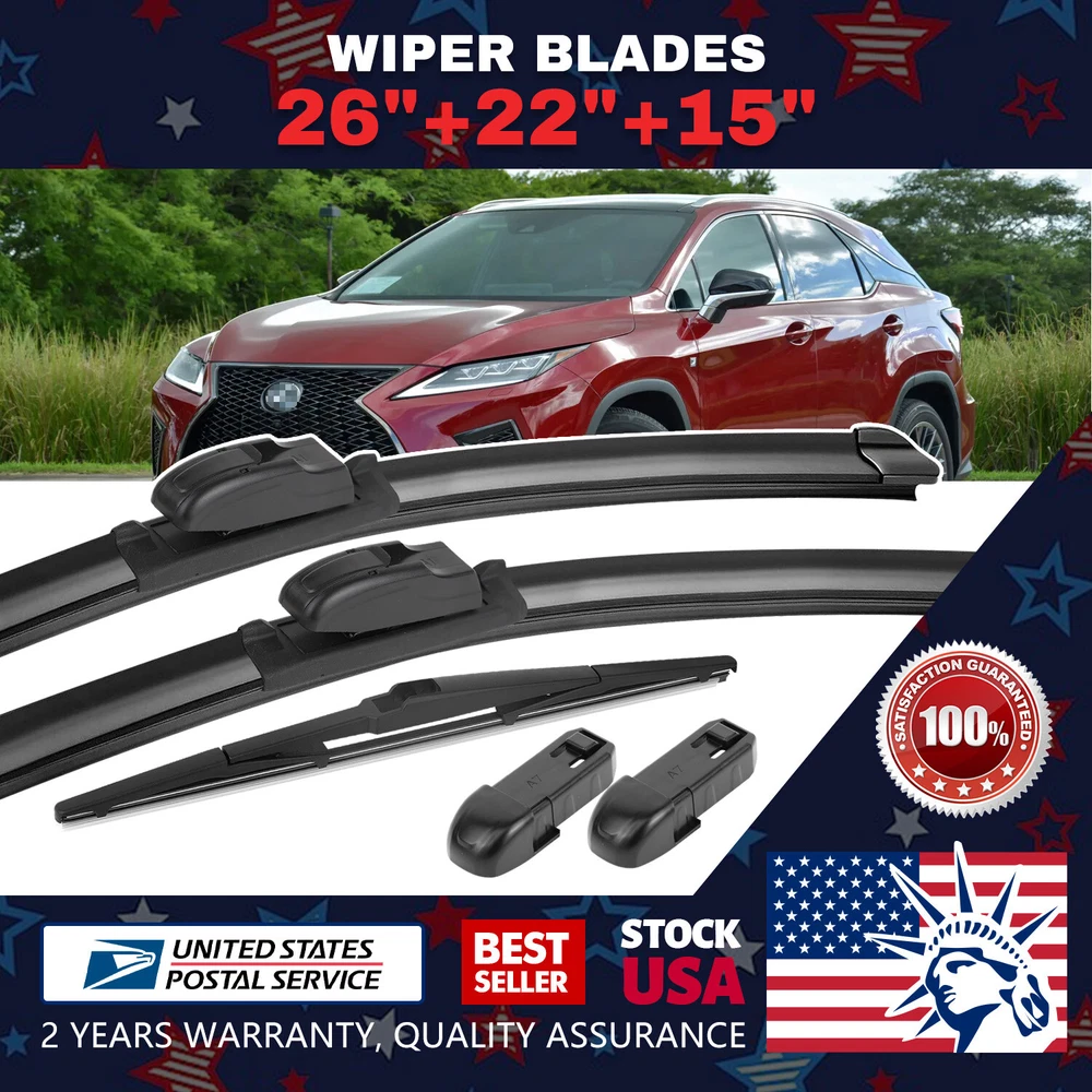 Characteristics of MGT wipers 【Heat and cold resistance】: The wiper can work in high and low temperature environments, ensuring the stability and reliability of the wiping function 【Acid and alkali resistance, corrosion resistance】: The wiper material has good acid and alkali resistance, which can resist the erosion of chemical substances in rain, snow, and dust on the windshield, extending the service life of the wiper 【Fit to the windshield】: A good wiper can tightly fit the windshield, making the wiping effect better. 【Reducing motor burden】: When designing wipers, it is usually considered to reduce the load on the motor, making wiping smoother. Maitisouth Best choice of motor parts Front & Rear / 26''+22''+15'' / Premium Rubber Windshield Wiper Blades /pair Characteristics of MGT wipers 【Heat and cold resistance】 : The wiper can work in high and low temperature environments, ensuring the stability and reliability of the wiping function 【Acid and alkali resistance, corrosion resistance】 : The wiper material has good acid and alkali resistance, which can resist the erosion of chemical substances in rain, snow, and dust on the windshield, extending the service life of the wiper 【Fit to the windshield】 : A good wiper can tightly fit the windshield, making the wiping effect better. 【Reducing motor burden】 : When designing wipers, it is usually considered to reduce the load on the motor, making wiping smoother. 【Low noise】 : The wiper produces low noise during operation and has less interference with the driver. 【Strong water repellency】 : The wiper can effectively remove rainwater from the windshield and maintain a clear driving view. 【Soft and non scratch glass】 : The wiper blade material is soft and will not scratch the windshield, thus protecting the windshield from damage. Description: ➥ 100% Brand New,never been use ➥ 100% fitment guaranteed ➥ Meets or exceeds OEM safety and durability standards ➥ Delivers smooth, quiet, clean, smear free wiping ➥ Wiping Durability: 1.5 Million Times of Wiping ➥ The bracketless design offers better resistance to ice and snow build-up ➥ The aerodynamic design creates down force preventing blade lift-off ➥ The improved flexible spine design insures maximum screen contact ➥ Temperature Tolerance: +158F to -40F (+70C to -40C) ➥ They are made with premium quality rubber with DuPont coating that offer superior wiping performance and have a much longer lifespan than the conventional rubber type Package includes: ★Driver Side: one 26" wiper blade ★Passenger Side: one 22" wiper blade ★Rear Side: one 15" wiper blade (Only Fit For U/J Hook Wiper Arm) For Year and Model, Please Check Compatibility Fitment: ▶Lexus RX330 2004-2022 ▶Lexus RX350 2004-2015 ▶Lexus RX400h 2004-2022 ▶Lexus RX450h 2004-2022 How to install: ⭐ Step 1: Park and prepare Park the vehicle in a safe location and determine if your car has a wiper repair mode. If so, you need to activate the wiper repair mode to keep the wiper arm in a more easily replaceable position. Purchase a new wiper with the appropriate model according to the wiper interface type, and prepare a clean cloth or towel. ⭐ Step 2: Remove the old wiper Remove the old wiper according to the corresponding method based on the wiper interface type. For example, for a U-shaped interface, simply press the buckle and pull out the wiper. ⭐ Step 3: Clean the wiper arm and windshield Before replacing the new wiper, wipe the wiper arm and windshield with a clean cloth to ensure that there is no dust or impurities. ⭐ Step 4: Install a new wiper Align the interface of the wiper with the interface of the wiper arm, and then install it in reverse steps to ensure a secure installation without looseness. ⭐ Step 5: Inspection and Testing Finally, place the wiper arm and start the vehicle to test whether the new wiper is working properly. Ensure good wiping effect and no abnormal noise. Note: Please make sure it is suitable for your car before purchase. Please feel free to contact us if you have any questions. We have more models and sizes of wipers, please come to the store to choose from Wish you have a good shopping time~ Item Specifics Brand MGT Position Windshield Type Wiper Blade Number of Pieces 3 Placement on Vehicle Front left & Front right & Rear Size 26in & 22in & 15in Features Wiper Blade is Designed for Easy DIY Installation Features 2 Over 1500000 cycles of wiping !!! Features 3 Good Wiping Performance even at Higher Speeds Model Wiper Blade Material Rubber/ABS Items Included Set of 26"&22"&15" Wiper Blades Compatible Wiper Arm U/J-hook Arm Manufacturer Warranty 2 Years Model 1 For Lexus RX330 2004-2022 Model 2 For Lexus RX350 2004-2015 Model 3 For Lexus RX400h 2004-2022 Model 4 For Lexus RX450h 2004-2022 OE/OEM Part Number Wiper Blade Manufacturer Part Number Wiper Blades 26'' 22'' 15'' Payment ✎ 1. It will be much appreciated that you finish your payment asap or it will make UPI (unpaid item case) on your account leading to be suspended or restricted by eBay when those UPI cases carry over to certain amount. ✎ 2. Any problems please contact us for more details. Shipping ✌ 1. All items will be shipped to buyer's ebay address. ✌ 2. All items will be shipped within 24-48 working hours upon receipt of payment, and multiple items will be combined shipping. ✌ 3. In most cases, delivery takes around 3-5 business days, it's highly depended on the efficiency of the shpping carrier. If your item doesn't arrive on time, please contact us immediately for further assistance. Please note there is no local pickup service available. Returns ✎ If you are not 100% satisfied with your purchase, you can return the product and get a full refund or exchange the product for another one. Please Note: ✎ Any product you return must be in the same condition you received it and in the original packaging. Contact Us ✎ 1. We care about our valued buyers, if y