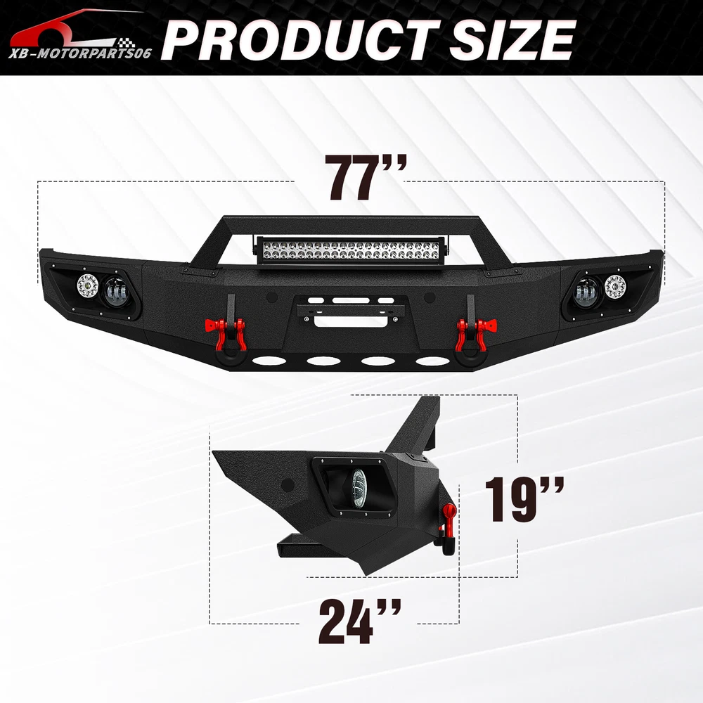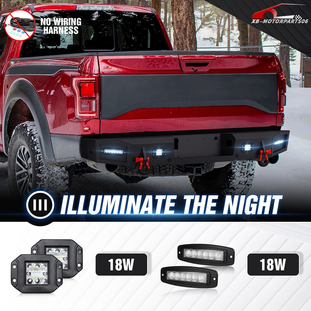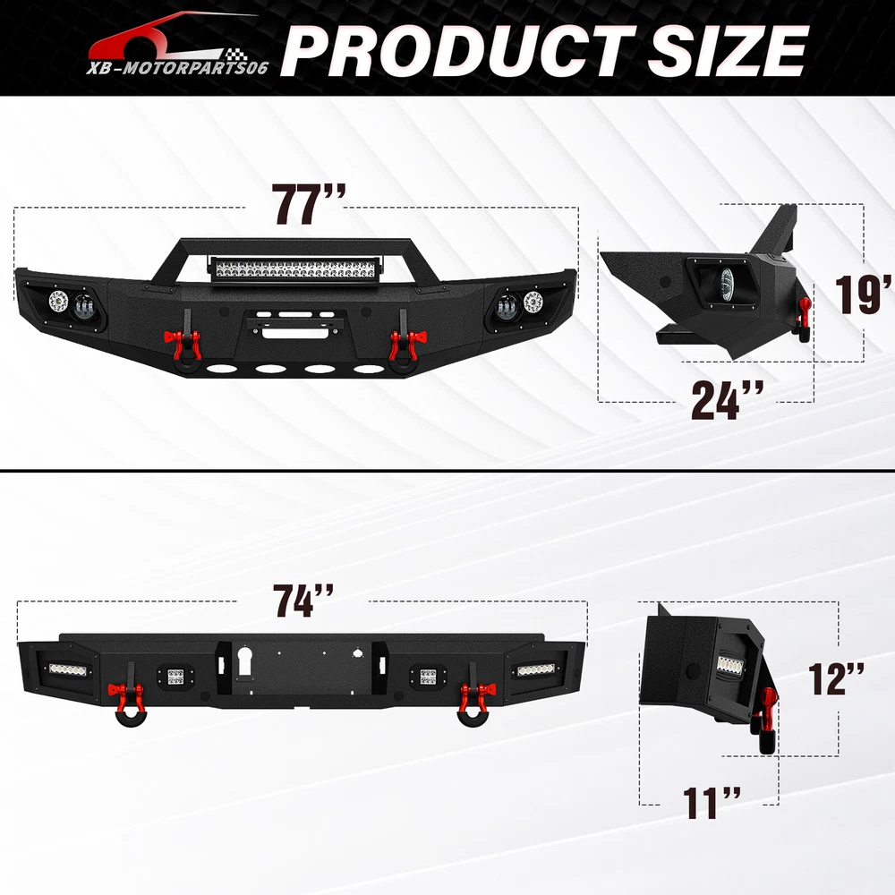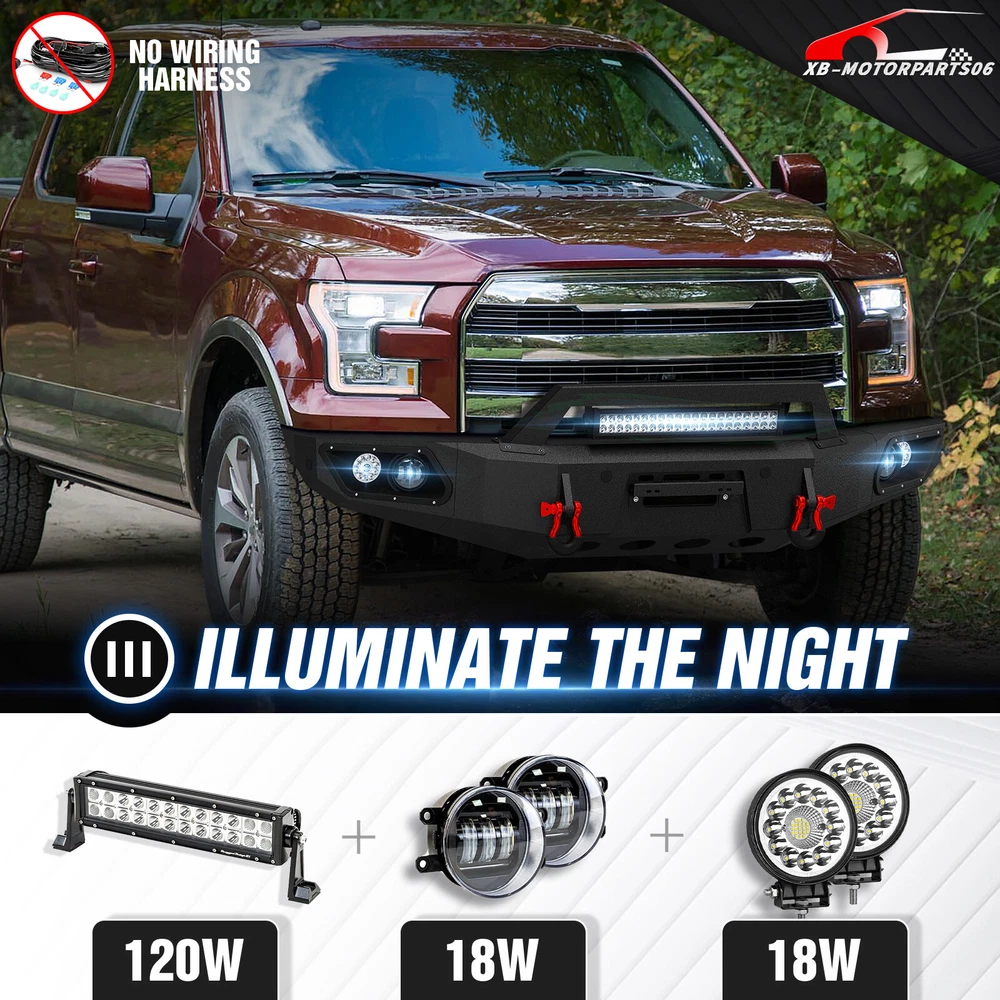 Front /Rear Bumper For 2015 2016 2017 Ford F150 (Excluding Raptor and Ecoboost) Please pay attention to the product options you select: If you choose Front & Rear Bumper,You can get 1 × Front Bumper, 1 × Rear Bumper and Mounting Hardware; If you choose Only Front Bumper,You can get 1 × Front Bumper and Mounting Hardware; If you choose Only Rear Bumper,You can get 1 × Rear Bumper and Mounting Hardware; Suitable Models : Compatible with 2015 2016 2017 Ford F150 (Excluding Raptor and Ecoboost) Package Includes : ① Front & Rear Bumper option : 1 x Front Bumper, 1 x Rear Bumper, 1 x Winch Plate, 1 x License Plate Bracket , 9 x LED Lights, 4 x D-rings, 2 x manual, screw fittings, Paintable Armor ② Front Bumper option : 1 x Front Bumper, 1 x Winch Plate, 1 x License Plate Bracket , 2 x D-rings, 5 x LED Lights, 1 x manual, screw fittings ③ Rear Bumper option : 1 x Rear Bumper, Paintable Armor , 2 x D-rings, 4 x LED Lights, 1 x manual, screw fittings Product Information : Package Dimensions : 65.35"D x 18.31"W x 13.39"H Installation mode: Bolt-On With Sensor Holes: Yes ( Not fit for original sensor ) Steel thickness: 3mm Placement on Vehicle: Front/Rear Item Weight: Front Bumper: 122.1 Pounds; Rear Bumper: 68.2 Pounds Material: Carbon Steel Color: Black (hand measurements may have an error of 2-3 mm/0.078-0.118 in) Feature : Front bumper : ①Made of high-strength steel, with a two-stage textured black powder coating; ②P re-drilled backup sensor holes; ③ No cutting, no drilling required, Rust-proof; ④Powder Coated, Durability, Waterproof; Rear Bumper : ①Made of high-strength steel, with a two-stage textured black powder coating; ② It has pre-drilled holes for backup sensors, license plates, lights, and a trailer plug; ③ No cutting, no drilling required, Rust-proof; ④Powder Coated, Durability, Waterproof; Warranty Period :2 year Standard Shipping (FedEx Ground or FedEx Home Delivery) Will usually ship within 3 business days of receiving cleared payment Please pay attention to the product options you select: If you choose Front & Rear Bumper,You can get 1 × Front Bumper, 1 × Rear Bumper and Mounting Hardware; If you choose Only Front Bumper,You can get 1 × Front Bumper and Mounting Hardware; If you choose Only Rear Bumper,You can get 1 × Rear Bumper and Mounting Hardware; Suitable Models : Compatible with 2015 2016 2017 Ford F150 (Excluding Raptor and Ecoboost) Package Includes : ① Front & Rear Bumper option : 1 x Front Bumper, 1 x Rear Bumper, 1 x Winch Plate, 1 x License Plate Bracket , 9 x LED Lights, 4 x D-rings, 2 x manual, screw fittings, Paintable Armor ② Front Bumper option : 1 x Front Bumper, 1 x Winch Plate, 1 x License Plate Bracket , 2 x D-rings, 5 x LED Lights, 1 x manual, screw fittings ③ Rear Bumper option : 1 x Rear Bumper, Paintable Armor , 2 x D-rings, 4 x LED Lights, 1 x manual, screw fittings Product Information : Package Dimensions : 65.35"D x 18.31"W x 13.39"H Installation mode: Bolt-On With Sensor Holes: Yes ( Not fit for original sensor ) Steel thickness: 3mm Placement on Vehicle: Front/Rear Item Weight: Front Bumper: 122.1 Pounds; Rear Bumper: 68.2 Pounds Material: Carbon Steel Color: Black (hand measurements may have an error of 2-3 mm/0.078-0.118 in) Feature : Front bumper : ①Made of high-strength steel, with a two-stage textured black powder coating; ②P re-drilled backup sensor holes; ③ No cutting, no drilling required, Rust-proof; ④Powder Coated, Durability, Waterproof; Rear Bumper : ①Made of high-strength steel, with a two-stage textured black powder coating; ② It has pre-drilled holes for backup sensors, license plates, lights, and a trailer plug; ③ No cutting, no drilling required, Rust-proof; ④Powder Coated, Durability, Waterproof; Warranty Period :2 year