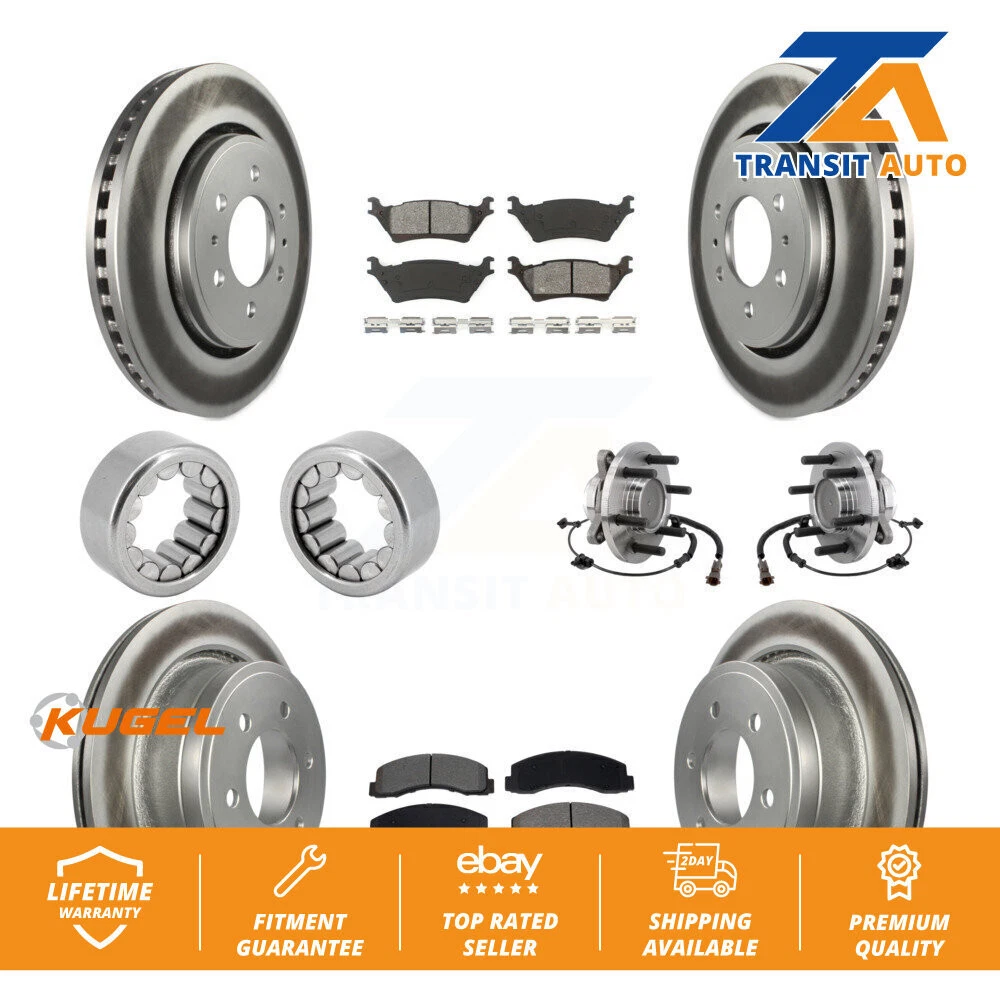 More details from seller Transit Auto Front Rear Wheel Hub Bearings Assembly Coated Disc Brake Rotors And Semi-Metallic Pads Shoes Kit (10Pc) KBB-129778 COMPATIBILITY This product only fits the following vehicles : 2018 Ford F-150 RWD AND With Manual Parking Brake Your vehicle is not listed? Search in our store by entering your vehicle year make model and the position you are searching for in the form below. PRODUCT DESCRIPTION Included (10 pcs) 2 x Rear Wheel Bearing (Both Sides) 2 x Front Wheel Bearing and Hub Assembly (Both Sides) 2 x Front Coated Disc Brake Rotor (Both Sides) 1 x Front Semi-Metallic Disc Brake Pad Set (Hardware Included) 2 x Rear Coated Disc Brake Rotor (Both Sides) 1 x Rear Semi-Metallic Disc Brake Pad Set (Hardware Included) Kit variants Bearing / Semi-Metallic Pads / CMX Ceramic Pads / Wheel Bearing and Hub Assembly (KBB-129770) Bearing / Premium Ceramic Pads / Drilled Sloted Coated Disc Rotor / Wheel Bearing and Hub Assembly (KBB-129817) Bearing / Semi-Metallic Pads / Drilled Sloted Coated Disc Rotor / Wheel Bearing and Hub Assembly (KBB-129823) Bearing / Ceramic Pads / G-Coated Rotors / Wheel Bearing and Hub Assembly (KBB-129746) Bearing / Ceramic Pads / CMX Ceramic Pads / Wheel Bearing and Hub Assembly (KBB-129750) Bearing / Premium Semi-Metallic Pads / G-Coated Rotors / Wheel Bearing and Hub Assembly (KBB-129754) Bearing / Premium Ceramic Pads / G-Coated Rotors / Wheel Bearing and Hub Assembly (KBB-129768) Bearing / Premium Semi-Metallic Pads / CMX Ceramic Pads / Wheel Bearing and Hub Assembly (KBB-129758) Bearing / Ceramic Pads / Drilled Sloted Coated Disc Rotor / Wheel Bearing and Hub Assembly (KBB-129807) Bearing / Premium Semi-Metallic Pads / Drilled Sloted Coated Disc Rotor / Wheel Bearing and Hub Assembly (KBB-129813) Bearing / Premium Ceramic Pads / CMX Ceramic Pads / Wheel Bearing and Hub Assembly (KBB-129762) Kugel Core made of High-Carbon AISI 52100 Chromium Alloy Steel features higher wear resistance, fatigue strength and steel hardness Premium quality MolyPro™ NLGI Grade 2 Molybdenum Grease (MoS2) to minimize wear and reduce friction providing longer lasting performance Exclusive multi-lip seals are made with ProSeal™ Nitrile Rubber (NBR) which can successfully function at high delta of temperatures while retaining its flexibility and sealing performance Inner rings are made of Case-Hardened Steel for improved resistance to surface wear and contact fatigue Thickness and metallurgy electronically validated for manufacturing consistency SAE J1714, J2525 and J2535 validated for OEM load-carrying capacity, durability, and performance characteristics Part Reference Numbers : WE60762 CBR-A36 R-1561-TV R1561-TV R1561TV Interchanges: WE60762, CBR-A36, N/A, R-1561-TV, R1561-TV, R1561TV Kugel Core made of High-Carbon AISI 52100 Chromium Alloy Steel features higher wear resistance, fatigue strength and steel hardness Premium quality MolyPro™ NLGI Grade 2 Molybdenum Grease (MoS2) to minimize wear and reduce friction providing longer lasting performance Exclusive multi-lip seals are made with ProSeal™ Nitrile Rubber (NBR) which can successfully function at high delta of temperatures while retaining its flexibility and sealing performance Inner rings are made of Case-Hardened Steel for improved resistance to surface wear and contact fatigue Thickness and metallurgy electronically validated for manufacturing consistency SAE J1714, J2525 and J2535 validated for OEM load-carrying capacity, durability, and performance characteristics Bearing already mounted and secured on the assembly to required OE torque specification for easier and faster installation Coated wheel studs resist corrosion and rust for easier removal and proper torquing Professional-Grade ABS sensors and clips with AccuPro™ technology included (when required by the application) Part Reference Numbers : WH515176 MB40335 515176 JL1Z1104D BR931149 HA590794 HA590796 TRB-515176 Interchanges: N/A, WH515176, MB40335, 515176, JL1Z1104D, BR931149, HA590794, HA590796, TRB-515176 Genius Make sure to buy two (2)! (One for left side and one for right side) Engineered with with Carbon-Enhanced G-Cast™ (G11H18/G3000) iron castings to achieve an optimal braking performance (strength, stability, durability) Exclusive G-Coat™ double-layer (8µm) protective coating provides rust protection on 100% of the non-braking surface 100% Precision Spin and Mill-Balanced for smoother stopping and zero vibration at any speed Cross-Hatched smooth surface to improve the pad's ability to grip the rotor surface, especially during initial brake applications or in wet conditions Double disc ground finish eliminates lateral run-out and DTV (disk thickness variation) issues on the rotor and improves pad-rotor bed-in Tested for maximum tolerance to voluminous amount of constant thermal cycles CNC-Machined to the tightest tolerances to guarantee manufacturing precision and accuracy Best matched with CMX, TEC, SIM or Positive Plus brake pads Packed in a Vapor Corrosion Inhibitor (VCI) bag, it eliminates the need for an oil coating and reduces prep time Part Reference Numbers : AC54153 AG54153 CR54153 PR54153 54153 YH145698C YH145698 120.65119 121.65119 BR900368 BR900846 54233 248880508 48880508 748880508 900846 EC54153 680508 BD126433E BD126433 New in Box, Ready to Install, No Modifications Required Interchanges: AC54153, AG54153, CR54153, PR54153, 54153, YH145698C, YH145698, 120.65119, 121.65119, BR900368, BR900846, 54233, 248880508, 48880508, 748880508, 900846, EC54153, 680508, BD126433E, BD126433, AC85585, AR85585, CR85585, PR85585, 54186, YH421758C, YH421758, 120.65135, 121.65135, BR901114, 54454, 2488821373, 488821373, 7488821373, 901114, EC54186, 680976, BD180511E, BD180511 SIM SIM Exclusive low-resin Semi-Metallic formula eliminates brake fade and glazing for optimal braking power High density friction material to ensure a long pad life and excellent stopping power Premium shims for provides increased strength and insu