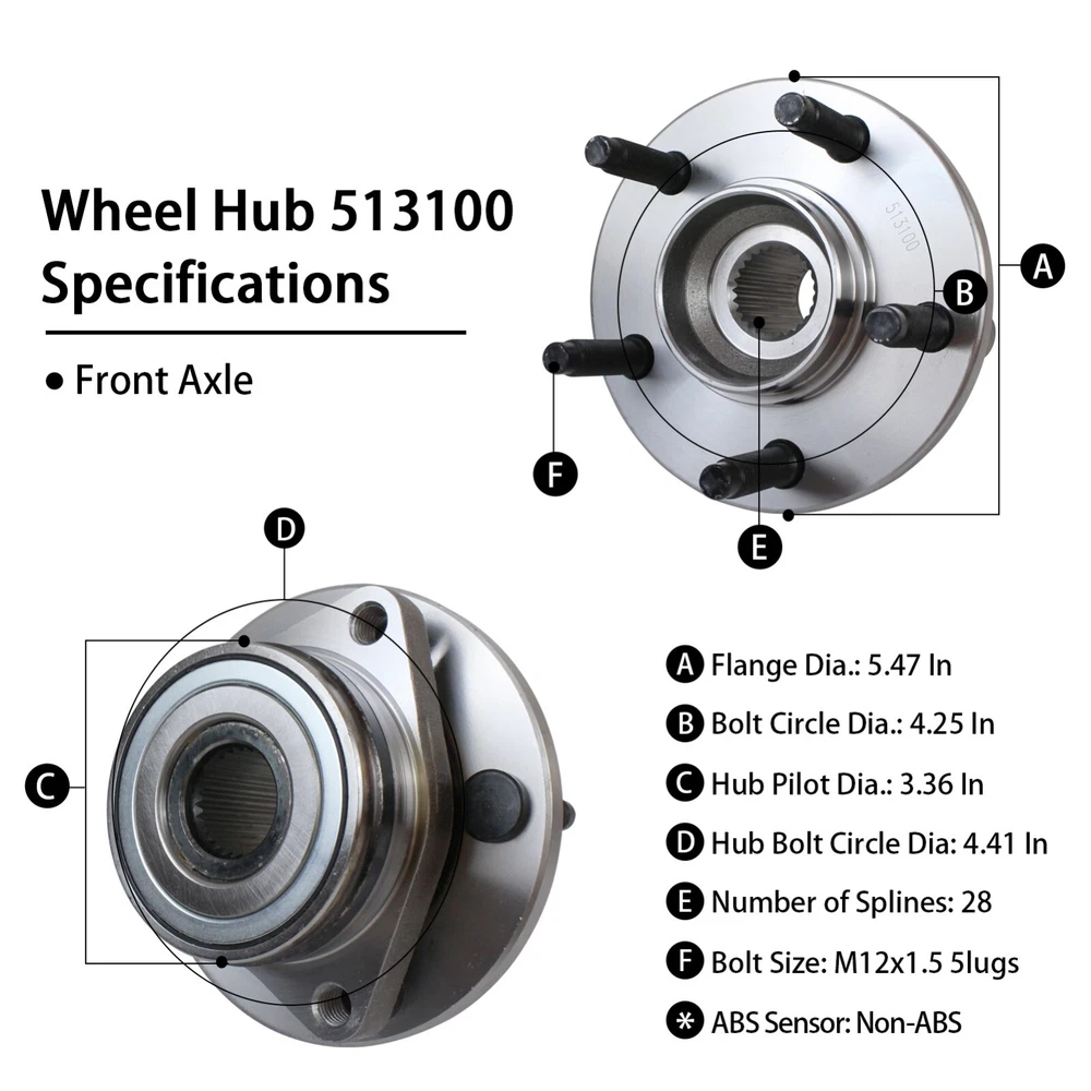 Store Categories Store Categories Wheel Hub Bearings Wheel Bearing 1 Wheel Bearing 2 Water Pumps Brake Calipers Other Front Wheel Bearing and Hub Assembly - 513100 Product Description Front Wheel Hub and Bearing Assembly Fits Driver or Passenger Sid e Kit Includes: 1x Front Wheel Hub and Bearing Assembly - 513100 Hub Specifications Position: Front Left or Right Lugs: 5 Bolt Compatible With The Following Mo d els MAKE MODEL YEAR RANGE SPECIFIC DETAILS FORD TAURUS 1996 - 2007 All Models MERCURY SABLE 1 99 6 - 2005 All Models LINCOLN CONTINENTAL 1995 - 2002 All Models Not what you were looking for? Search our Store Page to find the right part! Payment Policy Shipping Policy Returns Policy Payment Policy Vis a,and MasterCard are the accepted forms of payment. Please use the eBay checkout system when paying for your order. Immediate payment is required for all orders. Shipping Policy All orders placed before 2pm (Eastern Standard) will be shipped the same business day. Orders made after 2pm (Eastern Standard) will be shipped the following business day. All orders in the continental 48 States will be shipped FREE of charge via FedEx or USPS at our discretion . Orders outside the continental 48 States (Alaska, Hawaii, Puerto Rico, US territories, or International) will be required to pay a surcharge for shipping. Returns Policy Customer must contact us within 60 days of receiving shipment for approval of any return or exchange. Copyright © 2023 Dianxiaomi On Jul 1, 2024 at 18:43:59 PDT, seller added the following information: