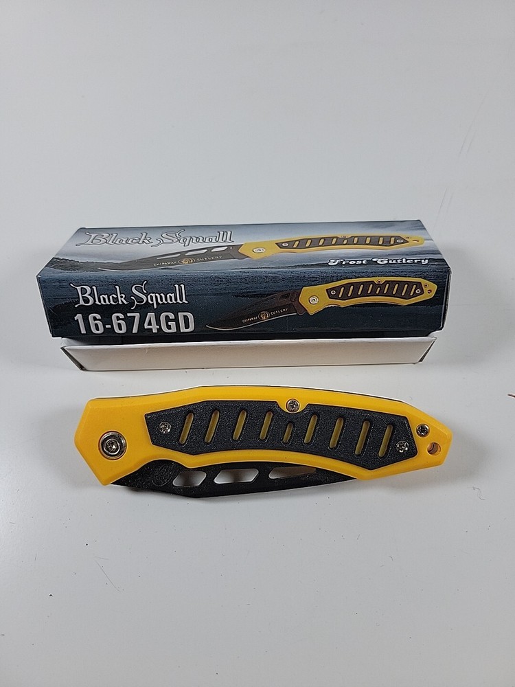 Frost Cutlery Black Squall Yellow Folding Pocket Knife Brand New