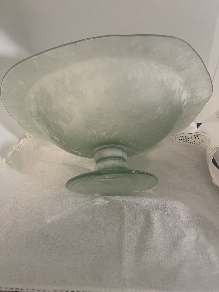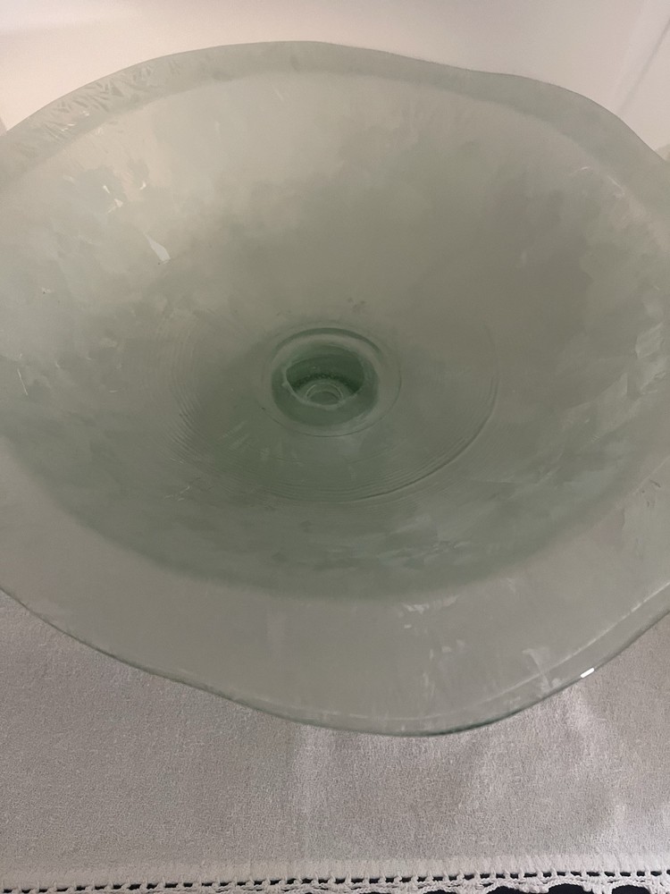 Embrace the simplicity and elegance of this modern centerpiece bowl, crafted from high-quality glass with a frosted finish that captures and reflects light beautifully. The piece is an unmarked original, designed to complement any room with its versatile style, making it an ideal choice for those looking to add a touch of sophistication to their living space. The bowl's art glass production style ensures that each piece is unique, with its own patterns and characteristics, providing a one-of-a-kind element to your decor. Whether used for special occasions or as a permanent part of your home's aesthetic, this centerpiece bowl will serve as a stylish and timeless accessory.