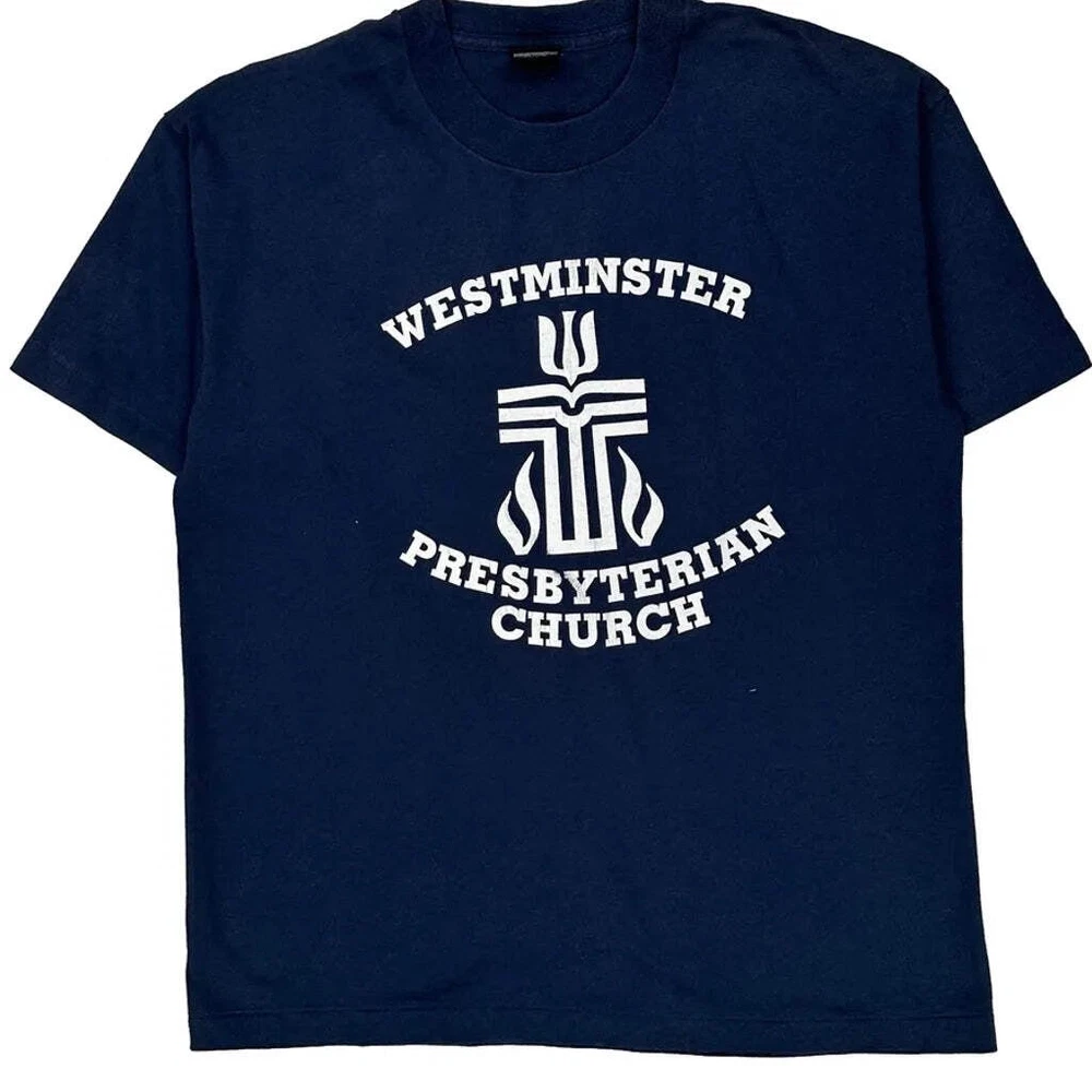 Fruit Of The Loom Single Stitch T-Shirt - Large Blue Cotton Blend Description: Fruit Of The Loom T-Shirt, fits Large.Westminster Presbyterian Church Print Gender: Mens Condition: Very Good Brand: Fruit Of The Loom Product Type: T-Shirt Era: 1990S Colour: Blue Fabric: Cotton BlendFit & Length: Neckline Type: Crew Neck Fit: Regular Fit Length: Regular Sleeve Type: Straight Sleeve Sleeve Length: Short SleeveExtra Attributes: Pattern: Plain Style: Casual Occasion: Casual Made In: Usa Fruit Of The Loom Single Stitch T-Shirt - Large Blue Cotton Blend Description: Fruit Of The Loom T-Shirt, fits Large. Westminster Presbyterian Church Print Gender: Mens Condition: Very Good Brand: Fruit Of The Loom Product Type: T-Shirt Era: 1990S Colour: Blue Fabric: Cotton Blend Fit & Length: Neckline Type: Crew Neck Fit: Regular Fit Length: Regular Sleeve Type: Straight Sleeve Sleeve Length: Short Sleeve Extra Attributes: Pattern: Plain Style: Casual Occasion: Casual Made In: Usa × × × × × × × × × Buy now and save! Shipping info Click the Shipping & Payments tab above the listing description for more info Click the Shipping & Payments tab above the listing description for more info! Additional delivery notes PICK UP OPTION Sorry, our items are NOT available for pick-up. PAYMENT Immediate payment is required upon selecting "Buy It Now" or upon checking out through the cart. We accept payment via U.S. PayPal accounts and all Major Credit Cards, Debit Cards & Google Pay. We are legally required to collect sales tax in those states and localities where we maintain a physical presence (nexus). The applicable amount of sales tax charged to an order will be calculated based on the shipment destination's state and local sales tax laws. Thank you for shopping with us on eBay! Additional Information No additional information at this time Ask seller a question You might also like Polo By Ralph Lauren Chino Shorts - 32W 10L Khaki Cotton 501 Levis Jeans - 30W 29L Gray Cotton 501 Levis Jeans - 32W 31L Blue Cotton Dickies Jacket - XL Navy Polyurethane Contact To contact our Customer Service Team, simply click the button here and our Customer Service team will be happy to assist. Ask seller a question © Thrifted.com Shipping & Payments Click the Shipping & Payments tab above the listing description for more info Payment Accepted Payment Methods Immediate payment is required upon selecting "Buy It Now" or upon checking out through the cart. We accept payment via U.S. PayPal accounts and all Major Credit Cards, Debit Cards & Google Pay. We are legally required to collect sales tax in those states and localities where we maintain a physical presence (nexus). The applicable amount of sales tax charged to an order will be calculated based on the shipment destination's state and local sales tax laws. Thank you for shopping with us on eBay! Returns Returns are accepted Items must be returned within 30 days of the auction ending Buyer will pay for return shipping. eBay integration by