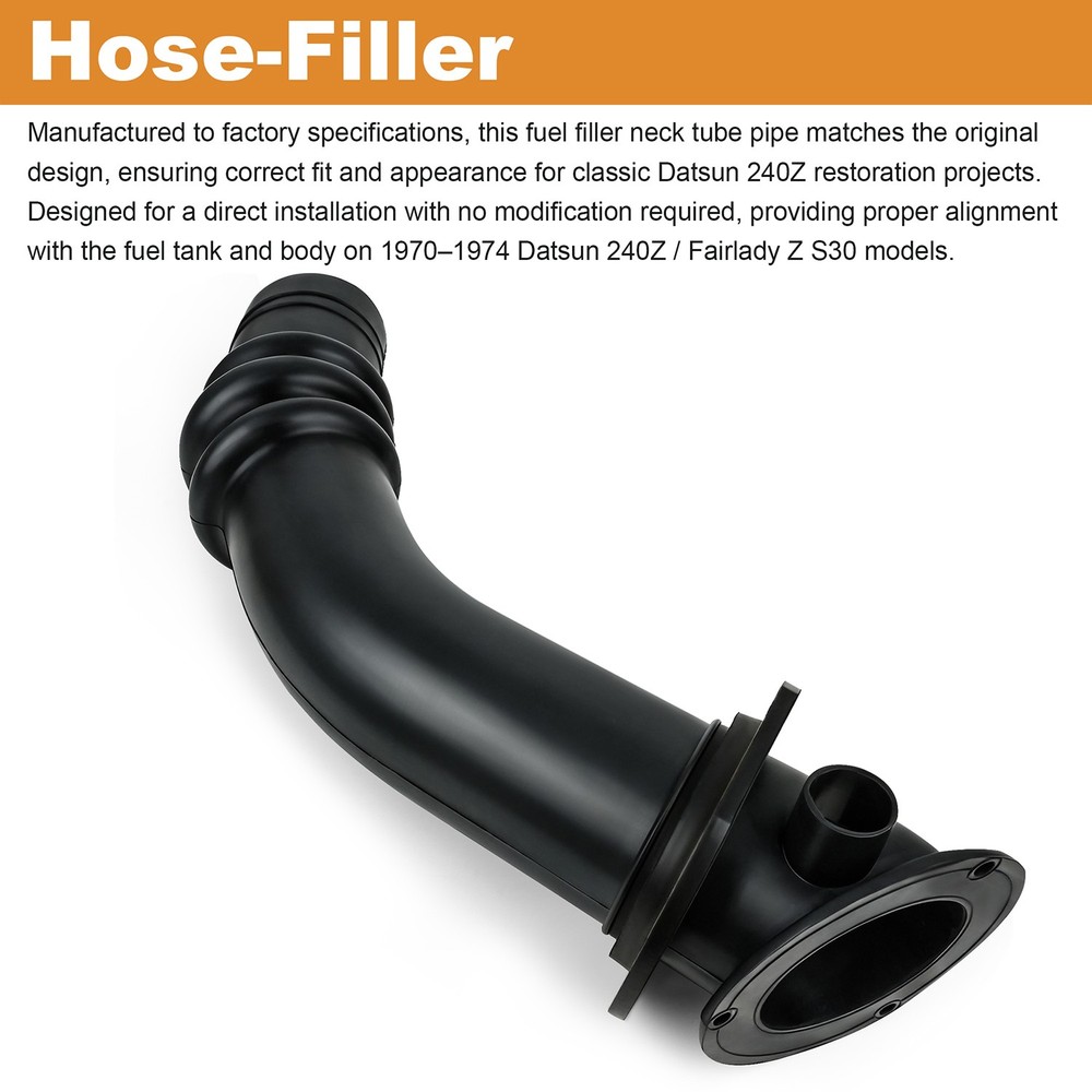 Fuel Filler Neck Tube Pipe 17208-N3050 for 1970–1974 Datsun 240Z /Fairlady Z S30 Item specifics Condition: New Brand: Aftermarket Part Type: Hose-Filler Fitment Type: Direct Replacement OE/OEM Part Number: 17208-N3050 Manufacturer Part Number: 17208-N3050 Color: Black Material: Rubber Manufactured to factory specifications, this fuel filler neck tube pipe matches the original design, ensuring correct fit and appearance for classic Datsun 240Z restoration projects. Designed for a direct installation with no modification required, providing proper alignment with the fuel tank and body on 1970–1974 Datsun 240Z / Fairlady Z S30 models. Built from high-quality Rubber Materials to resist corrosion, fuel exposure, and long-term wear, helping maintain safe and reliable fuel filling performance. Ideal for OEM restorations and period-correct rebuilds, replacing worn, rusted, or damaged original filler neck pipes while preserving factory-style functionality. Note:This neck DOES NOT FIT 1974.5 260Z or 1975-1978 280Z Due to Differences In Fuel Filler Neck Design Fitment: 1970-1974 Datsun 240Z / Fairlady Z S30 Payment Delivery details Terms of sales About us Contact us Payment Paypal Preferred. Delivery details · USPS Standard Shipping. · Order processing: within 1 business day upon payment(excluding holidays and weekends). · Shipped from: US Warehouse Terms of sales · Please read the item description and check the pictures carefully before ordering. · Return or refund is available only if item DOA or there's error in item description causing the item not fitting the need. In such cases, seller pays for all related shipping cost. · Returns are also acceptable if buyer purchased this by mistake and item is still in good condition for reselling. Buyer is responsible for all related shipping cost. · Buyer need to file an application for return within 60 days after receiving the item. Items returned must be still in good condition as they were received. Return notes: 1.Please contact us for return and we will proceed with following instructions. 2.Returning the package with a tracking method, like USPS. The RMA#(Return Merchant Authorization Number=Your ebay ID) must be clearly written on the return package, otherwise the package will be refused. 3.Email us the return tracking number. 4.All returns will be inspected prior to a credit being issued. About us We are specialized in auto parts accessories for many years and we also sell items on ebay for several years. If you have questions about our items and services, please kindly feel free to contact us, we will try our best to satisfy you within 24 business hours. Contact us Please be free to email us by clicking the "Asking a question" link, once there is any pre-sale or after-sale inquiry for our items. We will email back in 24 working hours. If you'd like to put a neutral or negative feedback, or open the ebay or paypal case, please email us so we could try our best to resolve the issue.
