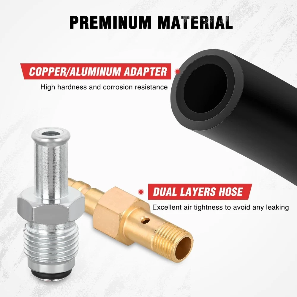 Fuel Injection Pressure Tester Kit, 0-140 PSI Fuel Pressure Gauge Master Automotive Test Tool for Most Car Truck Motorcycle SUV ATV RV Widely Use: master fuel pressure tester kit with complete set of adapters, hoses, and fittings that almost cover all common injection systems of petrol engines. Note: not for diesel high pressure injection pump or direct-injection engine Long lasting quality: Adapters in fuel pressure tester constructed from high-quality brass and aluminum resist rust and corrosion, rugged and long-lasting Accurate Reading: With a dual-color-coded scale for readings range between 0-140psi (0-10bar), built-in release valve for quick operation. Easy to read and provide you more precise and accurate fuel pressure gauge readings Function: This comprehensive fuel pressure tester is adept at swiftly and efficiently assessing fuel injection pump pressure. It can diagnose potential leaks and pressure issues accurately and timeously Convenient Storage: fuel injection pressure tester is contained in a carrying case, design for quick storage and easy transportation. A must-have efficient tool set for the task of vehicles maintenance Fuel Pressure Testers, 48PCS