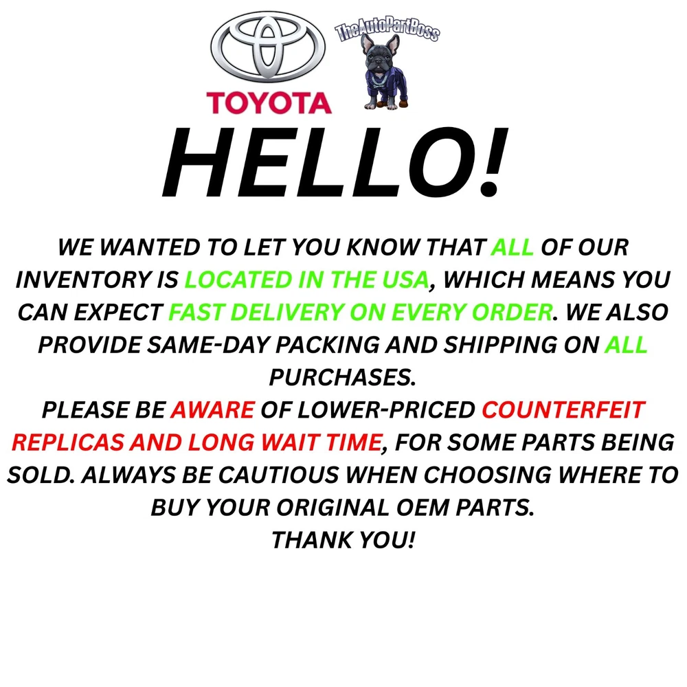 Message Us BRAND NEW TOYOTA GENUINE ORDERS ARE SHIPPED SAME DAY IF PLACED BEFORE 5 PM EST If Express or Expedited shipping is not available, please contact us. GENUINE TOYOTA PART # 77390-33011 Valve Assembly, Fuel Tank Overfill Check Key Features: Quality and Fit OEM Standards 100% Genuine Part Ready to Order? Don't miss out on this high-quality, genuine part. Order now and enjoy fast shipping! If you are not sure this will fit your vehicle, please message us your VIN before ordering to verify compatibility. FOR: Year Make Model Body & Trim Engine & Transmission 2004 Toyota Avalon XL, XLS 3.0L V6 - Gas 2003 Toyota Avalon XL, XLS 3.0L V6 - Gas 2003 Toyota Camry LE, SE, XLE 2.4L L4 - Gas, 3.0L V6 - Gas 2003 Toyota Solara SE, SLE 2.4L L4 - Gas, 3.0L V6 - Gas 2002 Toyota Avalon XL, XLS 3.0L V6 - Gas 2002 Toyota Camry LE, SE, XLE 2.4L L4 - Gas, 3.0L V6 - Gas 2002 Toyota Solara SE, SLE 2.4L L4 - Gas, 3.0L V6 - Gas 2001 Toyota Avalon XL, XLS 3.0L V6 - Gas 2001 Toyota Solara SE, SLE 2.2L L4 - Gas, 3.0L V6 - Gas 2000 Toyota Avalon XL, XLS 3.0L V6 - Gas 2000 Toyota Solara SE, SLE 2.2L L4 - Gas, 3.0L V6 - Gas 1999 Toyota Solara SE, SLE 2.2L L4 - Gas, 3.0L V6 - Gas