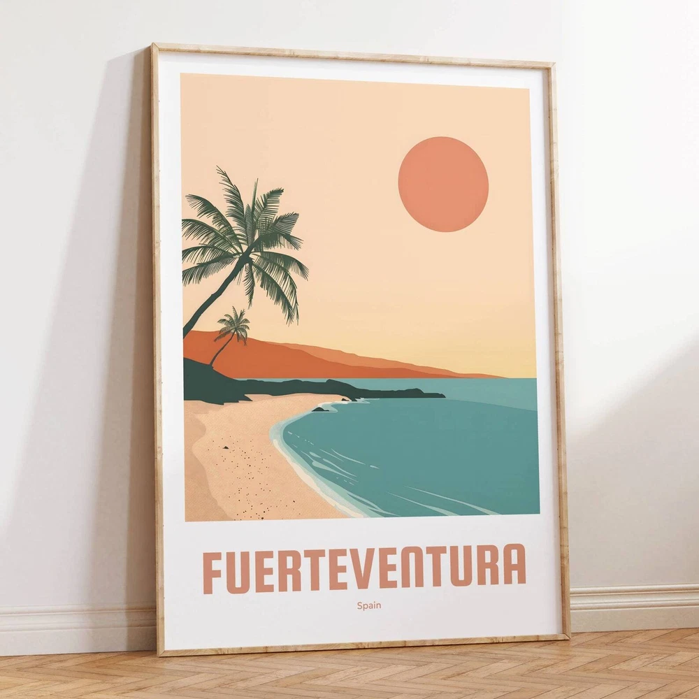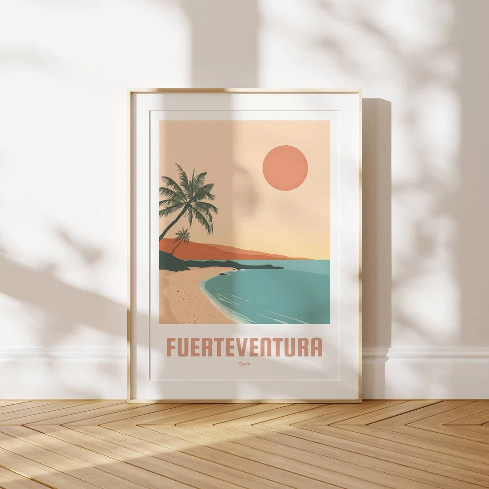 Fuerteventura Poster Vintage Travel Poster Spain Gift Fuerteventura Wall Art Vacation Art Spain Print Material: Premium luster photo paper Print type: Inkjet printing One side printed + The finish provides the highest possible resolution and color saturation + Lasts up to 200 years in color and 400 years in black-and-white + Printed on high-quality resin-coated photo base paper medium + Posters can be hung with double-sided tape, tacks, or framed + Hand washing with a gentle cry cloth is recommended for extended durability I will hand select the best choice of paper for your chosen design to ensure top quality results for a beautiful, bright and luxurious print. All prints are sealed in cellophane slips for protection during transportation, and are shipped in a protective cardboard envelope.
