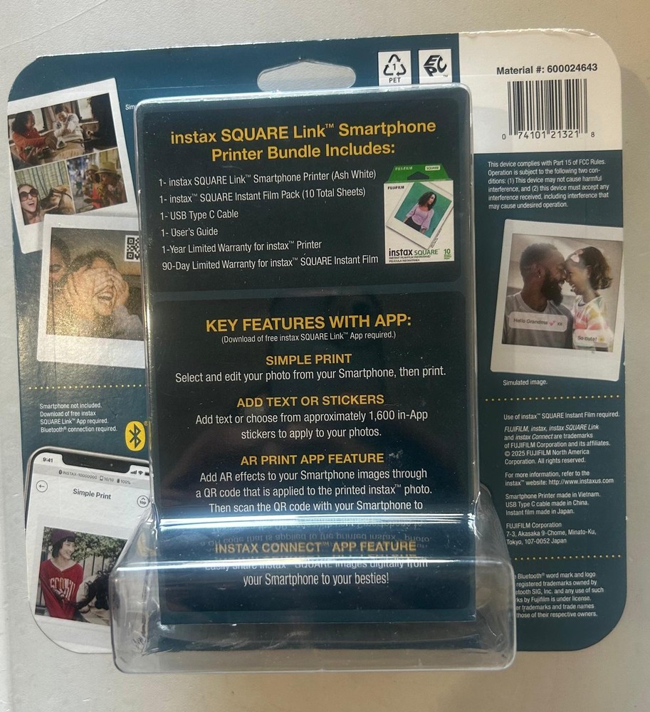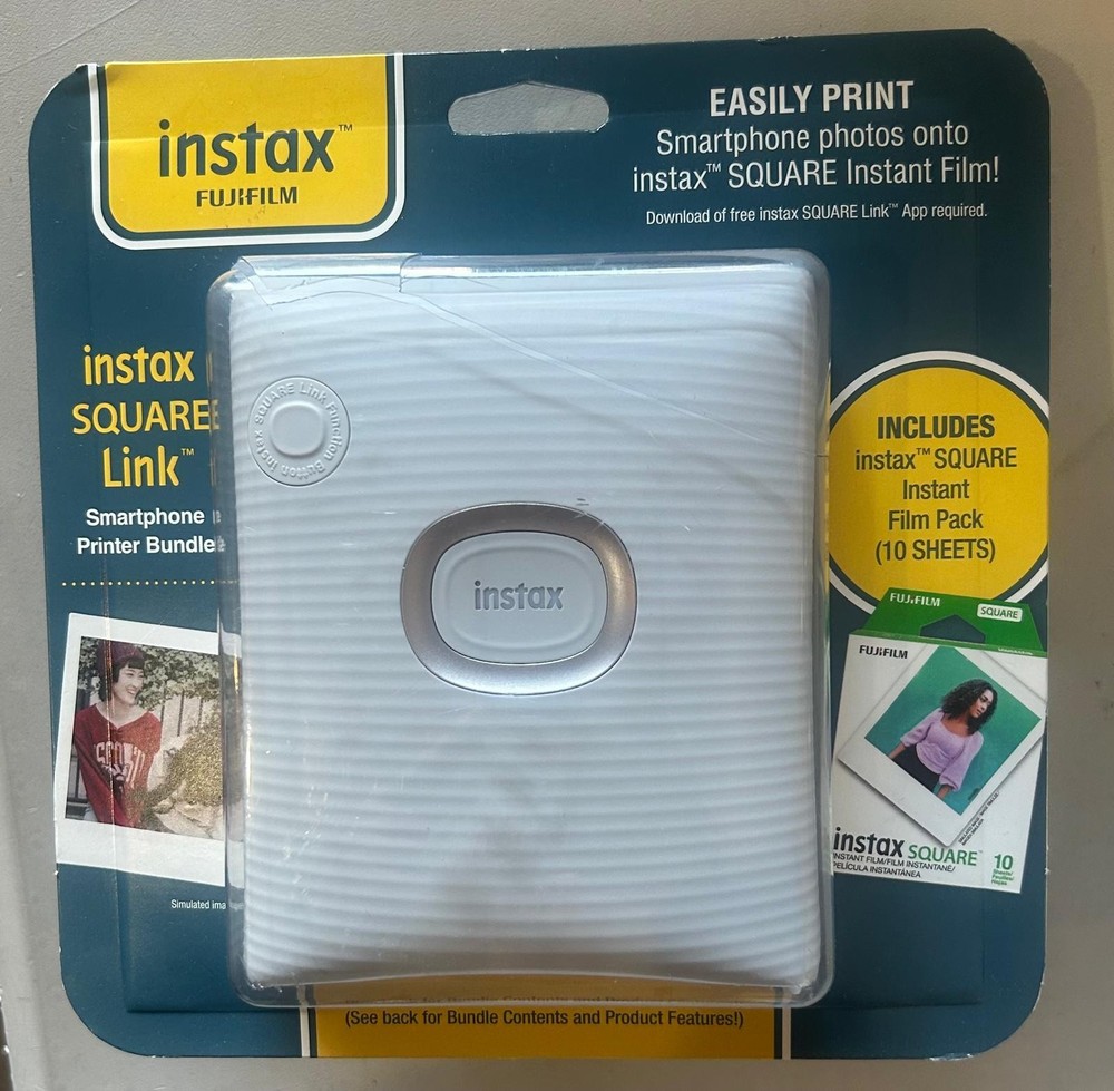 The Fujifilm Instax SQUARE Link Smartphone Printer Bundle with SQUARE Instant Film is a portable mobile printer that uses dye sublimation technology to produce high-quality color prints. It features USB Type-C connectivity and is part of the Fujifilm Instax Share product line. The printer comes with a 1-year manufacturer warranty and is designed to work with instax SQUARE Instant Film, offering easy and convenient printing options on the go. Perfect for those who need to print photos and documents instantly from their smartphones.