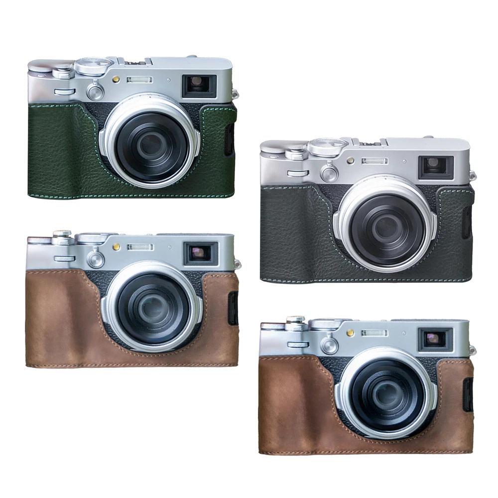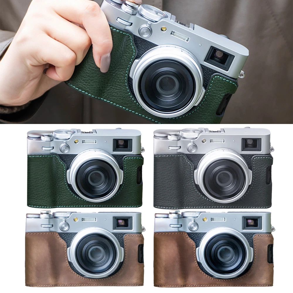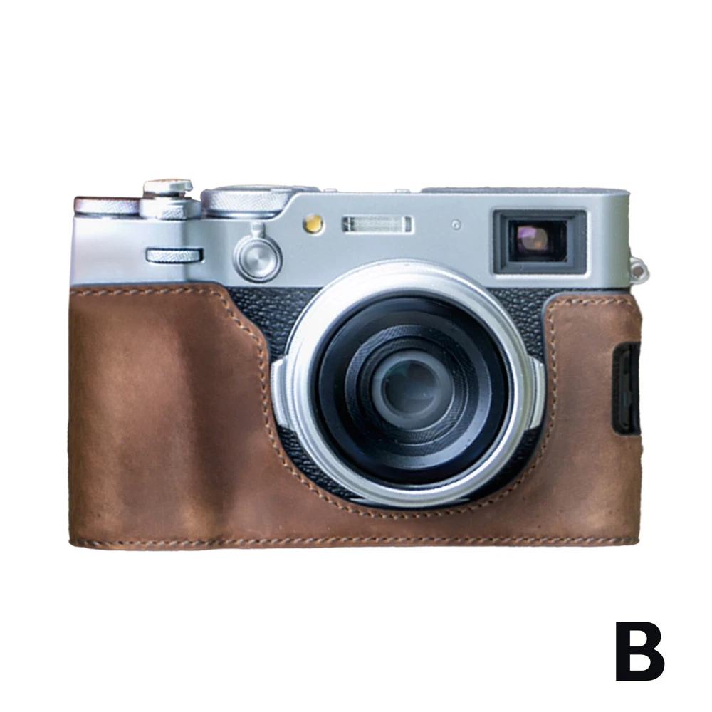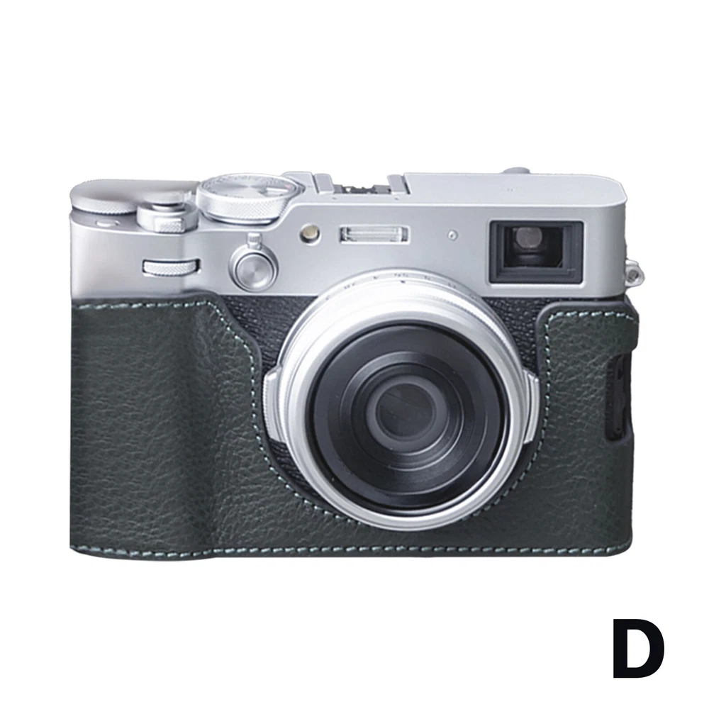 Leather case kit for FUJIFILM X100VI 4558 is designed to protect the camera, lens, and enhance the retro feel, and quality of the camera. The kit includes a Leather Half Case, a flip case cover, and a shoulder strap. Both the external of the leather half case and flip case cover are made of breathable and wear-resistant first layer cowhide and repeat the silhouette of the camera to create an eye-catching style; the internal is made of Soft microfiber to provide All-around protection for the camera and lens. It perfectly fits the camera body and allows access to camera interfaces and buttons: battery compartment, MSC mode, card slot, etc.; The case is built-in aircraft-grade aluminum alloy for support to protect the camera from impacts. the bottom 1/4"-20 thread allows the case to be mounted onto the tripod directly without removing the case; The flip case cover features magnetic clasp and Velcro for more convenient and safety; It comes with a PU shoulder strap, easy to carry and hang camera. Designer: Kong, Yette White Note:The case may have some color differences because of using genuine leather. Compatibility FUJIFILM X100VI In the Box: 1 x Leather Half Case Specifications Product Dimensions: 135 x 75 x 95 mm / 53.1 x 2.0 x 37.4in Package Dimensions: 165 x 158 x25mm / 65.0 x 62.2 x 9.8in Product Weight: 262±5g / 9.2±0.2oz Package Weight: 365±5g / 12.9±0.2oz Material(s): Leather, PU, Aluminum Alloy