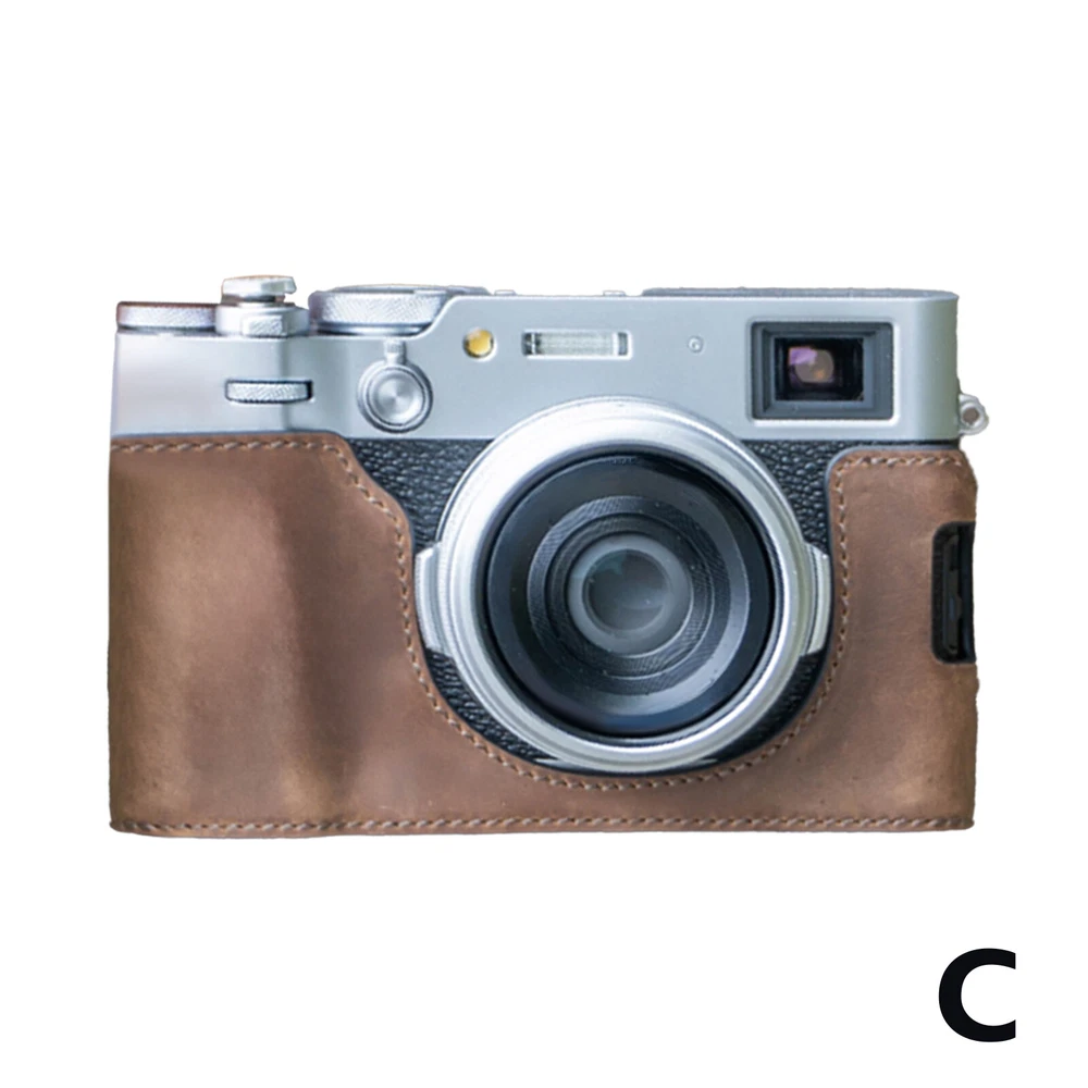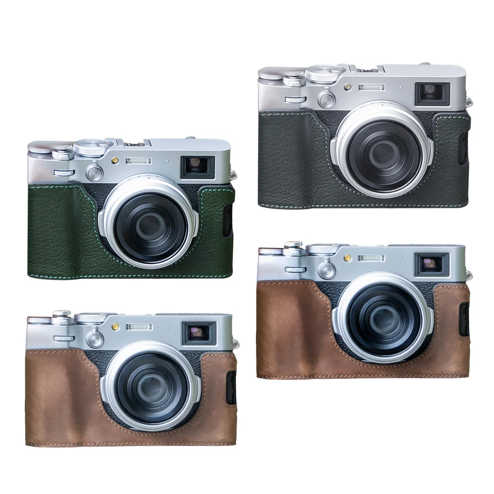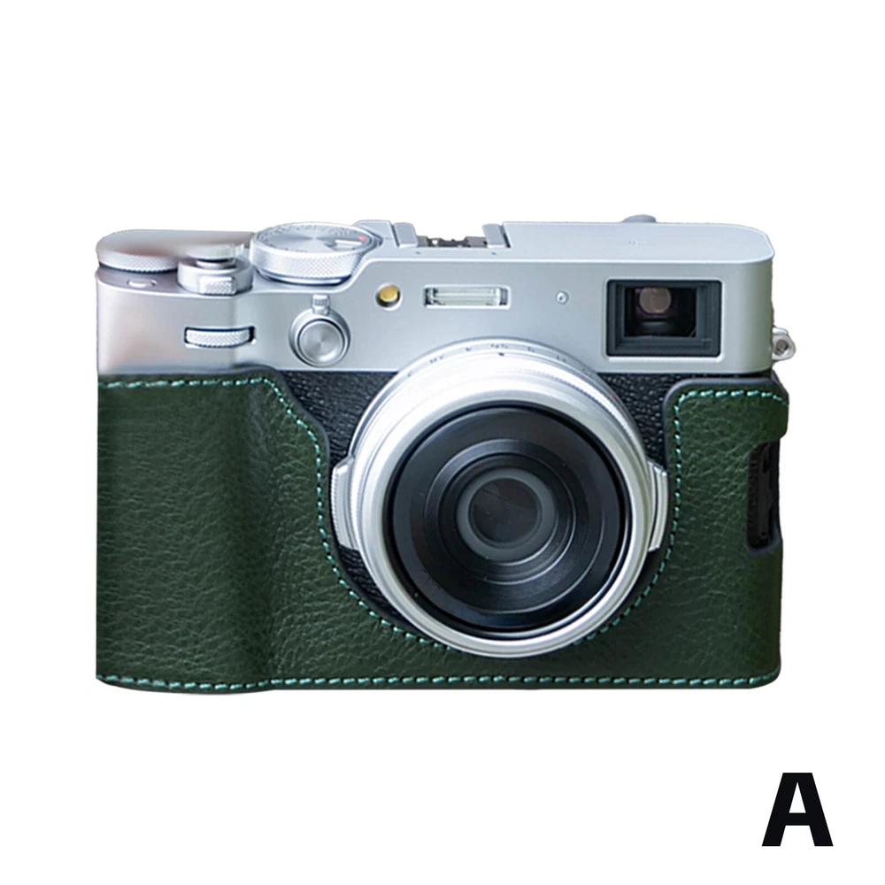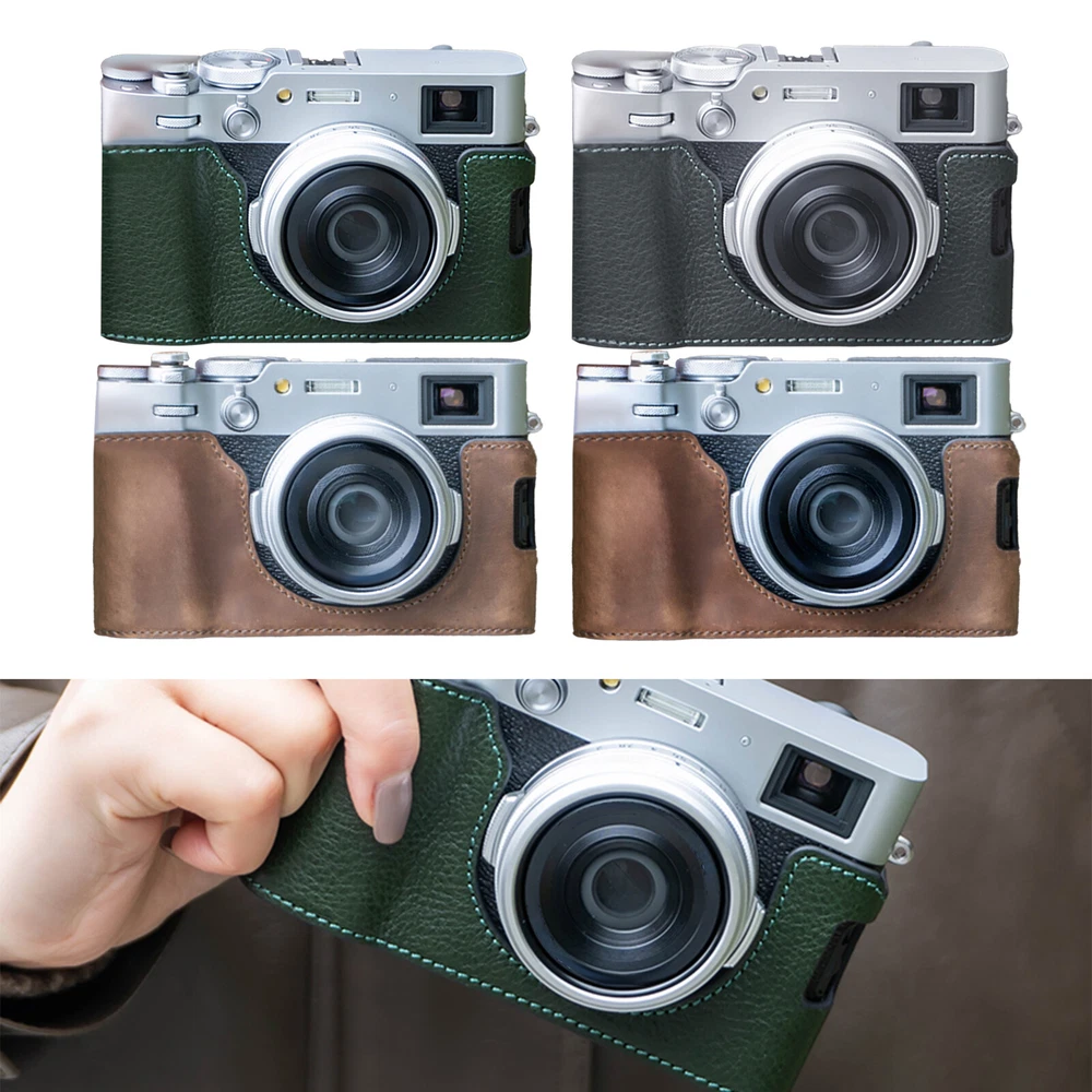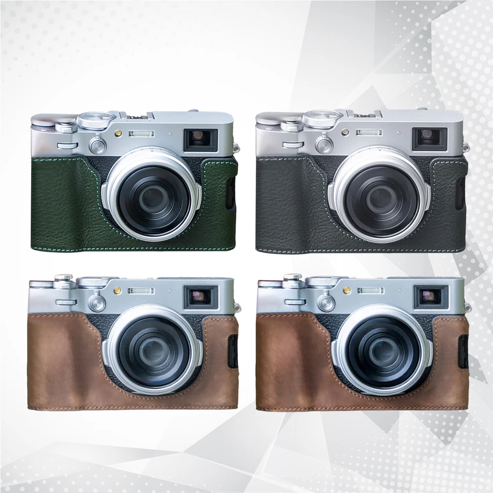 Leather case kit for FUJIFILM X100VI 4558 is designed to protect the camera, lens, and enhance the retro feel, and quality of the camera. The kit includes a Leather Half Case, a flip case cover, and a shoulder strap. Both the external of the leather half case and flip case cover are made of breathable and wear-resistant first layer cowhide and repeat the silhouette of the camera to create an eye-catching style; the internal is made of Soft microfiber to provide All-around protection for the camera and lens. It perfectly fits the camera body and allows access to camera interfaces and buttons: battery compartment, MSC mode, card slot, etc.; The case is built-in aircraft-grade aluminum alloy for support to protect the camera from impacts. the bottom 1/4"-20 thread allows the case to be mounted onto the tripod directly without removing the case; The flip case cover features magnetic clasp and Velcro for more convenient and safety; It comes with a PU shoulder strap, easy to carry and hang camera. Designer: Kong, Yette White Note:The case may have some color differences because of using genuine leather. Compatibility FUJIFILM X100VI In the Box: 1 x Leather Half Case Specifications Product Dimensions: 135 x 75 x 95 mm / 53.1 x 2.0 x 37.4in Package Dimensions: 165 x 158 x25mm / 65.0 x 62.2 x 9.8in Product Weight: 262±5g / 9.2±0.2oz Package Weight: 365±5g / 12.9±0.2oz Material(s): Leather, PU, Aluminum Alloy