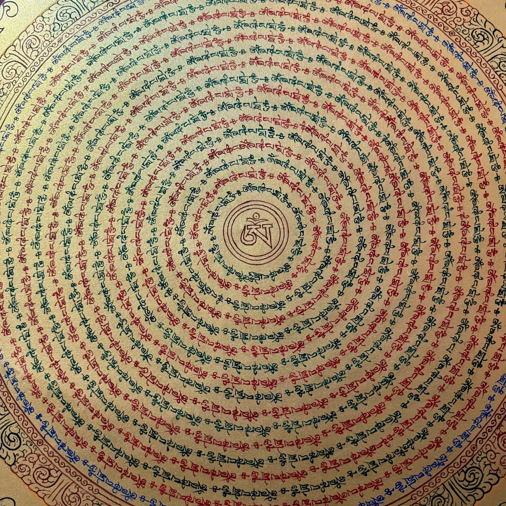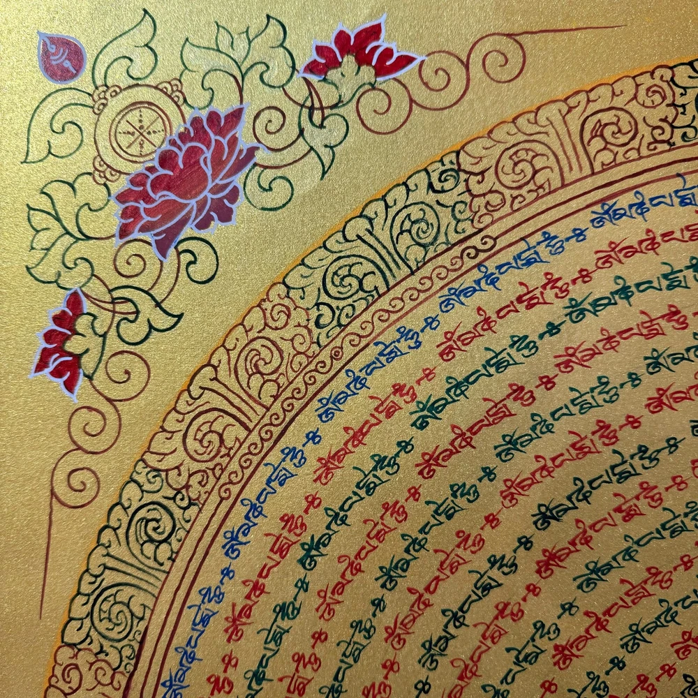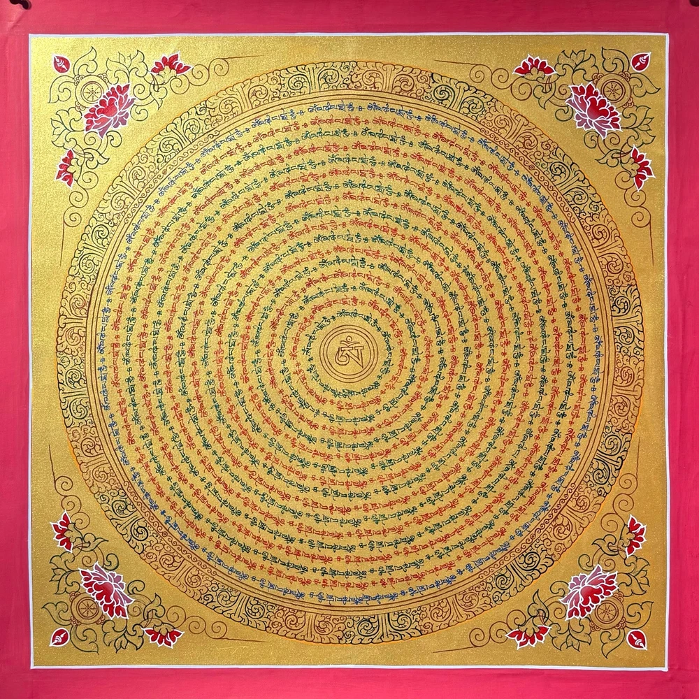 Full Gold Om Mantra Mandala Thangka Painting on Cotton Canvas