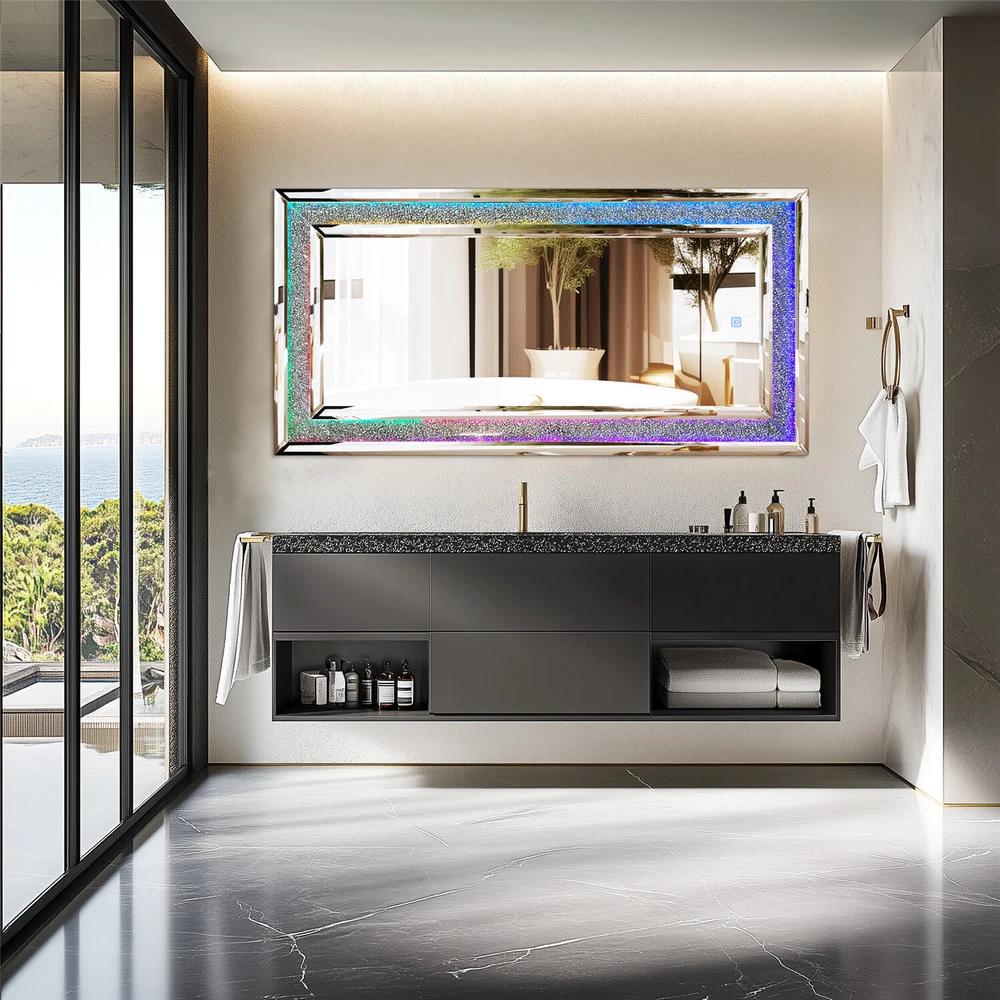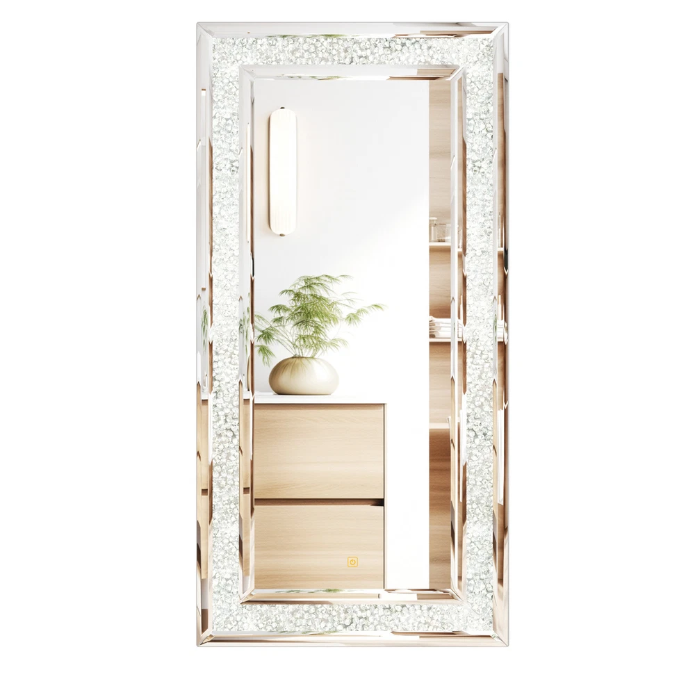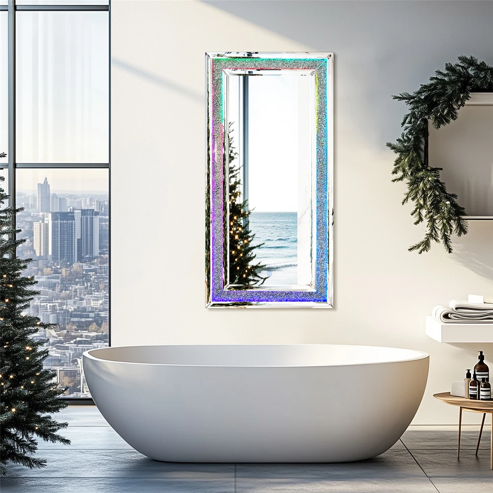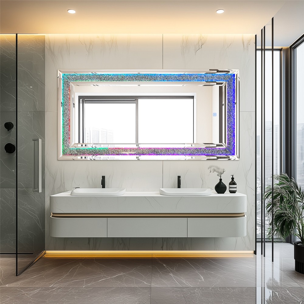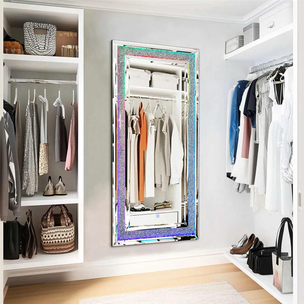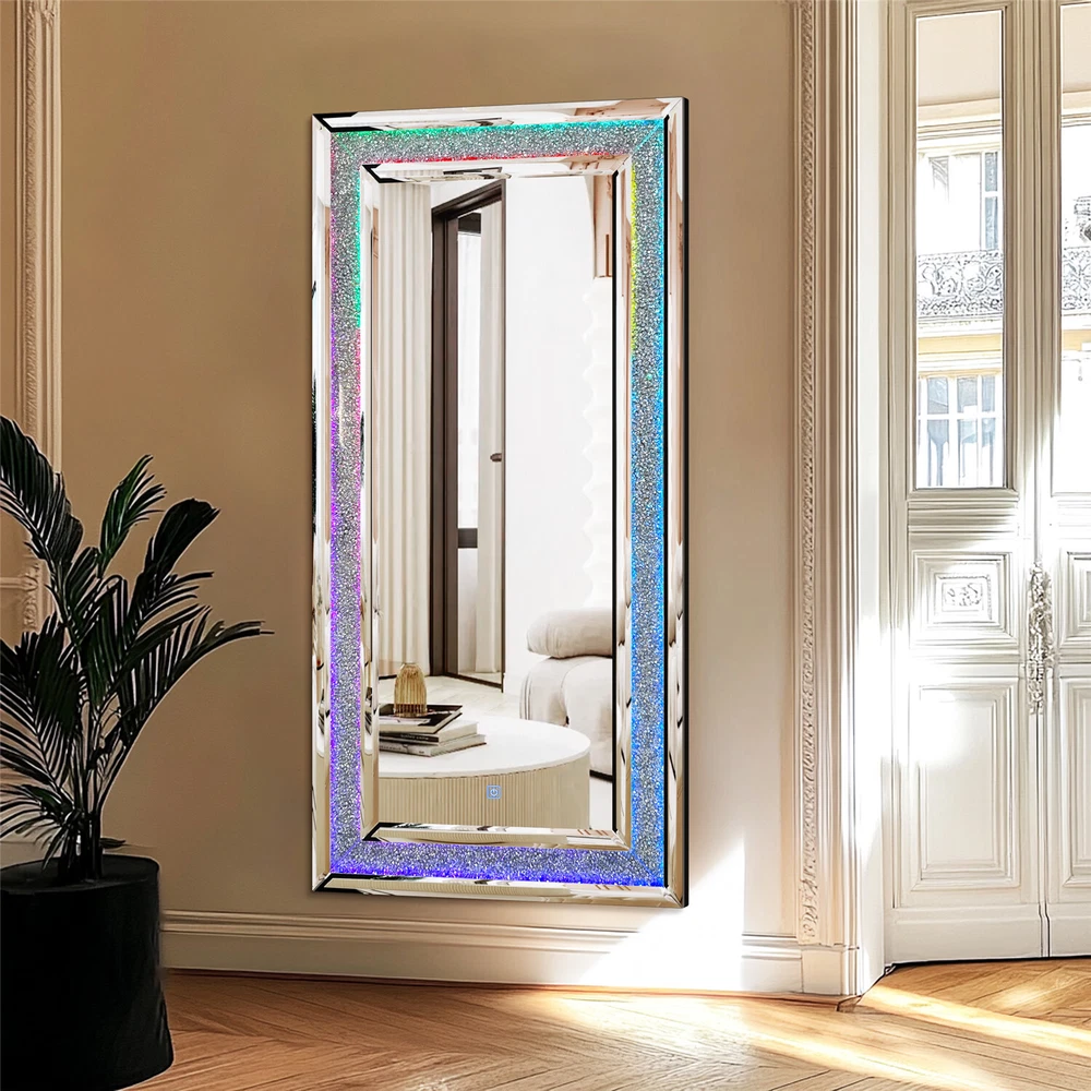 Full-Length RGB LED Lighted Mirror - Elevate your space with this stunning wall-hanging mirror featuring crystal crushed diamond inlay and customizable RGB lighting in 7 vibrant colors, perfect for living rooms, bedrooms, or cloakrooms Modern Crush Diamond Design with Dynamic Lighting - This rectangular full-length mirror combines a sleek crushed diamond edge with dynamic RGB lights, creating a glamorous and versatile decor piece for any room, including fireplace areas Full Length RGB LED Mirror with Crush Diamond Inlay & 7 Color Lights Living Room US SELLER, FAST ARRIVAL! With over a decade of industry expertise and a global presence in more than 130 countries, we are a trusted manufacturer dedicated to delivering high-quality products tailored to your needs. We specialize in bulk orders, offering competitive pricing, customized solutions, and seamless service to meet your business goals. Backed by a 5-year warranty and 24/7 customer support, your satisfaction is our top priority. Contact us today to explore wholesale opportunities and partner with a reliable leader in the industry! Features: Glamorous RGB Lighting with Crystal Diamonds - Featuring RGB lighting technology and crystal crushed diamonds inlay, this mirror exudes a sparkling bling effect, offering a dynamic and customizable lighting experience with 7 different colors to match your mood and preferences Premium Silver Glass with Beveled Edging - Crafted from high-quality silver glass, the mirror provides a clear, high-definition reflection without distortion, while the beveled inner edging adds depth and a touch of sophistication Durable Construction with Easy Installation - Engineered with a solid MDF board backing panel for enhanced strength and durability, this mirror comes with four pre-installed D-rings for quick and easy hanging, suitable for both horizontal and vertical placement Smart Touch Control for Convenience - Equipped with a smart touch screen, simply tap to turn the RGB lights on or off and cycle through various colors, offering a seamless and modern user experience Versatile and Stylish Home Decor - Perfect for any space, this mirror can be hung above a mantle, cabinet, next to artwork, or on a door, and its built-in standard plug ensures easy relocation and use in any room Specifications: Type: Wall Mirror Style: Contemporary Features: Decorative, RGB Lights Mounting: Wall-Mounted Material: 60% MDF Board + 40% Glass Product Color: Silver Input Voltage: AC110-260V Output: DC24V Current: 3A Power: 72W Lighting Color: RGB, Solid White, Red, Purple, Blue, Cyan, Green, Yellow Net Weight: 16.5kg/ 36.38 lbs Product Dimension: L * H 120x60cm/ 47.24x23.62 inch Thickness: 2.5cm/ 0.98 inch Package Includes: 1 x Wall Diamond Mirror with RGB 1 x Instruction Manual Payment Terms of Sales Shipping Details Contact us About us Payment 1.We accept payment by credit card, paypal, Payoneer. 2.Upon on payment, please confirm your shipping address. Terms of Sales 1. We ship out all of our products brand new. 2. All products have passed quality inspection before shipment. Shipping Details 1.We are located in NJ, CA ,all the items will be shipped via USPS, UPS Ground, Fedex Ground with tracking number provided. 2. We cannot ship to Alaska, Hawaii & Puerto Rico Addresses. Contact us 1. If you are satisfied with the transaction pls remember to leave us a positive feedback 5-star will be much appreciated. 2. Normally your email would get replied within 24 hours (Business Hours) and your issue will be followed up carefully till we 've reached an agreement. 3. Please contact us first if you have any question or suggestion before opening a case or dispute, leaving any neutral or negative feedback. About us We are professional supplier of Home, garden and household products, such as plant stand, bahroom mirrors, TV Mount, Pet Bed, Pet Supplies, Coat racks, Home Furniture etc. Hope you can buy your favorite products in our store. We are manufacturer of bathroom mirrors for decades, our mirrors well received from over 130 countries. The first class factory and skilled technique, pls feel free to contact us if you want drop ship or large procurement. Brand ARTLOGE Shape Rectangle Item Height 23.62 in Item Length 47.24 in Item Width 47.24 in Features Sparkly, Illuminated Type Full-length Mirror Frame Material Glass Color Silver Frame Color Silver Style Modern Mounting Wall Mounted Room Bathroom, Bedroom, Living Room Theme N/A Era N/A Frame Finish GLASS Department Adults MPN GD599ELS297