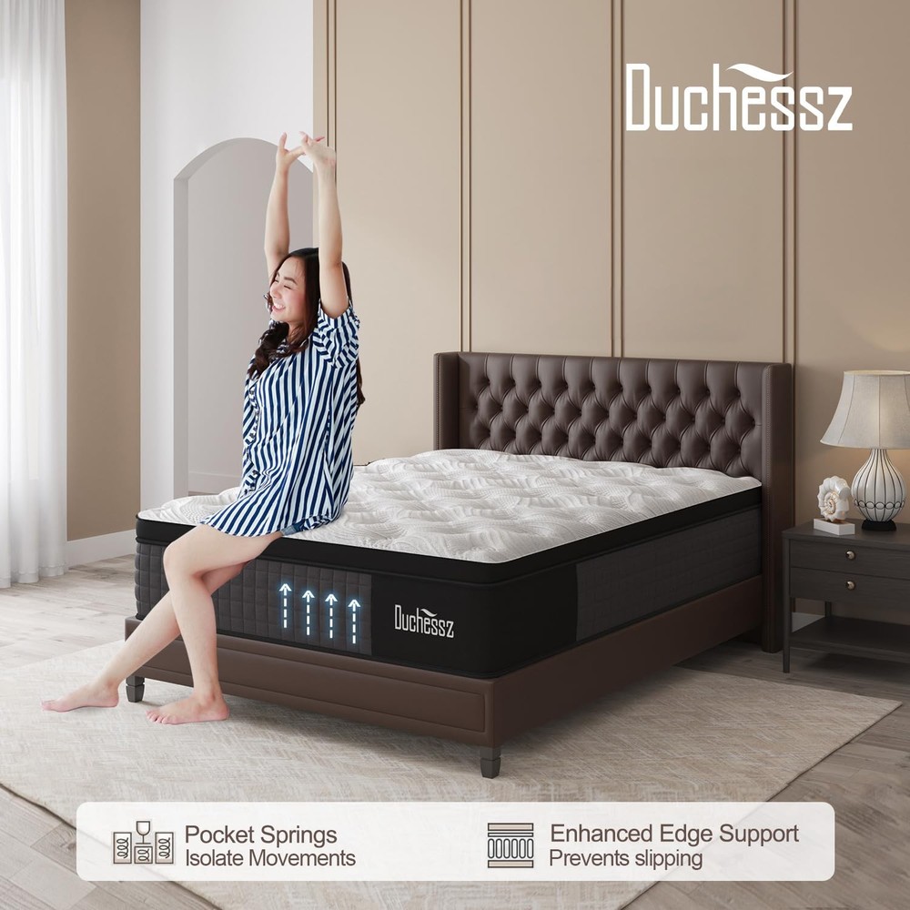 Experience the perfect blend of comfort and support with the Hybrid Mattress, featuring cooling gel memory foam and pocketed springs for a rejuvenating sleep. Specifications: Mattress Top: Euro Top Mattress Feel: Medium (Firmness Level: 6.5/10) Height Options: 10/12/14 inch Mattress Construction: Hybrid (Comfort Foam, Memory Foam, Pocketed Coil) Cover Material: Polyester Coil Type: Pocketed Coil Weaving Method: Knitting Features: Breathable Design: Luxurious knit fabric enhances air circulation for a cool sleeping surface. Pressure Relief: Combination of pocketed springs and memory foam promotes spinal alignment and alleviates discomfort. Edge Support: Reinforced springs provide stability and prevent rolling off the edges. Motion Isolation: Individual pocketed coils minimize motion transfer for undisturbed sleep. Temperature Regulation: 100% natural and cooling gel-infuséd memory foam maintain a comfortable temperature. Transform your sleep experience with the Hybrid Mattress, expertly crafted to provide the ultimate in comfort and support. With its luxurious Euro top and a unique combination of natural latex, cooling gel-infuséd memory foam and pocketed springs, this mattress ensures you wake up refreshed and ready to face the day. The breathable knit fabric cover enhances airflow, while the cooling gel-infuséd memory foam regulates body temperature, creating a cozy sleep environment. Enjoy quiet, undisturbed nights with minimized motion transfer and reinforced edge support. 【Supportive for Various Sleeping Positions】: This medium firm full mattress is designed to offer unparalleled support for individuals of all sizes with its unique combination of high-density memory foam and sturdy pocket springs. The hybrid mattress easily adjusts to different body shapes and sleeping styles, ensuring a comfortable night's sleep for everyone. 【Elevate Your Sleep Experience】: Upgrade your sleep sanctuary with our CertiPUR US and Oeko-Tex Standard 102 certified hybrid full mattress for unmatched safety and durability. All foam materials have undergone rigorous testing to ensure they are free of harmful substances and fiberglass, making it a secure choice for your home. 【Silent Sleep, Motion Isolated】: Enjoy a peaceful night's sleep without disturbances with our medium firm full hybrid mattress featuring individual pocket springs that minimize noise and motion transfer, making it perfect for couples sharing a bed. Rest assured that you will remain undisturbed throughout the night for a truly serene sleep experience. 【Advanced Edge Support for Maximum Comfort】: Engineered with premium high-density foam, the luxurious full mattress offers optimal medium firm support to the spring perimeter, enhancing edge stability. The reinforced edges with thicker springs ensure a durable and steady sleep surface, providing unparalleled comfort and support for a restful night's sleep. 【10-year Warranty Guarantee】: Rest easy knowing that your hybrid full mattress is backed by a 10-year warranty. Our dedication to quality ensures your mattress will provide restful sleep for years to come. For optimal results, we recommend allowing the mattress to fully expand for 48-72 hours after unboxing before use.