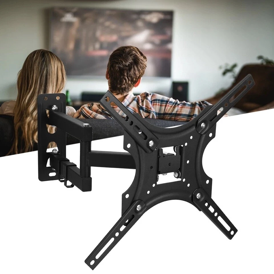 Specifications: Type: Full Motion TV Wall Mount Bracket Color: Black Material: Cold-rolled Steel Suitable TV Sizes: 32"-55" Load Capacity: 44kgs Adjustable: Tilt (-15 degrees, +5 degrees) | Swivel (-90 degrees, +90 degrees) Max VESA Mounting Pattern: 200 x 200 mm Use for: TV, Monitor, Projector, LCD, LED, OLED, Plasma Features: • This heavy duty TV stand has high standards and can fix the screen up to 44 inches, the largest. • Compatible with VESA • Mounting hole Pattern (200mm x 200mm) • Tilt 180°: the VESA board can be removed for easy Installation of one person. • Reliable Quality: This heavy-duty bracket, made from premium cold-rolled steel, means your TV will stay sturdy and stable. It's designed for flatscreens TV's and can carry a load of up to 44kgs. You can be confident that your TV won't run into any "whoopsies" while viewing. Just install the bracket on the wall, mount your TV, and choose a corner to enjoy it. It's that easy! • Full Motion for Optimal Viewing: Full motion Mount your TV on this bracket to watch your favorite movie at the most comfortable angle. With a 180° left to right range of motion and upward and downward tilt of +5~-15°, this TV mount puts your screen at the perfect position for you or anyone to enjoy. • Save Space: This TV wall bracket has an adjustable wall space from 400mm. Planning to have company over for the evening? Simply retract the moveable arms to place into a fixed position to save space for your guests. • Easy Installation: Step-by-step instructions and all the necessary hardware is provided, single stud installation simplifies the placement of the TV/monitor on the wall. Removable TV plate designed for single-person installation which helps you to install this TV wall mount without any hassle Will this mount fit your TV? 1. Check the VESA of your TV whether it is under 200mm x 200mm; 2. Check the weight of your TV whether it is lighter than 44kgs; 3. Check whether your TV is within 32" to 55"; Available VESA range: • 200mm x 200mm (8"x8") Package Included: • 1 x Full Motion TV Mount Bracket • 1 x Assembly Manual • 1 x Complete Set of Screws and Other Fittings Required for Assembly