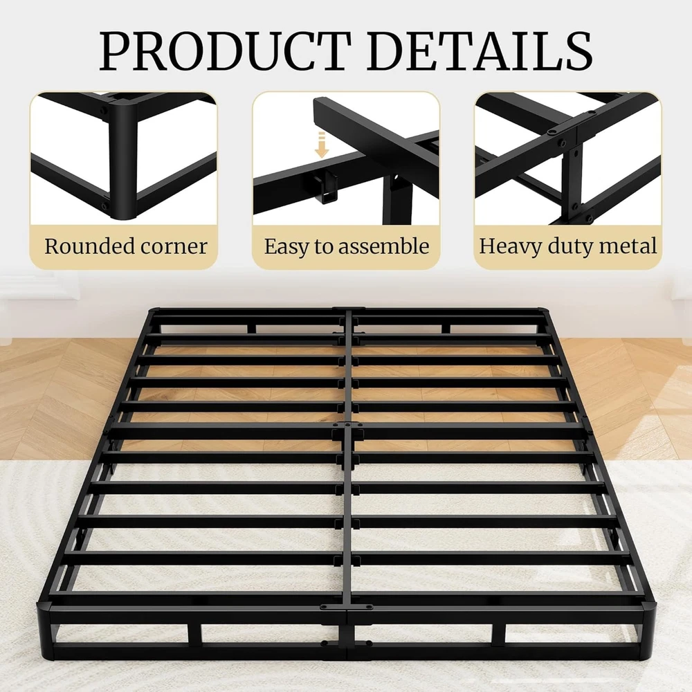 **About this item** * **Sleek 5-Inch Profile:** This 5-inch full-size box spring is ideal for those who prefer a lower bed height or are pairing it with a thicker mattress. Compatible with innerspring, memory foam, and latex mattresses. Rounded corners help reduce the risk of accidental bumps or injuries. * **Noiseless and Comfortable:** Each pole and support frame is fully welded at both ends to prevent movement, distortion, and squeaking. The solid, noise-free structure ensures peaceful and uninterrupted sleep, even with frequent movement. * **Heavy-Duty Metal Construction:** Built with reinforced steel and durable metal slats, this full box spring supports up to 3,000 lbs. It delivers exceptional strength, stability, and long-lasting mattress support for single or shared use. * **Easy to Clean:** Features a high-quality fiber cover that is breathable, wrinkle-resistant, and shrink-resistant. Elastic bands allow for easy removal, making cleaning simple and helping maintain a fresh, hygienic sleeping environment. * **Easy to Assemble:** Designed for quick and hassle-free setup. All required tools are included, and the integrated construction allows assembly in minutes.