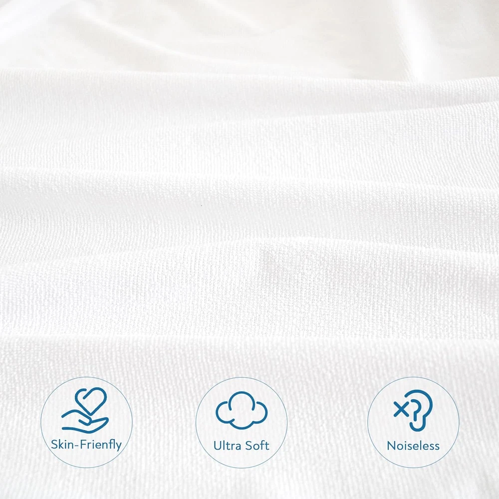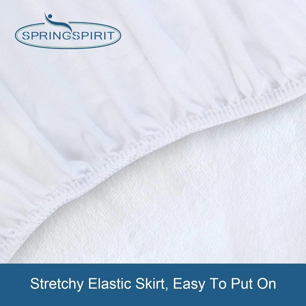 Breathable Terry Surface Ultra Soft & Breathable Fabric: Ful size mattress protector top side is made from terry, which is a skin friendly and ultra soft fabric. With the waterproof membrane laminated back, it can protect your mattress from spills, liquids and stains, especially suitable for those with kids, pets, or elderly. 100% Waterproof & Noiseless: This full mattress protector is lined with premium waterproof material (TPU) to prevent leakage. And we perfectly control the thick of membrane, it remains quiet however you turn. Strong Elastic & 360° Snug Fit: Our full size mattress protector perfectly fits mattress of most sizes. It's easy to install. Our waterproof mattress protector are available in a range of sizes: Twin (39" x 75"), Twin XL (39" x 80"),Full (54" x 75"), Full XL (54" x 80") Queen (60" x 80"), King (76" x 80"), California King (72" x 84"). You can always find the one that you need. Easy Care & Machine Washable: Machine washable and tumble dry a low setting. We would recommend purchasing 2 full size mattress protectors, so you will have a replacement when accidents occur. Springspirit's Life-time Guarantee: Springspirit's quality you can trust. If our full size mattress protector does not meet your needs for any reason, replacement or money back, no questions asked! Product Description The video showcases the product in use. The video guides you through product setup. The video compares multiple products. The video shows the product being unpacked. 1 Always Dry & Clean 2 Snuggly Fit More Related Products for Your Choice! Add to Cart Add to Cart Add to Cart Add to Cart Add to Cart Add to Cart Add to Cart Customer Reviews 4.5 out of 5 stars 8,772 4.5 out of 5 stars 1,770 4.2 out of 5 stars 501 4.5 out of 5 stars 8,772 4.5 out of 5 stars 292 4.4 out of 5 stars 60 4.6 out of 5 stars 784 Price $12.89 $ 12 . 89 $9.99 $ 9 . 99 $17.99 $ 17 . 99 $15.99 $ 15 . 99 $18.99 $ 18 . 99 $19.99 $ 19 . 99 $22.99 $ 22 . 99 Out Fabric Terry Jersey Microfiber Jersey Microfiber Terry Terry 3D Air Fiber Polyester Color White White White/Grey/Navy/Black White White White Black/Navy Size Twin/Full/Queen/King Standard/Queen/King Twin/Queen Crib/Twin Standard/Queen/King Twin/Full/Queen Twin/Full/Queen/King Waterproof ✔ ✔ ✔ ✔ ✔ ✔ Machine Washable ✔ ✔ ✔ ✔ ✔ ✔ ✔