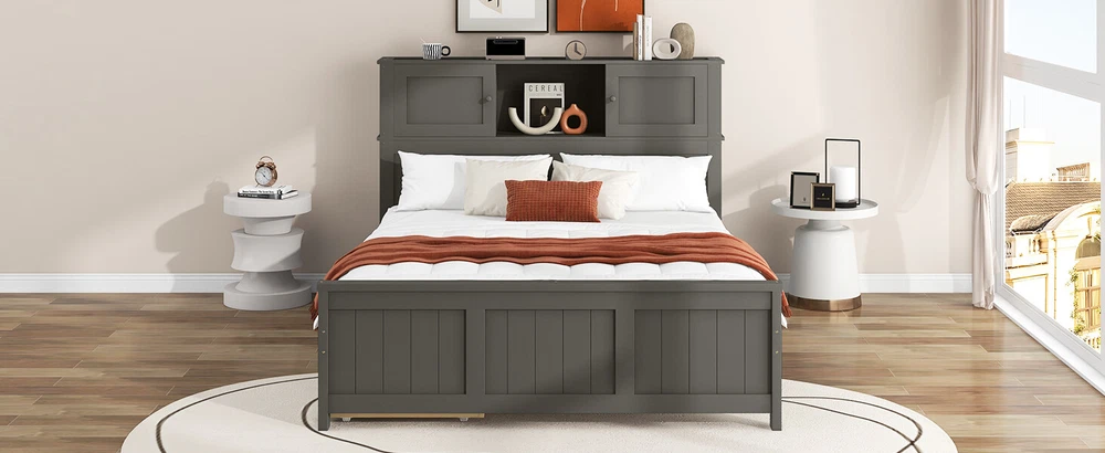 Brand Unbranded Item Length 63 Item Width 20.75 Item Height 6 Color Gray Frame Material Solid Wood MDF Type BED FRAME Compatible Mattress Size As described Diamond-ring-1 Simple life Full Size Platform Bed with Storage Headboard and Sliding Door,2 Drawers, Gray [Classic Design] This bed frame features a fancy bookshelf headboard with a sliding door system and a tall footboard with classical farmhouse elements. Its color finish is wonderfully easy on the eyes, and it has natural variations in grain, color, and texture, giving every piece a unique look, and creating a rustic, charming, cozy bedroom retreat. Matches perfectly with other furniture in the bedroom furniture series. [Storage Headboard] The chic storage headboard features a great fusion of beauty and the utility of storage space.Sliding barn doors add sophistication to the space and allow you to hide clutter behind the doors, keeping the room neat and organized. [Solid Construction] A sturdy wood silhouette with MDF board gives this beautiful storage bed frame such a substantial presence.Enjoy peaceful nights with 10 solid slats and 3 support legs for mattress support. [Abundant Storagel] 2 storage drawers on wheels for clothing or blankets. A wealth of storage space for impeccable organization. [No Box Spring Required] Mattress is not included,Each order comes with a clear and detailed assembly instruction guide and all necessary tools are provided to get your bed assembled in no time.Some assembly is required, although we have provided clear instructions and tools. Full Size Platform Bed with Storage Headboard and Sliding Door,2 Drawers, Gray Anchor your bedroom with a space-saving innovation with this storage platform bed frame.This bed frame with higher headboard and footboard. Includes 3 cubies with sliding door built into the headboard, making it perfect for storing your bedside essentials & displaying your favorite photo frames for a personal touch.The bookcase headboard makes it a breeze to store and showcase your books and other essential items and have them at your fingertips when you want them most. Constructed in a solid wood and MDF bed frame structure and slats and support legs, no squeaking noise and buffering, and no box spring is needed. The attractive finish of this platform bed lends it a sleek, slightly dark look that is both intriguing and soothing, and serene. And 2 storage drawers on wheels underbed for clothing or blankets. A wealth of storage space for impeccable organization. Description Material Pine Wood+MDF Size Full Color Gray Numbers of Package 2 Spring Box No need Assembly Required Yes Origin Vietnam Overall Product Dimension 89''L x 58.2''W x 42''H Bed Dimension 75.2'' x 54.3'' Total Height 42'' Recommend Mattress Thickness of Bed 6-8'' Platform Bed Weight Capacity 450lb Overall Product Weight 128lb Item Specifics Brand Unbranded Item Length 63 Item Width 20.75 Item Height 6 Color Gray Frame Material Solid Wood MDF Type BED FRAME Compatible Mattress Size As described Payment Returns Diamond-ring-1 Simple life DESCRIPTION PAYMENT SHIPPING RETURN POLICY CONTACT US Shop Category Store Home Other Hot Item Delivery New List Item Help & Info Payment Policy Shipping Policy Return Policy FAQ About Us Full Size Platform Bed with Storage Headboard and Sliding Door,2 Drawers, Gray [Classic Design] This bed frame features a fancy bookshelf headboard with a sliding door system and a tall footboard with classical farmhouse elements. Its color finish is wonderfully easy on the eyes, and it has natural variations in grain, color, and texture, giving every piece a unique look, and creating a rustic, charming, cozy bedroom retreat. Matches perfectly with other furniture in the bedroom furniture series. [Storage Headboard] The chic storage headboard features a great fusion of beauty and the utility of storage space.Sliding barn doors add sophistication to the space and allow you to hide clutter behind the doors, keeping the room neat and organized. [Solid Construction] A sturdy wood silhouette with MDF board gives this beautiful storage bed frame such a substantial presence.Enjoy peaceful nights with 10 solid slats and 3 support legs for mattress support. [Abundant Storagel] 2 storage drawers on wheels for clothing or blankets. A wealth of storage space for impeccable organization. [No Box Spring Required] Mattress is not included,Each order comes with a clear and detailed assembly instruction guide and all necessary tools are provided to get your bed assembled in no time.Some assembly is required, although we have provided clear instructions and tools. Full Size Platform Bed with Storage Headboard and Sliding Door,2 Drawers, Gray Anchor your bedroom with a space-saving innovation with this storage platform bed frame.This bed frame with higher headboard and footboard. Includes 3 cubies with sliding door built into the headboard, making it perfect for storing your bedside essentials & displaying your favorite photo frames for a personal touch.The bookcase headboard makes it a breeze to store and showcase your books and other essential items and have them at your fingertips when you want them most. Constructed in a solid wood and MDF bed frame structure and slats and support legs, no squeaking noise and buffering, and no box spring is needed. The attractive finish of this platform bed lends it a sleek, slightly dark look that is both intriguing and soothing, and serene. And 2 storage drawers on wheels underbed for clothing or blankets. A wealth of storage space for impeccable organization. Description Material Pine Wood+MDF Size Full Color Gray Numbers of Package 2 Spring Box No need Assembly Required Yes Origin Vietnam Overall Product Dimension 89''L x 58.2''W x 42''H Bed Dimension 75.2'' x 54.3'' Total Height 42'' Recommend Mattress Thickness of Bed 6-8'' Platform Bed Weight Capacity 450lb Overall Product Weight 128lb Item Specifics Brand : Unbranded Item Length : 63 Item Width : 20.75 Item Height : 6 Color : Gray 