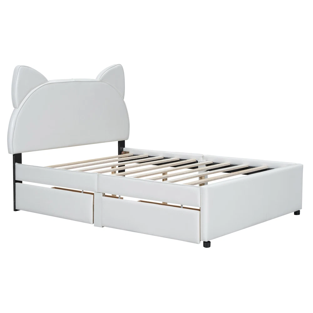 Brand Unbranded Item Length 62.6 Item Width 18.9 Item Height 7.48 Color White Frame Material Upholstered Type BED FRAME Compatible Mattress Size As described Diamond-ring-1 Simple life Full Size Upholstered Platform Bed with Cartoon Ears Shaped Headboard and 2 Drawers, White [Cute Headboard] The animal ears headboard makes the wood bed look very cute. It's a perfect choice for your little one's bedroom. [Storage Space] The 2 drawers underneath gives you extra space for storing daily necessities such as bed sheets, toys or off-season clothing. [Sturdy Frame] Constructed with a durable wood frame with high-quality hardware that provides a strong and sturdy bed. [No Box Spring Required] The wood slats support the mattresses not to slide and increase the service life. [Easy Assembly] All parts, tools and instructions are shipped straight to your door in one efficiently packed box for simple set-up. Full Size Upholstered Platform Bed with Cartoon Ears Shaped Headboard and 2 Drawers, White With a lively color upholstery and a playful animal ear silhouette, our bed is the perfect addition to your little one's bedroom. This upholstered platform bed showcases a low-profile silhouette and clean lines, which will fit any room style. The 2 drawers gives you extra space for storing daily necessities such as bed sheets to accessories or off-season clothing. Description Material Pine Wood+MDF+PU Size Full Color White Numbers of Package 2 Spring Box No need Assembly Required Yes Dimensions Overall Product Dimension 79.1''L x 55.9''W x 34.5''H Full Bed 76'' x 54.3'' Total Height 34.5'' Number of Bed Slats 10pcs Recommend Mattress Thickness of Bed 8-10'' Overall Product Weight 115lbs Bed Weight Capacity 600lbs Item Specifics Brand Unbranded Item Length 62.6 Item Width 18.9 Item Height 7.48 Color White Frame Material Upholstered Type BED FRAME Compatible Mattress Size As described Payment Returns Diamond-ring-1 Simple life DESCRIPTION PAYMENT SHIPPING RETURN POLICY CONTACT US Shop Category Store Home Other Hot Item Delivery New List Item Help & Info Payment Policy Shipping Policy Return Policy FAQ About Us Full Size Upholstered Platform Bed with Cartoon Ears Shaped Headboard and 2 Drawers, White [Cute Headboard] The animal ears headboard makes the wood bed look very cute. It's a perfect choice for your little one's bedroom. [Storage Space] The 2 drawers underneath gives you extra space for storing daily necessities such as bed sheets, toys or off-season clothing. [Sturdy Frame] Constructed with a durable wood frame with high-quality hardware that provides a strong and sturdy bed. [No Box Spring Required] The wood slats support the mattresses not to slide and increase the service life. [Easy Assembly] All parts, tools and instructions are shipped straight to your door in one efficiently packed box for simple set-up. Full Size Upholstered Platform Bed with Cartoon Ears Shaped Headboard and 2 Drawers, White With a lively color upholstery and a playful animal ear silhouette, our bed is the perfect addition to your little one's bedroom. This upholstered platform bed showcases a low-profile silhouette and clean lines, which will fit any room style. The 2 drawers gives you extra space for storing daily necessities such as bed sheets to accessories or off-season clothing. Description Material Pine Wood+MDF+PU Size Full Color White Numbers of Package 2 Spring Box No need Assembly Required Yes Dimensions Overall Product Dimension 79.1''L x 55.9''W x 34.5''H Full Bed 76'' x 54.3'' Total Height 34.5'' Number of Bed Slats 10pcs Recommend Mattress Thickness of Bed 8-10'' Overall Product Weight 115lbs Bed Weight Capacity 600lbs Item Specifics Brand : Unbranded Item Length : 62.6 Item Width : 18.9 Item Height : 7.48 Color : White Frame Material : Upholstered Type : BED FRAME Compatible Mattress Size : As described Payment Returns All rights reserved.