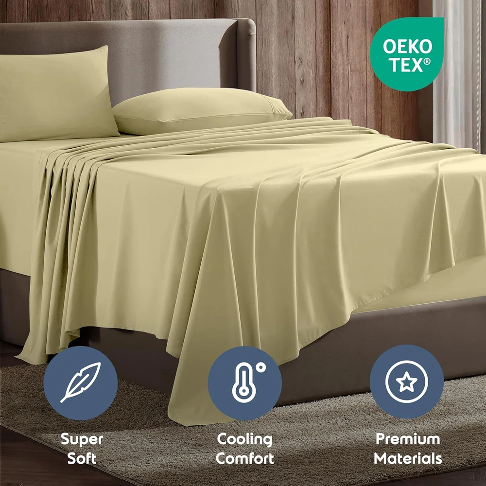 Store New Arrivals Add to Favorite View Feedback Contact Full XL Size Sheet Sets - 4 Piece Full XL Size Sheets, Deep Pocket, Hotel Luxury, Extra Soft, Breathable and Cooling, Vanilla Yellow Bed Sheets for Full XL Size Mattress Description Age Range Description Adult Item Dimensions 10 x 9 x 3 inches Pattern Solid Material Type Microfiber Theme Floral Unit Count 4 Piece Count Pillowcase Quantity 1 Material Microfiber Item Display Dimensions 80 x 54 x 14 inches Seasons All, Winter, Summer, Spring Additional Features Deep Pockets, Elastic All Around, Lightweight & Breathable, Ultra Soft, Wrinkle Free, Extra Soft Double Brushed Microfiber, Secure, Snug Fit Included Components 1 Fitted Sheet 54"x80", 1 Flat Sheet 81"x104", 2 Pillowcases 20"x30" Closure Type Envelope Occasion Everyday/Casual Fitted Sheet Pocket Depth 18 Inches Color 41 - Vanilla Yellow Thread Count 1800 Product Care Instructions Machine Wash, Tumble dry on low Manufacturer Bedding Style Name Modern Size Full XL Microfiber Soft Sheets for Full XL Size Bed: Woven from high quality microfiber and double brushed for ultimate softness, our bedding sheets & pillowcases are lightweight, breathable, and cool to the touch - an all-season solution for serene sleep. 4-Piece Full XL Sheets Set: Full xl bed sheets set includes one fitted sheet full xl size 54” x 80”; one full xl flat sheet 81” x 104”; and two standard / queen pillowcases 20” x 30”. Deep Pocket Full XL Sheets: Our fitted bed sheets full xl size easily fit mattresses 8”-18” deep. Reinforced, stretchable elastic all around the entire full xl fitted sheet ensures a snug, secure fit so your deep pocket sheets won’t move around. Easy Care and Cleaning: Wrinkle free and fade resistant, our microfiber sheets are durable and made to last. Our bed sheet & pillowcase sets are machine washable. Choose from our wide selection of vibrant colors to upgrade your xl full sheets set. Rest Easy with Nestl: We proudly support sustainable manufacturing practices with OEKO-Tex Standard 100 certification. Shop full xl size sheets with confidence because no matter what, we’ve got you covered. Product Description The video showcases the product in use. The video guides you through product setup. The video compares multiple products. The video shows the product being unpacked. 1 40+ COLORS 2 Grey 3 White 4 Green 5 Beige ABOUT US We offer the best prices around on high quality products. Our E-store includes media such as books, movies, music and games while offering electronics, toys, sporting apparel, clothing, tools, general home, garden items and more. SHIPPING We are always working hard to ensure your package arrives as soon as possible. Please understand that some factors like weather, high postal traffic, and the performance of shipping companies are outside of our control. We offer free shipping to the lower 48 states and ship within 2 business days of payment, usually sooner. We do not accept P.O. Boxes. Please provide a physical address. For shipping outside of the continental USA, we only use eBay's Global Shipping Program.The item is shipped to KY and then sent to the rest of the world. International customers are responsible for all duties and taxes. Continue to check out in order to calculate costs for shipping the item to your country. Messages regarding eBay's Global Shipping Program MUST be directed at eBay EXCLUSIVELY. RETURNS We offer a 30-Day Return Policy on items which you are not completely satisfied with. You have the option for a full-refund or an exchange of the item. No returns are available on items shipped outside of the USA. PAYMENT We accept PayPal. CONTACT US This page content is yet to come Please ad us to your favorite seller and visit again later Thank You CUSTOMER SATISFACTION We try our very best to make sure every customer is completely satisfied. If there's a problem, message us! We're happy to help. WE ACCEPT Copyright © 2021 AutoDS. | All Rights Reserved