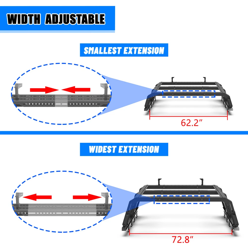 800lbs Aluminum Pick-Up Truck Rack Bed Ladder Rack Fixed Height with C-clamps