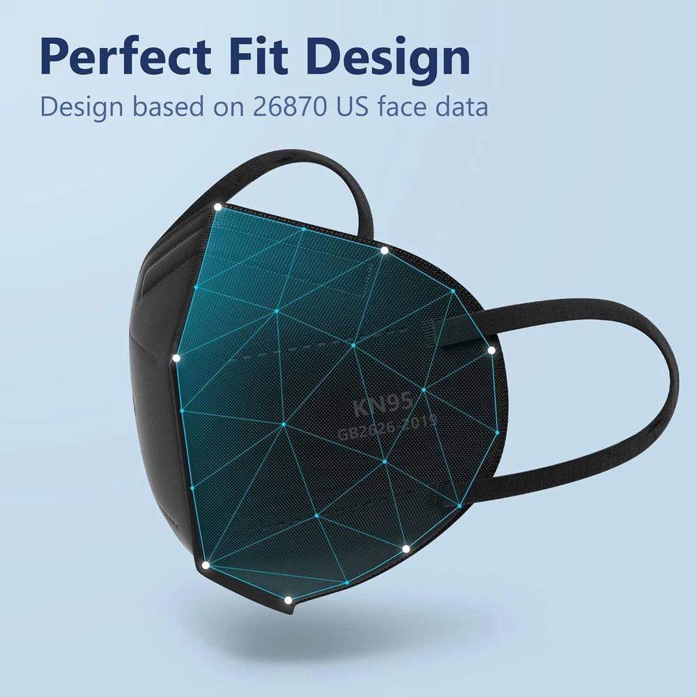 Funight KN95 Face Masks 50 Pack 1 Count (Pack of 50), Adult-50 Pack-black