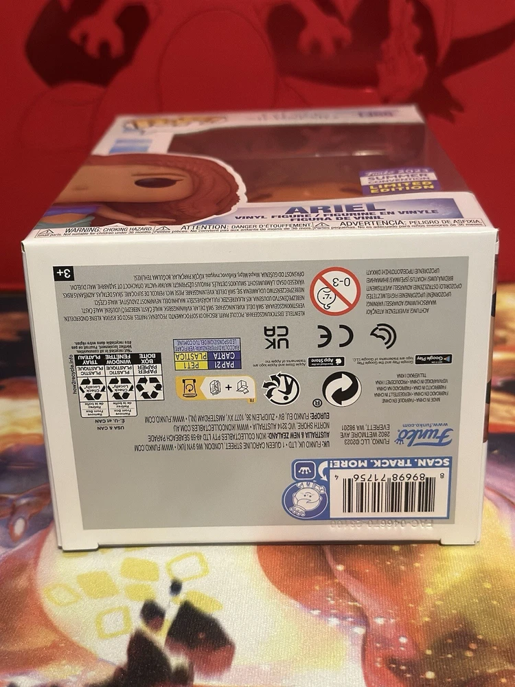 This Funko Pop Disney vinyl figure is a must-have for any fan of The Little Mermaid. Featuring Ariel in all her mermaid glory, this limited edition figure is a collaboration with the popular franchise and is an exclusive release from San Diego Comic Con. The figure comes in its original packaging, which is unopened, making it a perfect addition to any collector's display. Comes with a pop protector