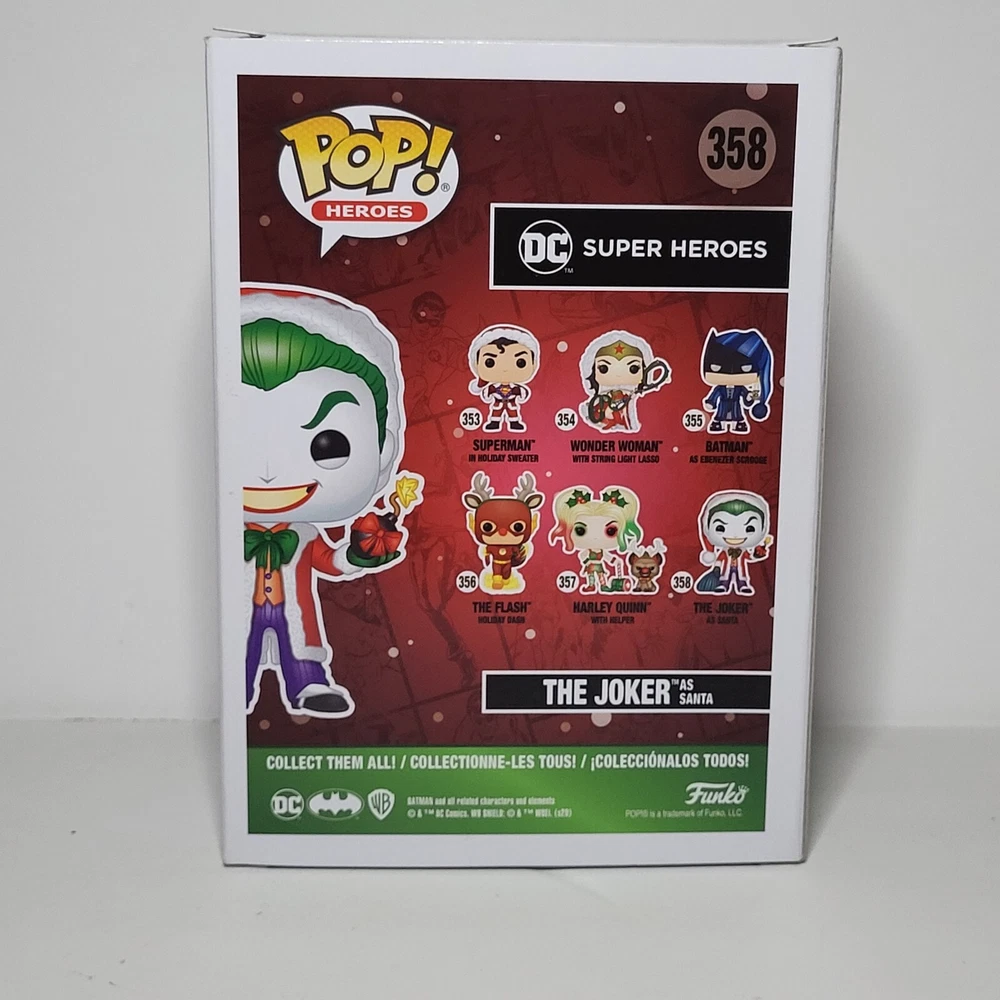 Delve into the world of DC Universe with the Funko Pop! Heroes: DC Super Heroes - The Joker (as Santa) #358 vinyl figure. This collectible captures the iconic villain in his festive best, a unique twist on the classic Santa Claus attire. Crafted with the attention to detail Funko is known for, it's a must-have for fans and collectors alike. Part of Funko's beloved Pop! series, this figure joins the ranks of other superhero and villain collectibles. The Super Heroes model, part of the Heroes collection, stands out with its larger size, ensuring it's a prominent display piece. Whether you're a dedicated collector or simply appreciate the artistry, the Joker as Santa is a holiday classic that transcends the ordinary.