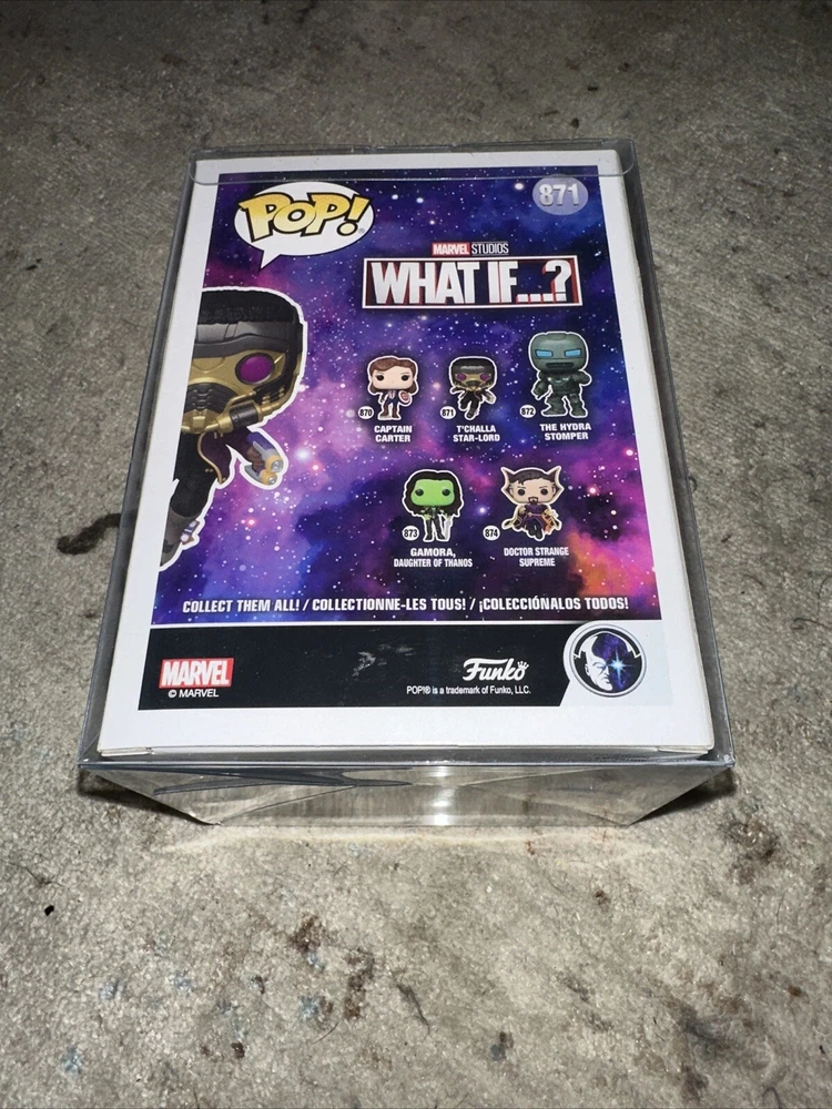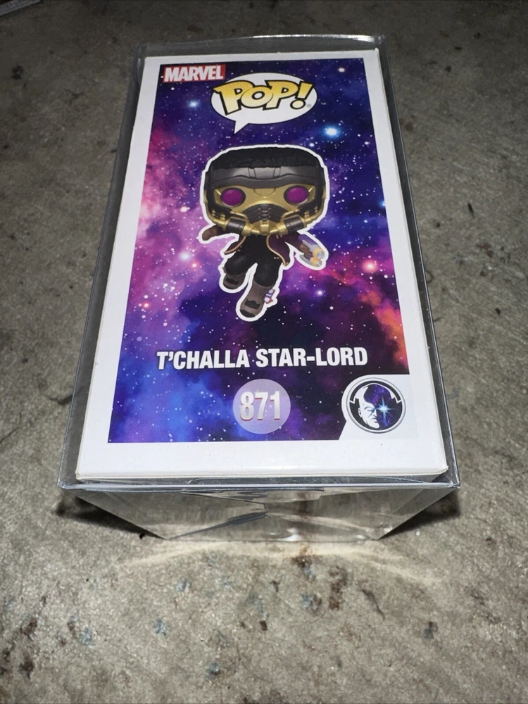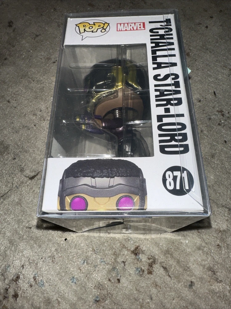 Introducing the Funko Pop Marvel What If? vinyl figure featuring T'Challa as Star-Lord. This exclusive collectible is a must-have for any Marvel fan. Made of high-quality vinyl material, this Pop! figure stands tall at approximately 3.75 inches and comes in its original packaging. With its unique design and attention to detail, this Funko Pop is a great addition to any Marvel collection. The figure is part of the Pop! product line and is an exclusive release from Marvel Collector Corps. Don't miss out on the opportunity to own this rare and highly sought-after item.
