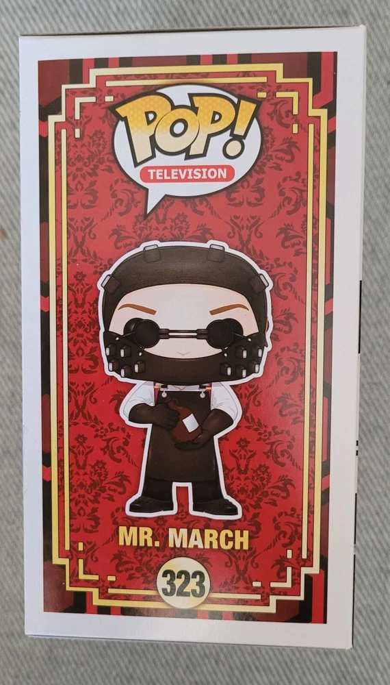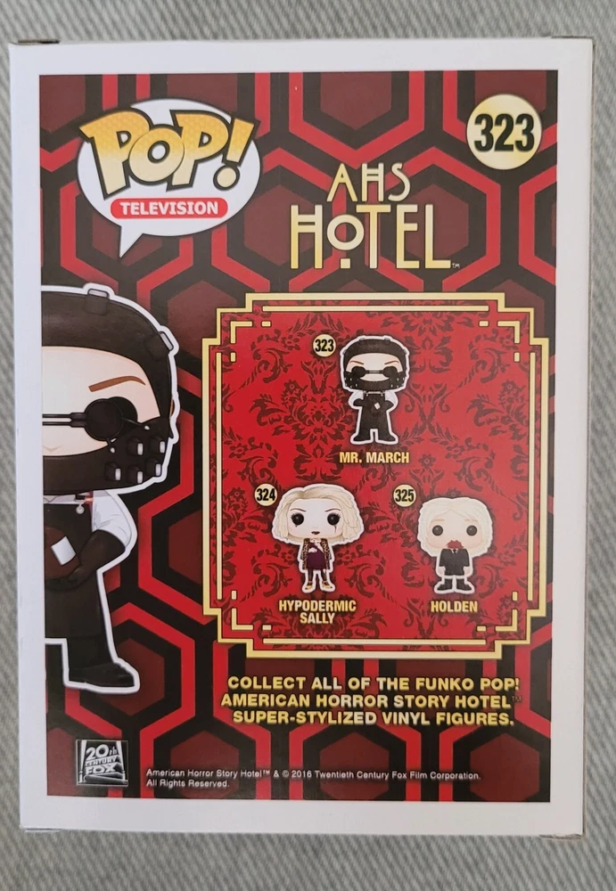 The Funko Pop! Television Vinyl: American Horror Story Hotel - Mr. March #323 is a must-have collectable figure for fans of the American Horror Story franchise. This Pop! figure features the character Mr. March from the Hotel season, captured in intricate detail with a vinyl material. Perfect for adding a touch of horror and mystery to any collection, this figure is a great addition for collectors of television memorabilia.