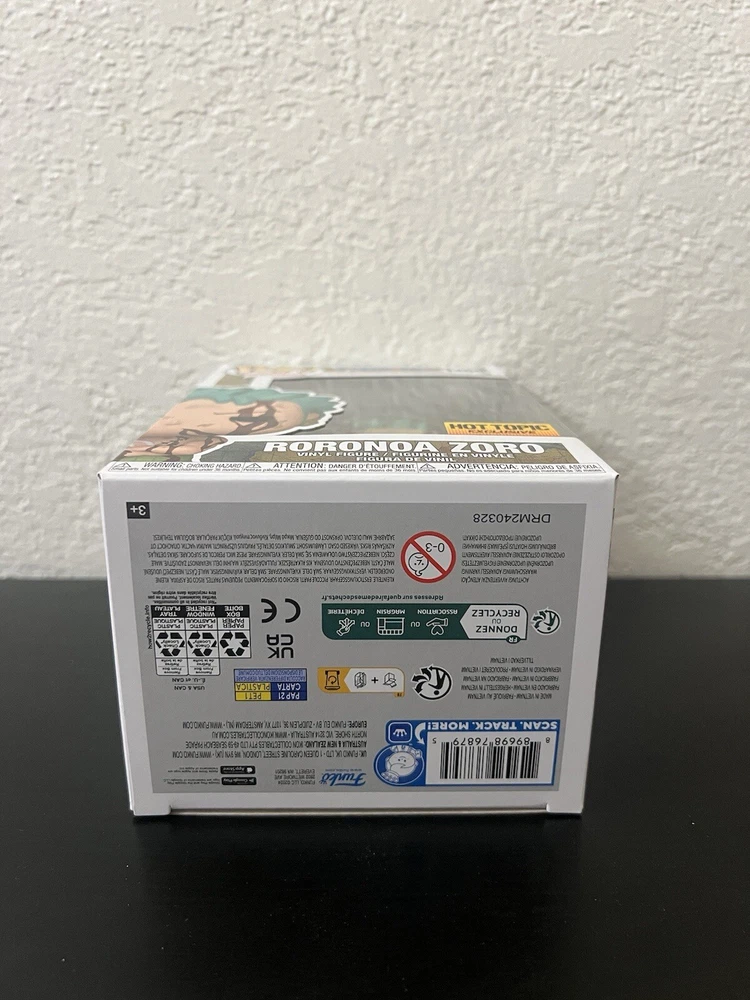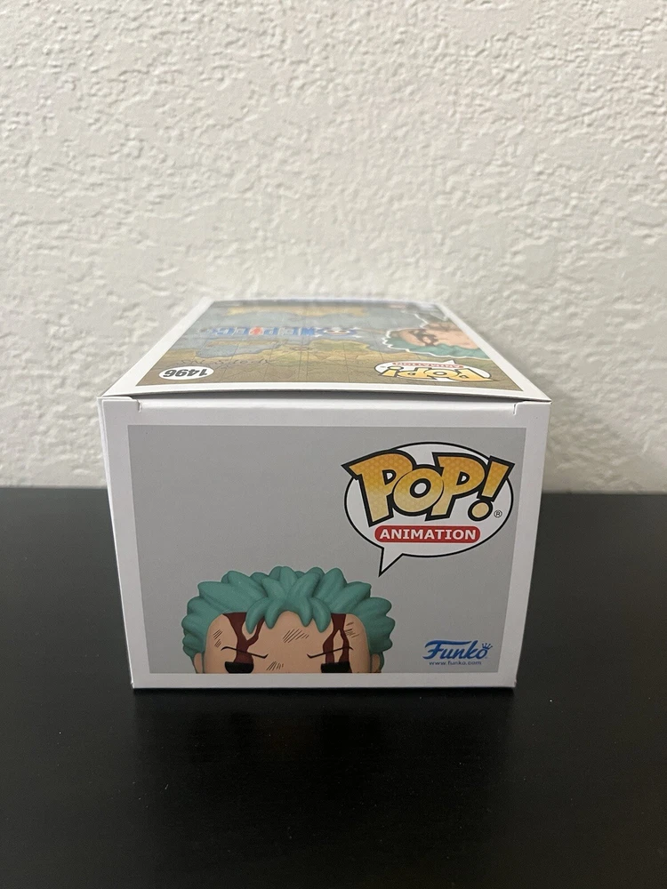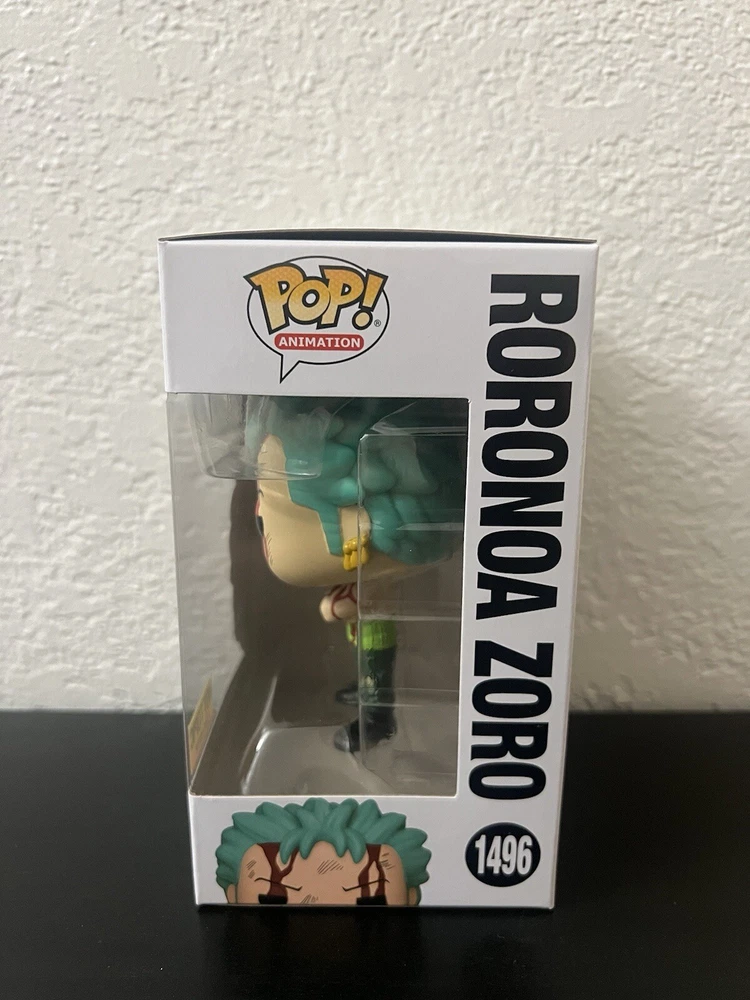 This Funko Pop! Vinyl figure features Roronoa Zoro from the popular anime and manga series One Piece. The figure stands at approximately 3.75 inches tall and is made of vinyl material. It comes in its original packaging, unopened and ready for display. This exclusive Hot Topic item is part of the One Piece 2023 Q4 series and has a box number of 1496. Perfect for collectors and fans of the franchise, this Pop! Vinyl figure is a must-have addition to any collection.