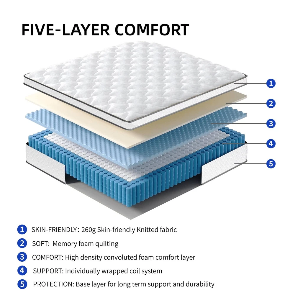 Home Payment Shipping Return Policy About Us Contact Us Feedback Title Other Standing Desk Desk Riser & Desk Converters Desk Bike Ergonomic Office Chair Fitness FunniHommi Adjustable Bed Frame Base Queen Size with Upgrated Quite Durable Moto Transform your sleep experience with FunniHomi adjustable bed frame and 12-inch hybrid mattress set. The bed base offers simultaneous head and foot incline, with whisper-quiet motor and a sturdy steel frame supporting up to 600 lbs. Designed in separate sections, it’s easy to move and assemble, with thoughtful details like an oxford fabric bedspread and mattress holder. Paired with a medium-firm hybrid mattress featuring memory foam, cooling gel, and pocketed springs, this set delivers full-body support, motion isolation, and temperature regulation for deeper, undisturbed rest. Certified safe and hypoallergenic, the mattress ships conveniently in a box, making this the perfect solution for lasting comfort and healthier sleep. Product Highlights: Simultaneous Operation: The head and foot of the adjustable bed frame can only be operated simultaneously. The head can be raised up to 60 degrees, while the legs can be raised up to 20 degrees. You can find your optimal angle for relaxation and stress relief after a hard day's work. Durable & Quiet Design: Equipped with a whisper-quiet motor tested 10,000 times at 600 lbs, and a six-legged steel frame for lasting stability and a 600 lbs weight capacity. Oxford Fabric Bedspread: The adjustable bed frame comes with an oxford fabric bedspread, which can provide you with a more comfortable user experience. Mattress Holder: The mattress retainer bar helps secure the mattress and prevent it from moving. Enhanced Sleep Experience : The 10-inch medium-firm hybrid mattress combines memory foam, cooling gel, and pocketed springs to align the spine, relieve back pain, and support all sleep positions. Cool & Undisturbed Rest: Gel memory foam regulates temperature and airflow, while motion-isolating pocketed springs absorb movement and noise for a peaceful night’s sleep. Certified Safe Materials: CertiPUR-US and OEKO-TEX certified, hypoallergenic, and safe for sensitive skin, elderly, and children. Mattress ships conveniently in a box for quick setup. Specifications: Bed Frame: Size: Queen Product Dimensions: 78.6"L x 58.6"W x 11.5"H Special Feature: Adjustable Color: Black Finish Type: Painted Material: Alloy Steel Maximum Capacity: 600LBS Mattress: Main Color: White Main Material: Foam+Spring Thickness:10''/12''/13'' Note: 48 Hours for Full Expansion