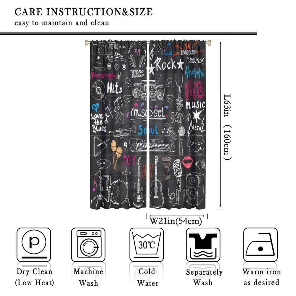 These curtains are a fun and vibrant addition to any room! The abstract music notes pop with color, and the polyester fabric feels durable yet soft. They’re super easy to maintain—just toss them in cold water and hang dry. Perfect for brightening up a bedroom, living room, or even an office. Just double-check the measurements since the print size may vary. Love how they liven up my space!