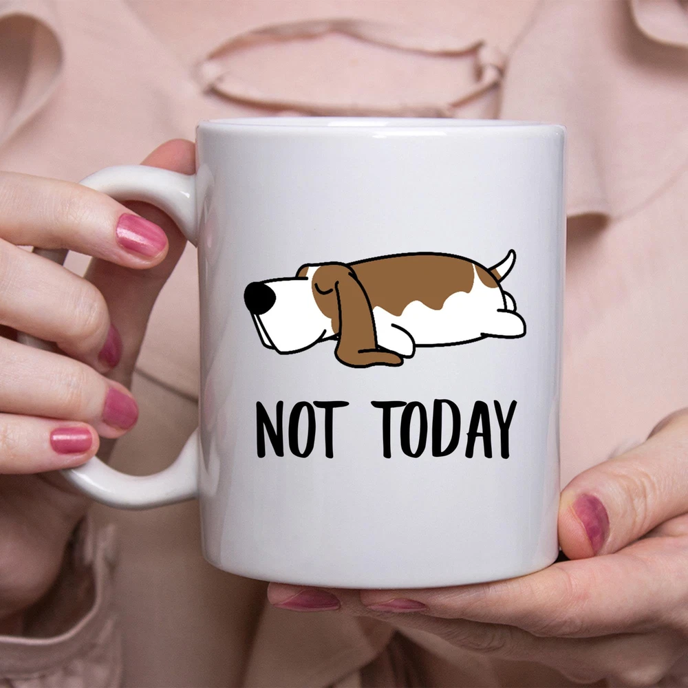 Funny Basset Hound Lazy Sleeping Not Today Dog Mug Lazy Gift For Women Dogs Mom Product Details.. This high quality 11oz. ceramic white mug has a premium hard coat that provides crisp and vibrant color reproduction sure to last for years. Perfect for all hot & cold beverages. The highest quality printing possible is used. It will never fade no matter how many times you wash it. Material: 100% Ceramic. Print both sides. Dishwasher and Microwave Safe. High Gloss + Premium White Finish. Printed in the U.S.A. Personalized & Custom. We support personalized and custom mug to add custom, when placing an order, you can add notes to the "order note" in shipping address section. Also you can contact us directly via message. Shipping Info. Ready to ship in 1 to 2 business days, All products are made-to-order and proudly printed in the United States. Shipped by USPS and DHL, You will receive your order in 5-7 days. Replace & Refund. All products are defective during shipping broken, chipped will be replaced free of charge. You are not satisfied with the product, we will refund 100% money to you. If any other issues arise, please do not hesitate to message, we would be more than happy to assist you.