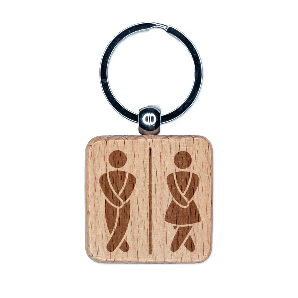 Funny Bathroom Unisex Men Women Engraved Wood Square Keychain Tag Charm