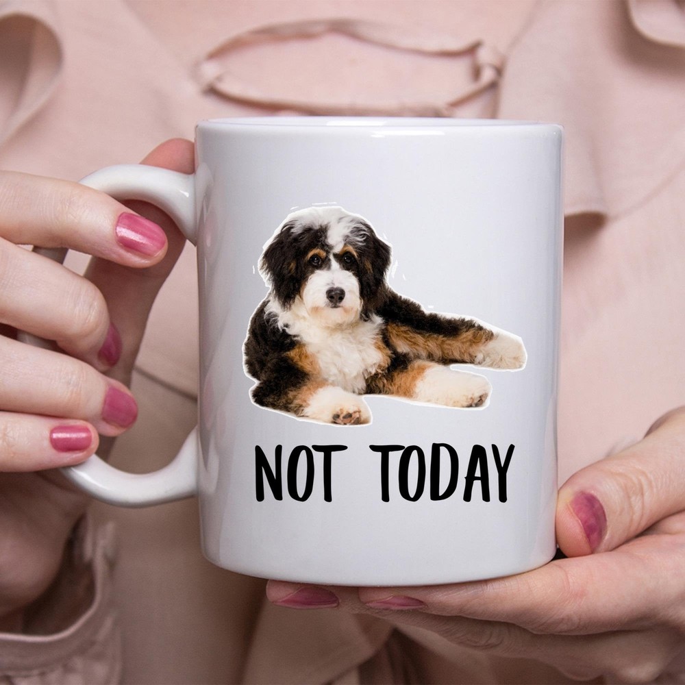 Funny Bernedoodle Lying Not Today Dog Mug Lazy Gift For Women Dogs Mom Coffee Product Details.. This high quality 11oz. ceramic white mug has a premium hard coat that provides crisp and vibrant color reproduction sure to last for years. Perfect for all hot & cold beverages. The highest quality printing possible is used. It will never fade no matter how many times you wash it. Material: 100% Ceramic. Print both sides. Dishwasher and Microwave Safe. High Gloss + Premium White Finish. Printed in the U.S.A. Personalized & Custom. We support personalized and custom mug to add custom, when placing an order, you can add notes to the "order note" in shipping address section. Also you can contact us directly via message. Shipping Info. Ready to ship in 1 to 2 business days, All products are made-to-order and proudly printed in the United States. Shipped by USPS and DHL, You will receive your order in 5-7 days. Replace & Refund. All products are defective during shipping broken, chipped will be replaced free of charge. You are not satisfied with the product, we will refund 100% money to you. If any other issues arise, please do not hesitate to message, we would be more than happy to assist you.