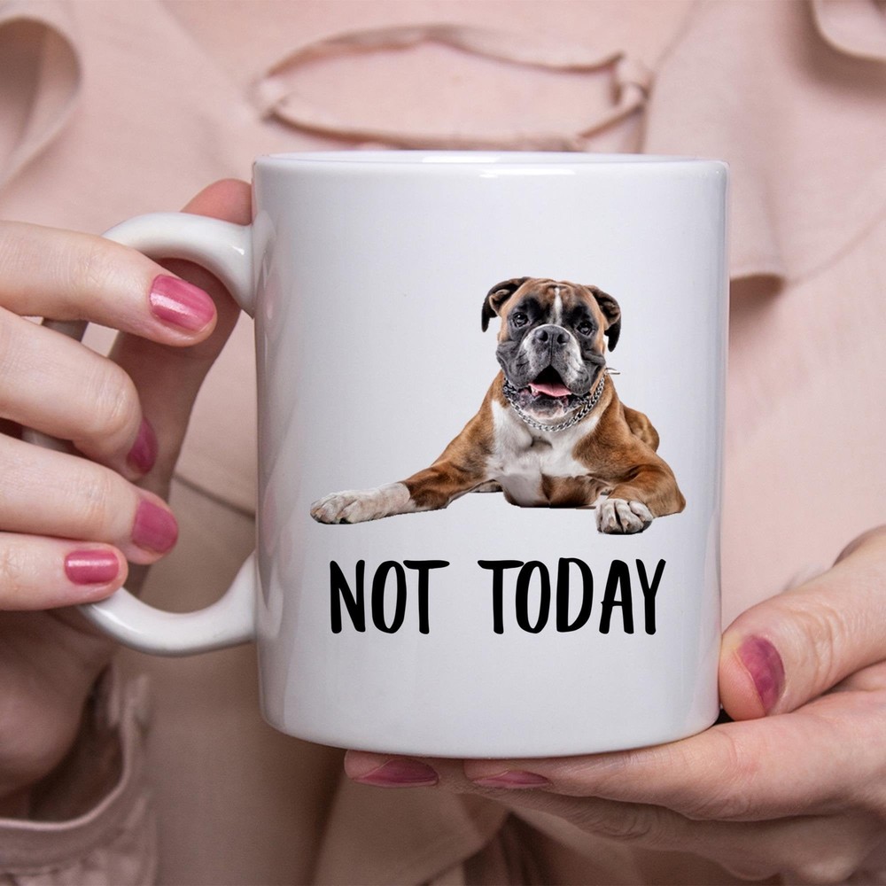 Funny Boxer Chestnut Not Today Dog Mug Lazy Gift For Women Dogs Mom Coffee Mug Product Details.. This high quality 11oz. ceramic white mug has a premium hard coat that provides crisp and vibrant color reproduction sure to last for years. Perfect for all hot & cold beverages. The highest quality printing possible is used. It will never fade no matter how many times you wash it. Material: 100% Ceramic. Print both sides. Dishwasher and Microwave Safe. High Gloss + Premium White Finish. Printed in the U.S.A. Personalized & Custom. We support personalized and custom mug to add custom, when placing an order, you can add notes to the "order note" in shipping address section. Also you can contact us directly via message. Shipping Info. Ready to ship in 1 to 2 business days, All products are made-to-order and proudly printed in the United States. Shipped by USPS and DHL, You will receive your order in 5-7 days. Replace & Refund. All products are defective during shipping broken, chipped will be replaced free of charge. You are not satisfied with the product, we will refund 100% money to you. If any other issues arise, please do not hesitate to message, we would be more than happy to assist you.