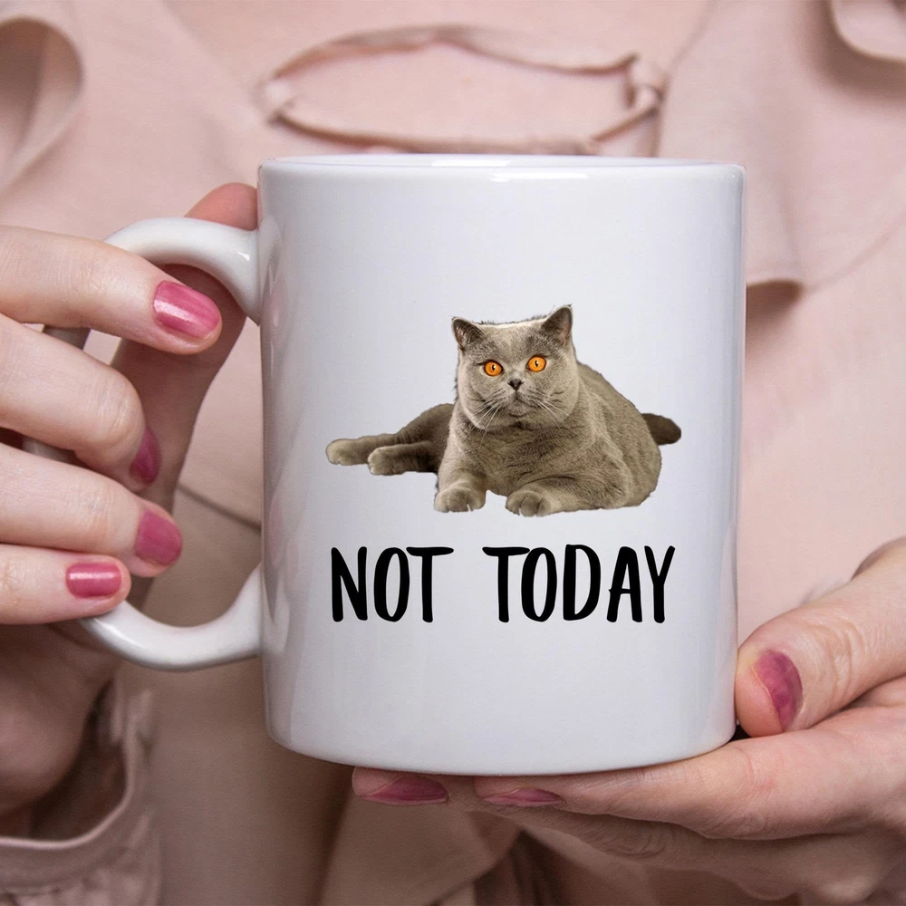 Funny British Shorthair Cat Grey Not Today Cat Mug Lazy Gift For Cats Lovers Product Details.. This high quality 11oz. ceramic white mug has a premium hard coat that provides crisp and vibrant color reproduction sure to last for years. Perfect for all hot & cold beverages. The highest quality printing possible is used. It will never fade no matter how many times you wash it. Material: 100% Ceramic. Print both sides. Dishwasher and Microwave Safe. High Gloss + Premium White Finish. Printed in the U.S.A. Personalized & Custom. We support personalized and custom mug to add custom, when placing an order, you can add notes to the "order note" in shipping address section. Also you can contact us directly via message. Shipping Info. Ready to ship in 1 to 2 business days, All products are made-to-order and proudly printed in the United States. Shipped by USPS and DHL, You will receive your order in 5-7 days. Replace & Refund. All products are defective during shipping broken, chipped will be replaced free of charge. You are not satisfied with the product, we will refund 100% money to you. If any other issues arise, please do not hesitate to message, we would be more than happy to assist you.