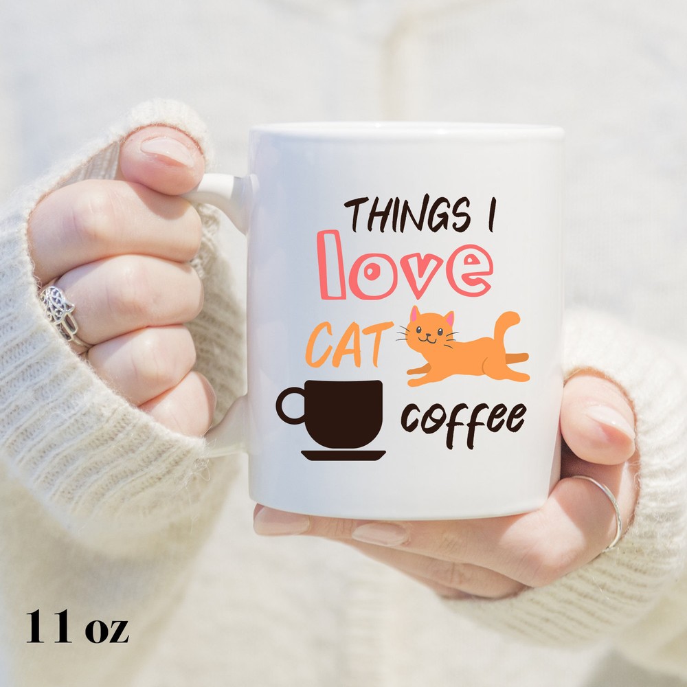 I Love Coffee And Cat Mug Cat Mug Cat Lover Gift Cat Coffee Mug Funny Cat Mug Product Details.. This high quality 11oz. ceramic white mug has a premium hard coat that provides crisp and vibrant color reproduction sure to last for years. Perfect for all hot & cold beverages. The highest quality printing possible is used. It will never fade no matter how many times you wash it. Material: 100% Ceramic. Print both sides. Dishwasher and Microwave Safe. High Gloss + Premium White Finish. Printed in the U.S.A. Personalized & Custom. We support personalized and custom mug to add custom, when placing an order, you can add notes to the "order note" in shipping address section. Also you can contact us directly via message. Shipping Info. Ready to ship in 1 to 2 business days, All products are made-to-order and proudly printed in the United States. Shipped by USPS and DHL, You will receive your order in 5-7 days. Replace & Refund. All products are defective during shipping broken, chipped will be replaced free of charge. You are not satisfied with the product, we will refund 100% money to you. If any other issues arise, please do not hesitate to message, we would be more than happy to assist you.