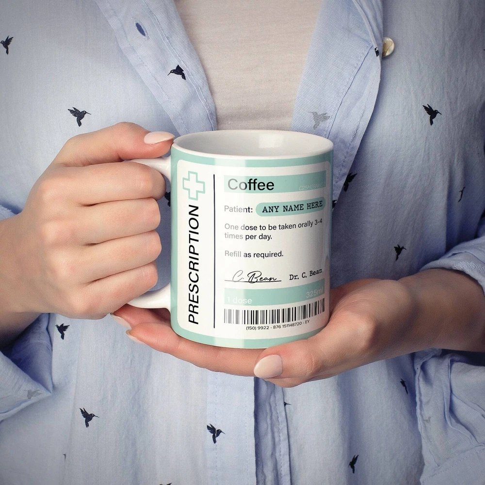 Funny Coffee Mug Prescription For Coffee Personalised Gift For Woman Gift Mug Product Details.. This high quality 11oz. ceramic white mug has a premium hard coat that provides crisp and vibrant color reproduction sure to last for years. Perfect for all hot & cold beverages. The highest quality printing possible is used. It will never fade no matter how many times you wash it. Material: 100% Ceramic. Print both sides. Dishwasher and Microwave Safe. High Gloss + Premium White Finish. Printed in the U.S.A. Personalized & Custom. We support personalized and custom mug to add custom, when placing an order, you can add notes to the "order note" in shipping address section. Also you can contact us directly via message. Shipping Info. Ready to ship in 1 to 2 business days, All products are made-to-order and proudly printed in the United States. Shipped by USPS and DHL, You will receive your order in 5-7 days. Replace & Refund. All products are defective during shipping broken, chipped will be replaced free of charge. You are not satisfied with the product, we will refund 100% money to you. If any other issues arise, please do not hesitate to message, we would be more than happy to assist you.