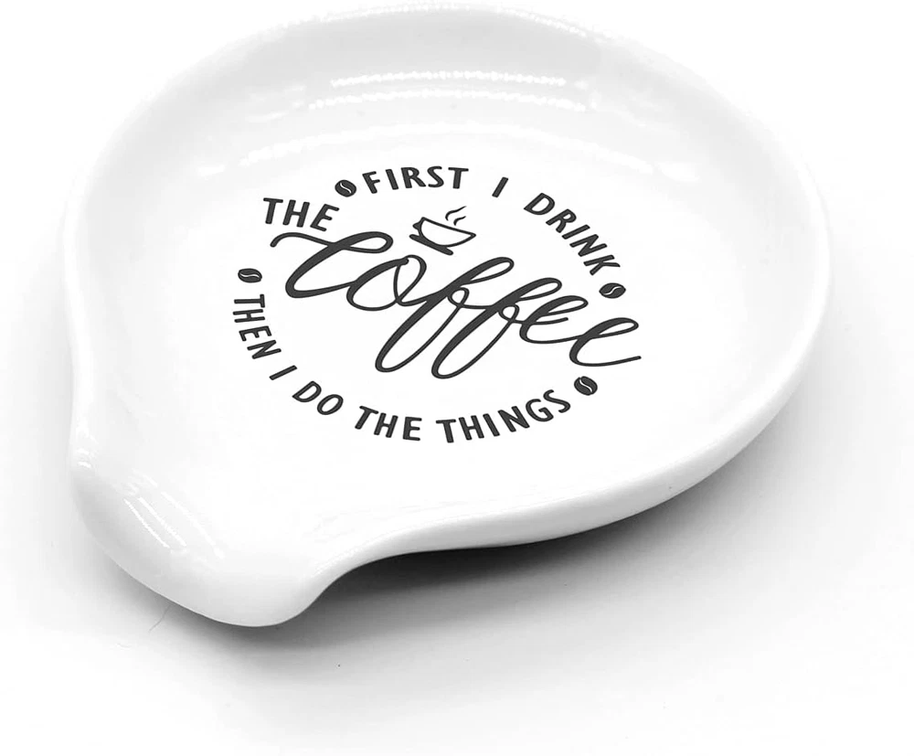 Store New Arrivals Add to Favorite View Feedback Contact Fast deliveries to the customer's home Quality customer service John Make the customers happy! Funny Coffee Quote First I Drink the Coffee Then I Do the Things Ceramic Coffee Spoon Holder-Coffee Spoon Rest -Coffee Station Decor Coffee Bar Accessories-Coffee Lovers Gift for Women and Men Description Unique design: this special design of this interesting coffee spoon holder is suitable for family and office use and coffee lovers' decorative ideas. Size:3.9'' x 3.3'' x 0.78'' Special gift: this coffee spoon holder is the best gift for coffee lovers. It will be the best gift for Birthday, Christmas, Thanksgiving, Mother's day, or Housewarming. High quality: spoon holder is made of high quality ceramics, durable, smooth surface, easy to clean. If you are not satisfied with the product, please feel free to contact us, we will reply in time. Product Description Clear Printing High quality printing materials and reasonable printing design can maintain clarity even after long-term use and storage. Thoughtful & Practical Design The small opening in the spoon wall and the raised edge design at the around are simple and ingenious. The small curved opening provides a unique aesthetic while preventing the utensils from rolling away. Ceramic Material Ceramic materials have excellent wear resistance and due to their high hardness.They can resist wear and scratches, making them highly practical. Color ZJ1190 Pattern Letter, Cartoon Product Dimensions 3.5"L x 3.5"W Material Ceramic Is Dishwasher Safe Yes Item Weight 3.84 ounces Finish Type Polished Material Type Free Plastic Free ABOUT US We offer the best prices around on high quality products. Our E-store includes media such as books, movies, music and games while offering electronics, toys, sporting apparel, clothing, tools, general home, garden items and more. SHIPPING We are always working hard to ensure your package arrives as soon as possible. Please understand that some factors like weather, high postal traffic, and the performance of shipping companies are outside of our control. We offer free shipping to the lower 48 states and ship within 2 business days of payment, usually sooner. We do not accept P.O. Boxes. Please provide a physical address. For shipping outside of the continental USA, we only use eBay's Global Shipping Program. The item is shipped to KY and then sent to the rest of the world. International customers are responsible for all duties and taxes. Continue to 'check out' to calculate costs for shipping the item to your country. Messages regarding eBay's Global Shipping Program MUST be directed at eBay EXCLUSIVELY. RETURNS We offer a 30-Day Return Policy on items in which you are not completely satisfied with. You have the option of a full-refund or an exchange of the item. No returns are available on items shipped outside of the USA PAYMENT We accept PayPal. CONTACT US This page content is yet to come Please ad us to your favorite seller and visit again later Thank You CUSTOMER SATISFACTION We try our very best to make sure every customer is completely satisfied. If there's a problem, message us! We're happy to help. WE ACCEPT