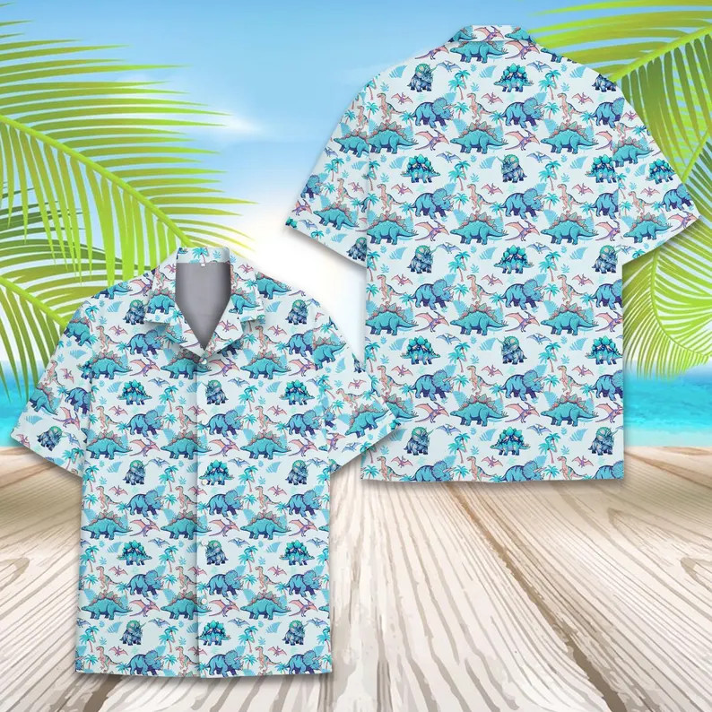 Dinosaur Hawaiian Shirt Men Women Aloha Beach Summer Vacation Gift