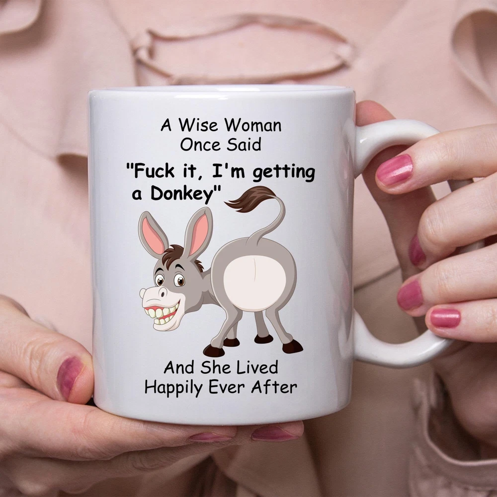 Funny Donkey Gift For Women White Coffee Mug Product Details.. This high quality 11oz. ceramic white mug has a premium hard coat that provides crisp and vibrant color reproduction sure to last for years. Perfect for all hot & cold beverages. The highest quality printing possible is used. It will never fade no matter how many times you wash it. Material: 100% Ceramic. Print both sides. Dishwasher and Microwave Safe. High Gloss + Premium White Finish. Printed in the U.S.A. Personalized & Custom. We support personalized and custom mug to add custom, when placing an order, you can add notes to the "order note" in shipping address section. Also you can contact us directly via message. Shipping Info. Ready to ship in 1 to 2 business days, All products are made-to-order and proudly printed in the United States. Shipped by USPS and DHL, You will receive your order in 5-7 days. Replace & Refund. All products are defective during shipping broken, chipped will be replaced free of charge. You are not satisfied with the product, we will refund 100% money to you. If any other issues arise, please do not hesitate to message, we would be more than happy to assist you.
